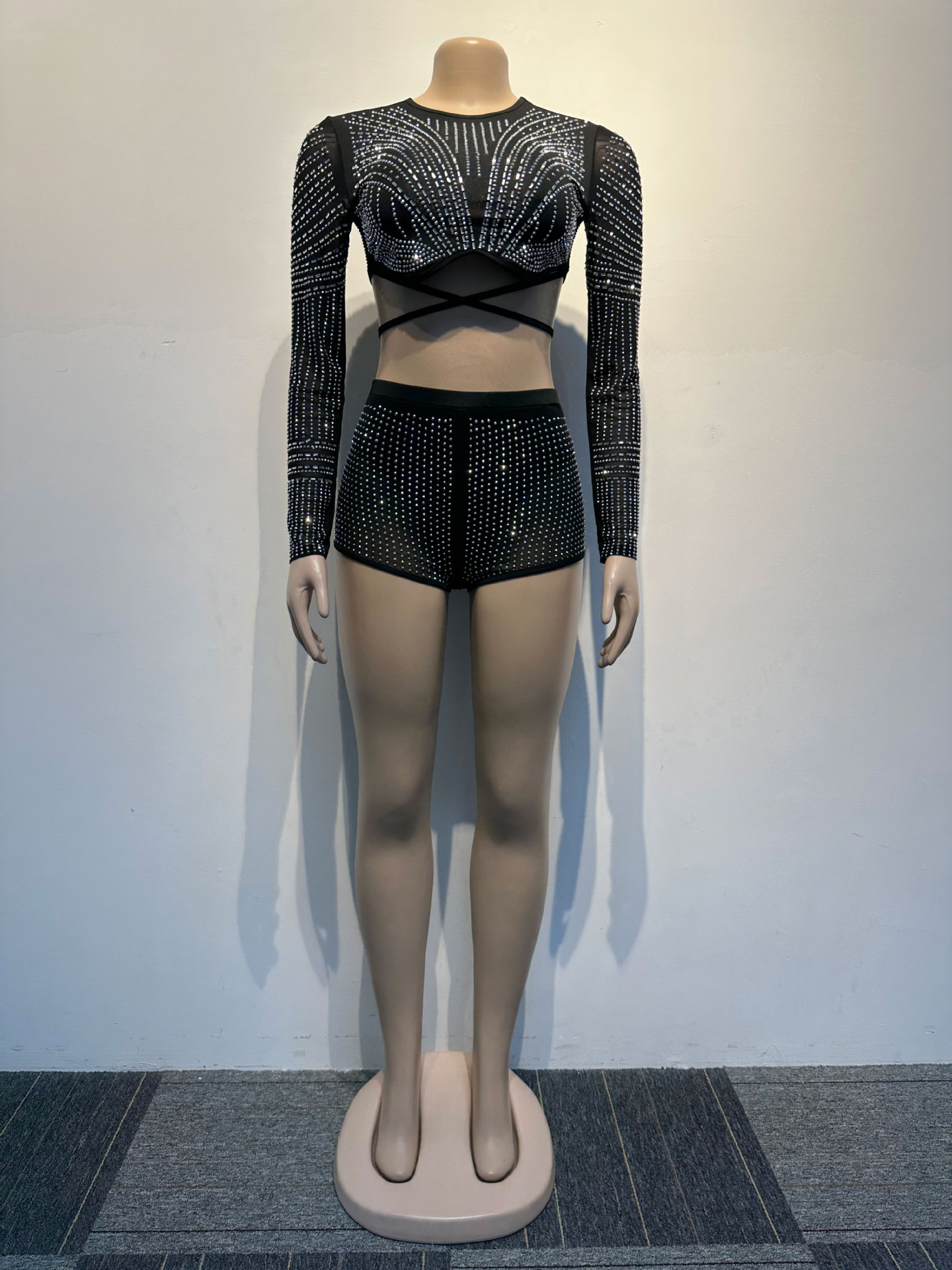Element: Cutout,Lace/Tulle/Fishnet,Lace up,Rhinestone