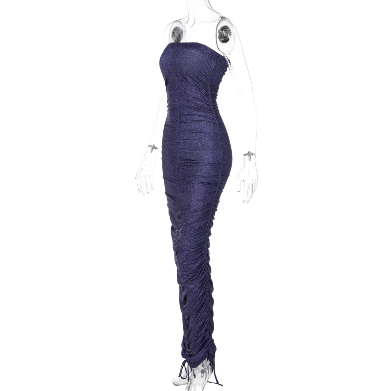 Women Clothing Summer Sexy Tube Top Dress Ruched Slim Fit Sheath Dress Women