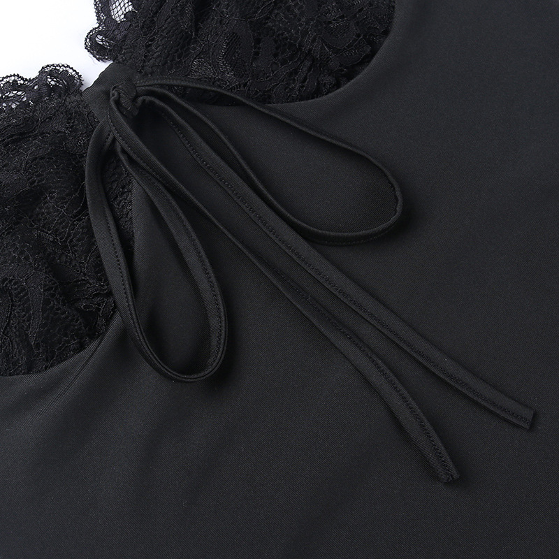 Element: Lace/Tulle/Fishnet,Asymmetric,Tie