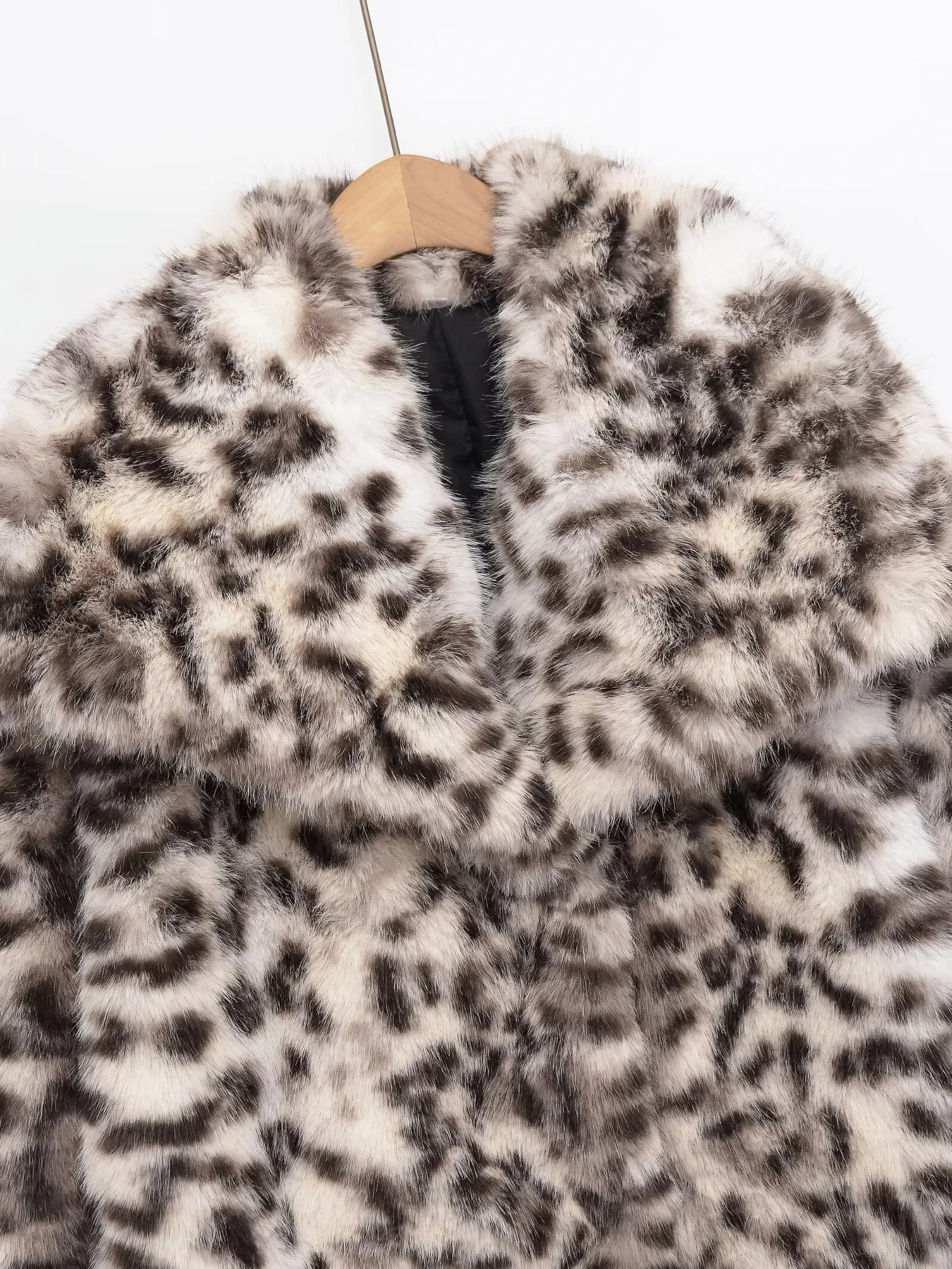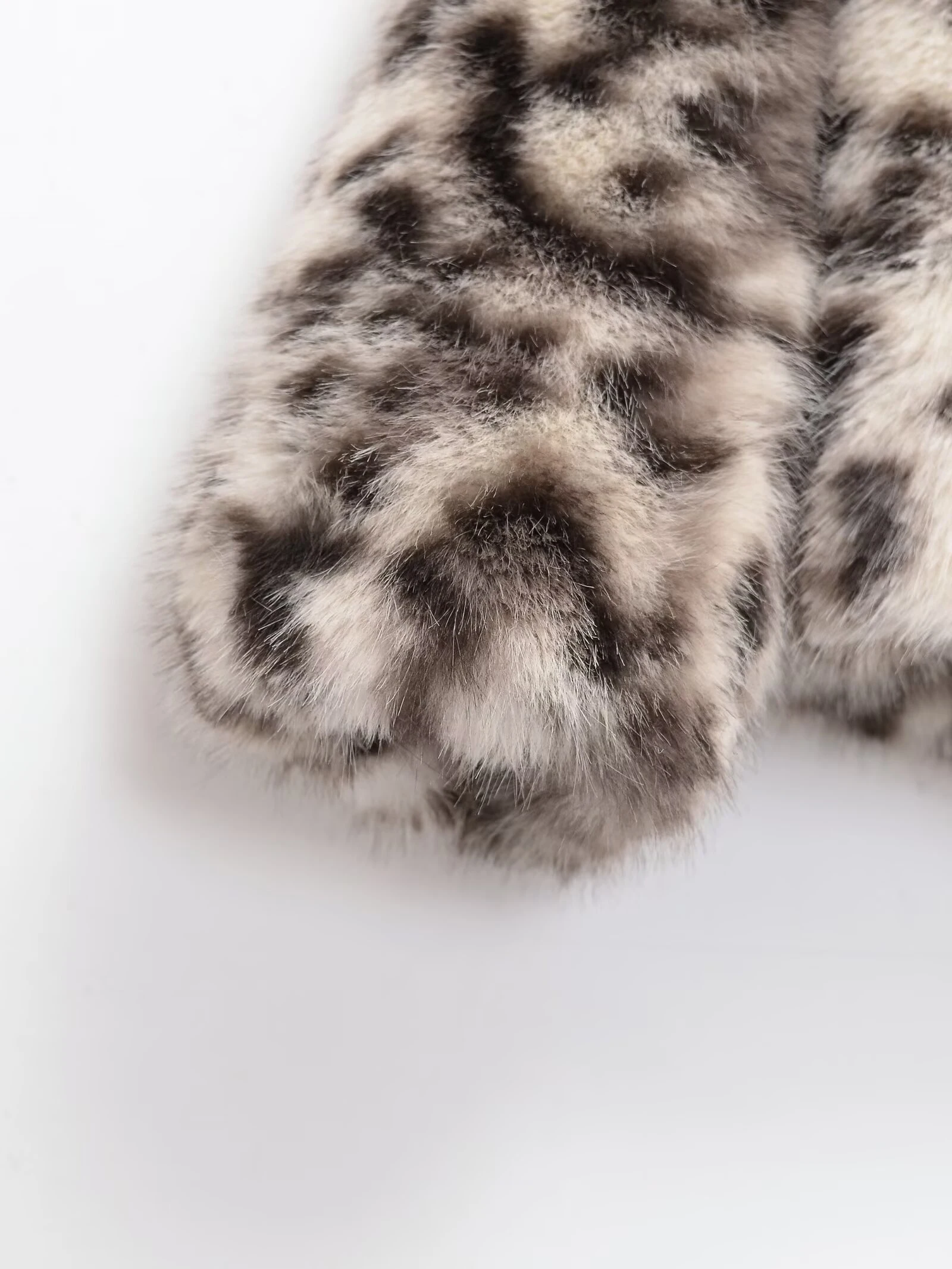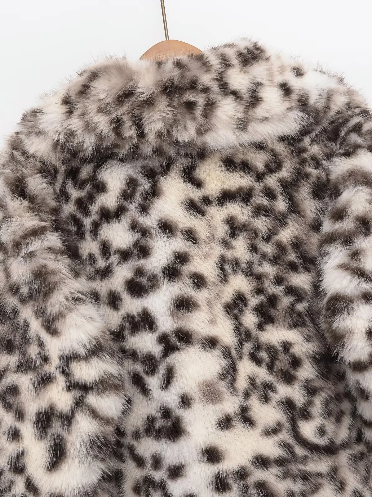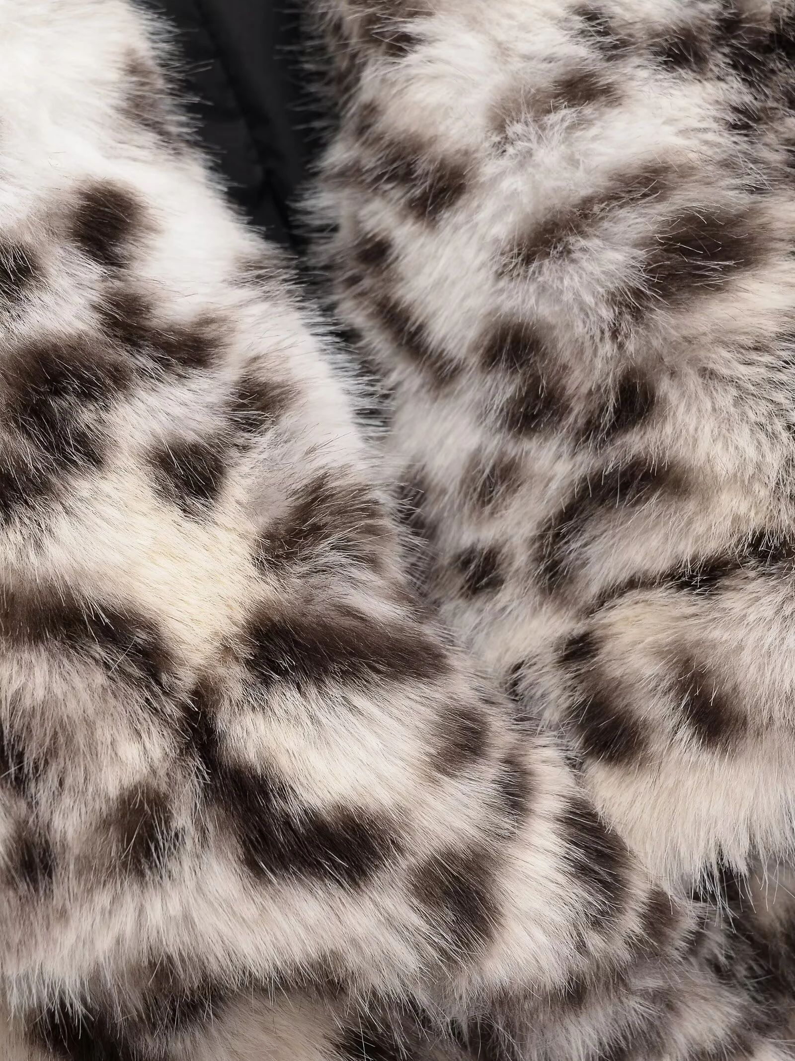 2025 Autumn Luxe Collar Faux Fur Leopard Print Jacket