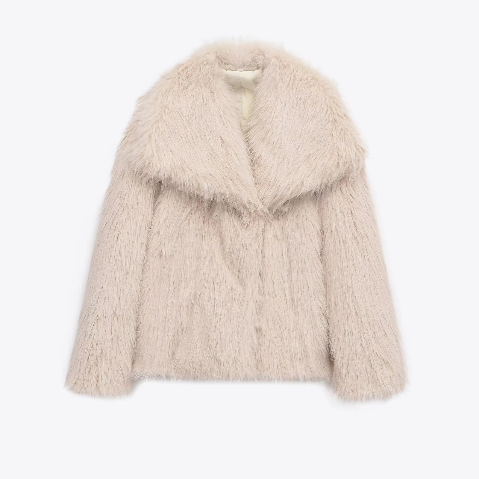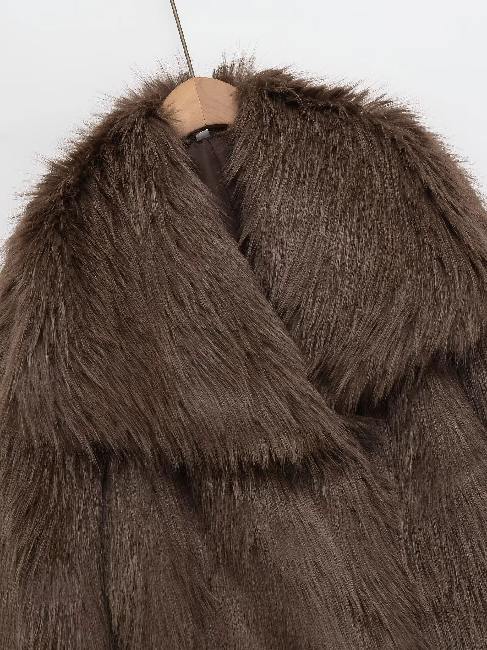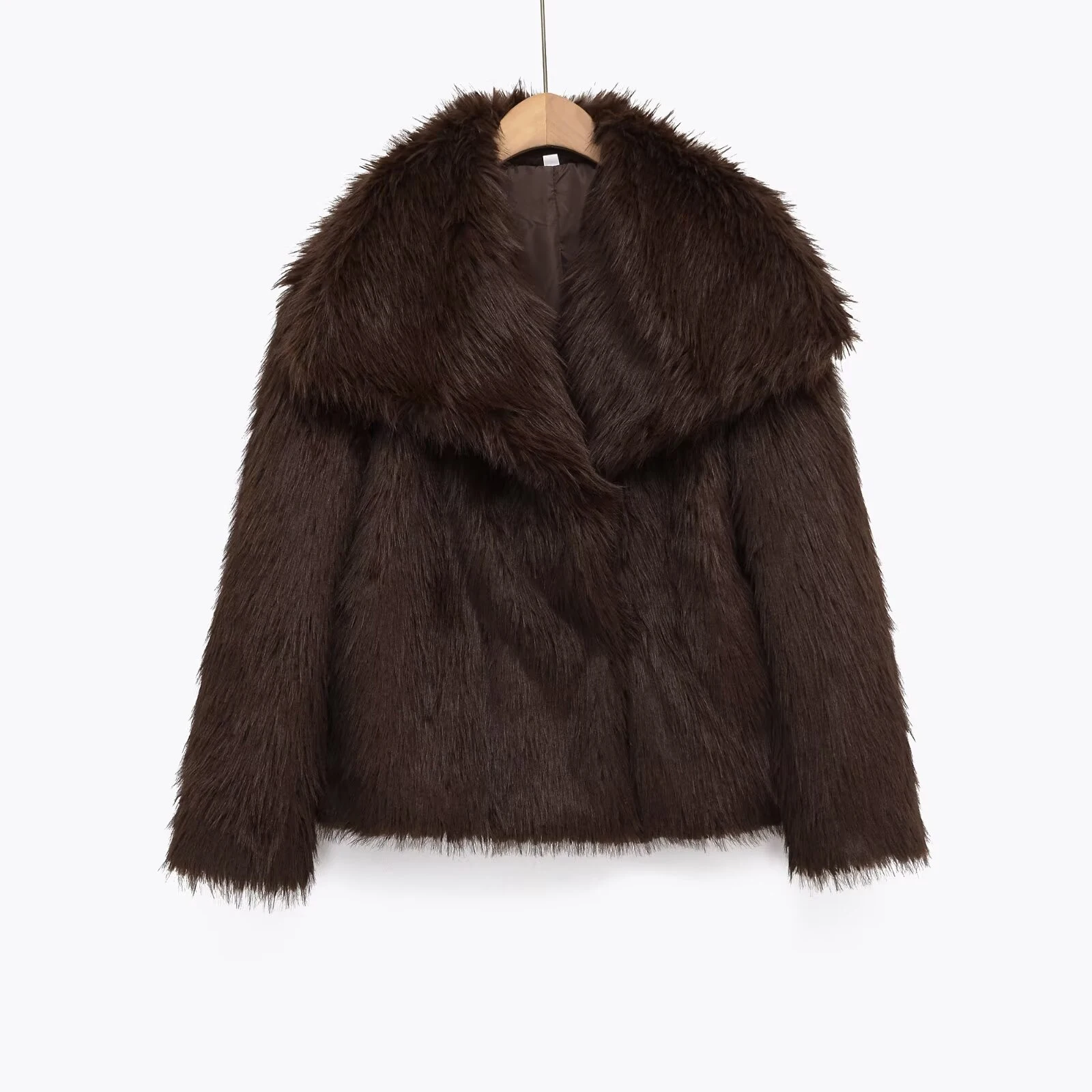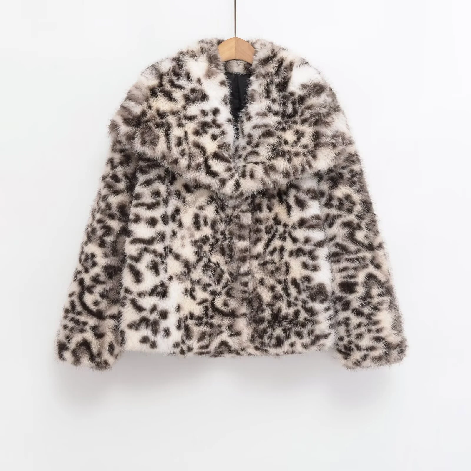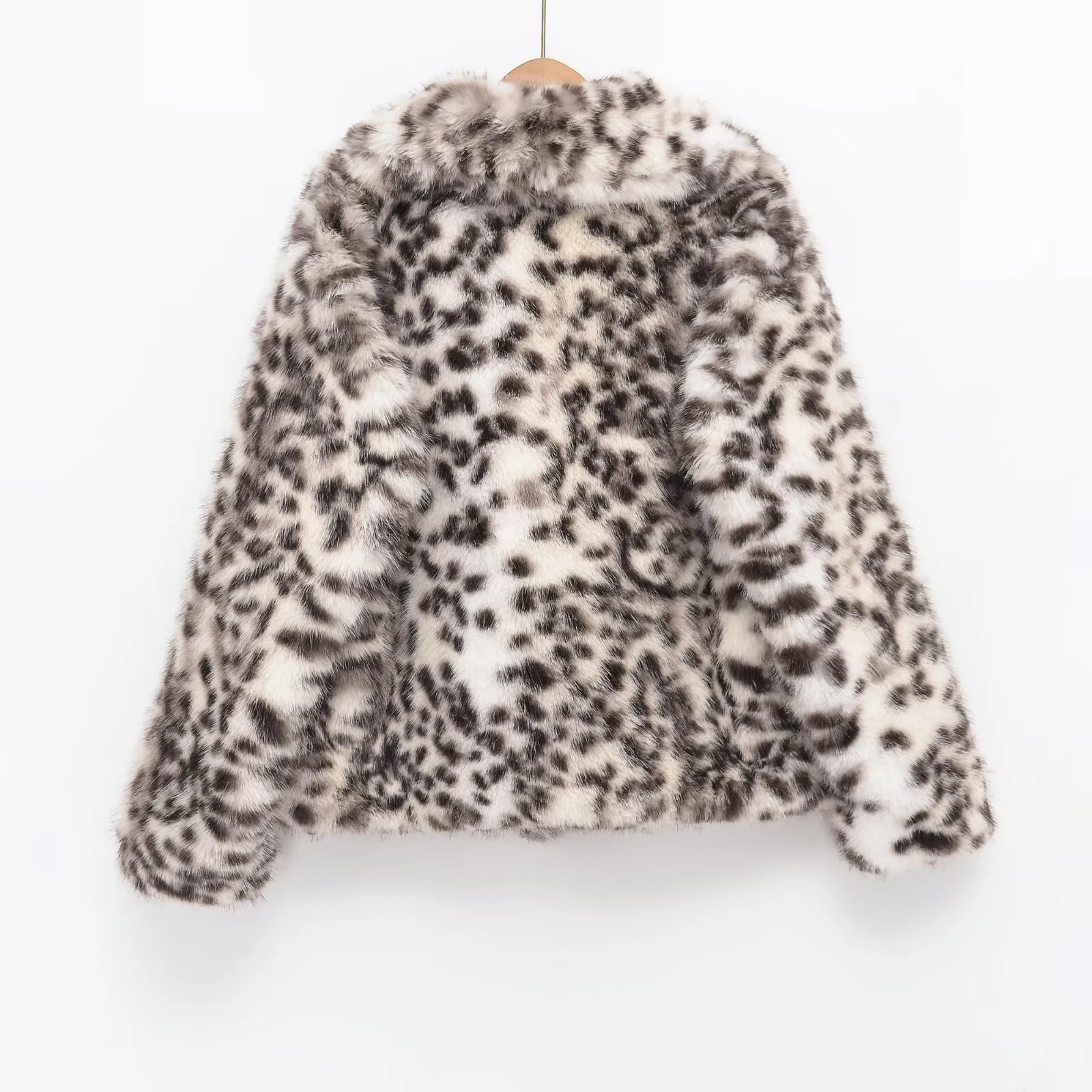 2025 Autumn Luxe Collar Faux Fur Leopard Print Jacket