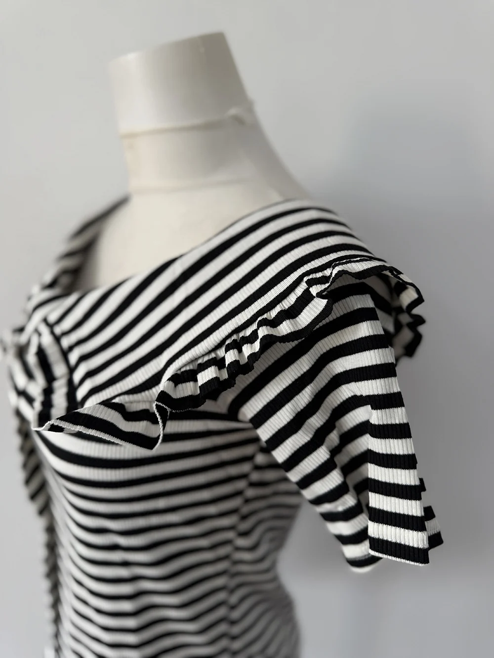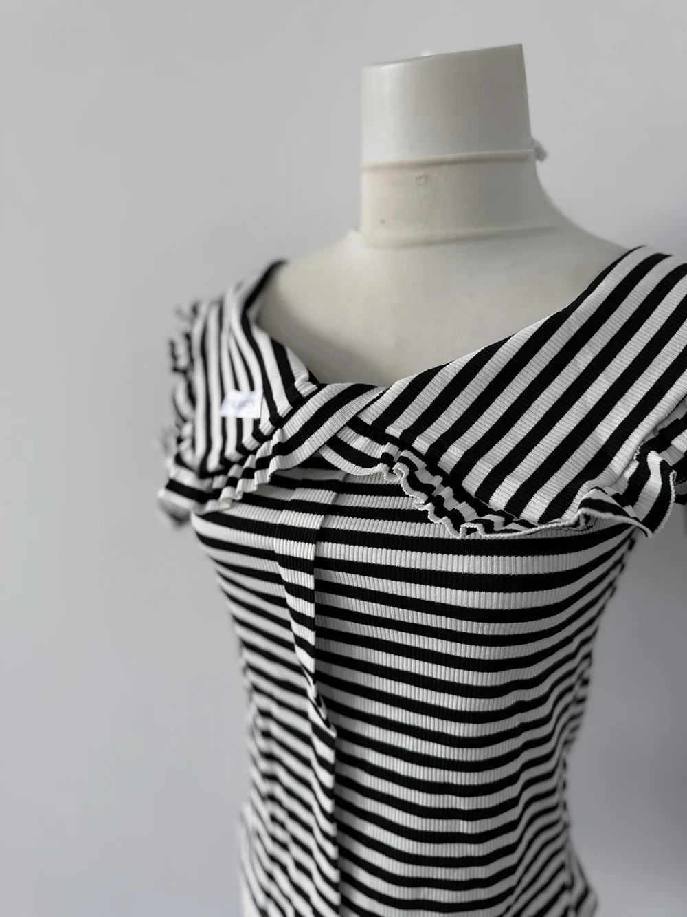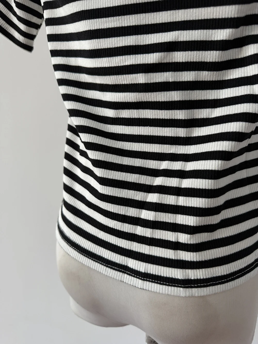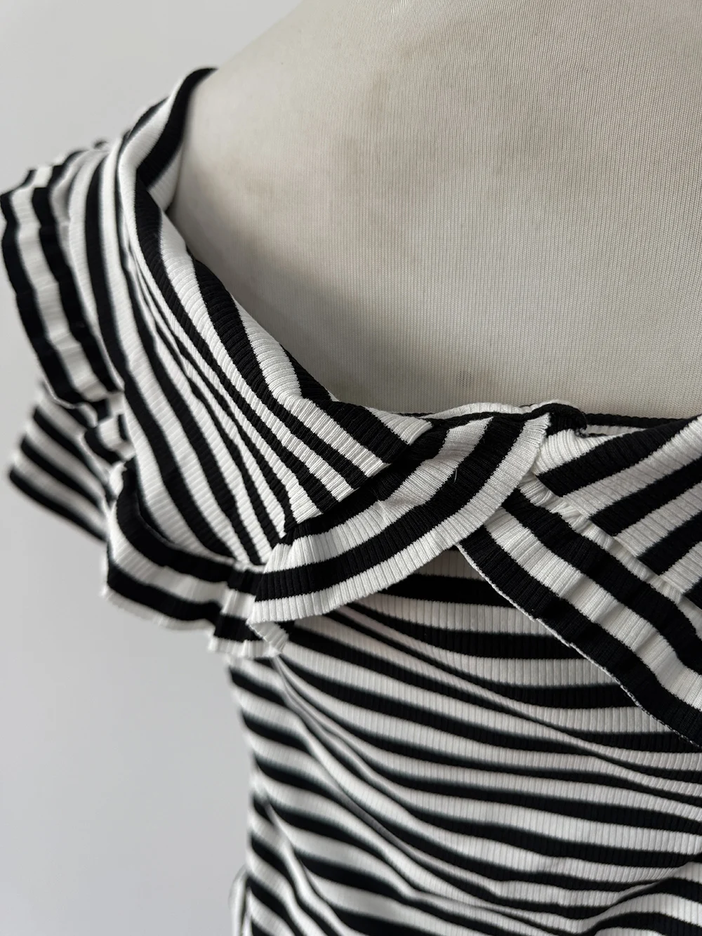 2025 Summer Korean Stripe Off Shoulder Short Sleeve T-Shirt