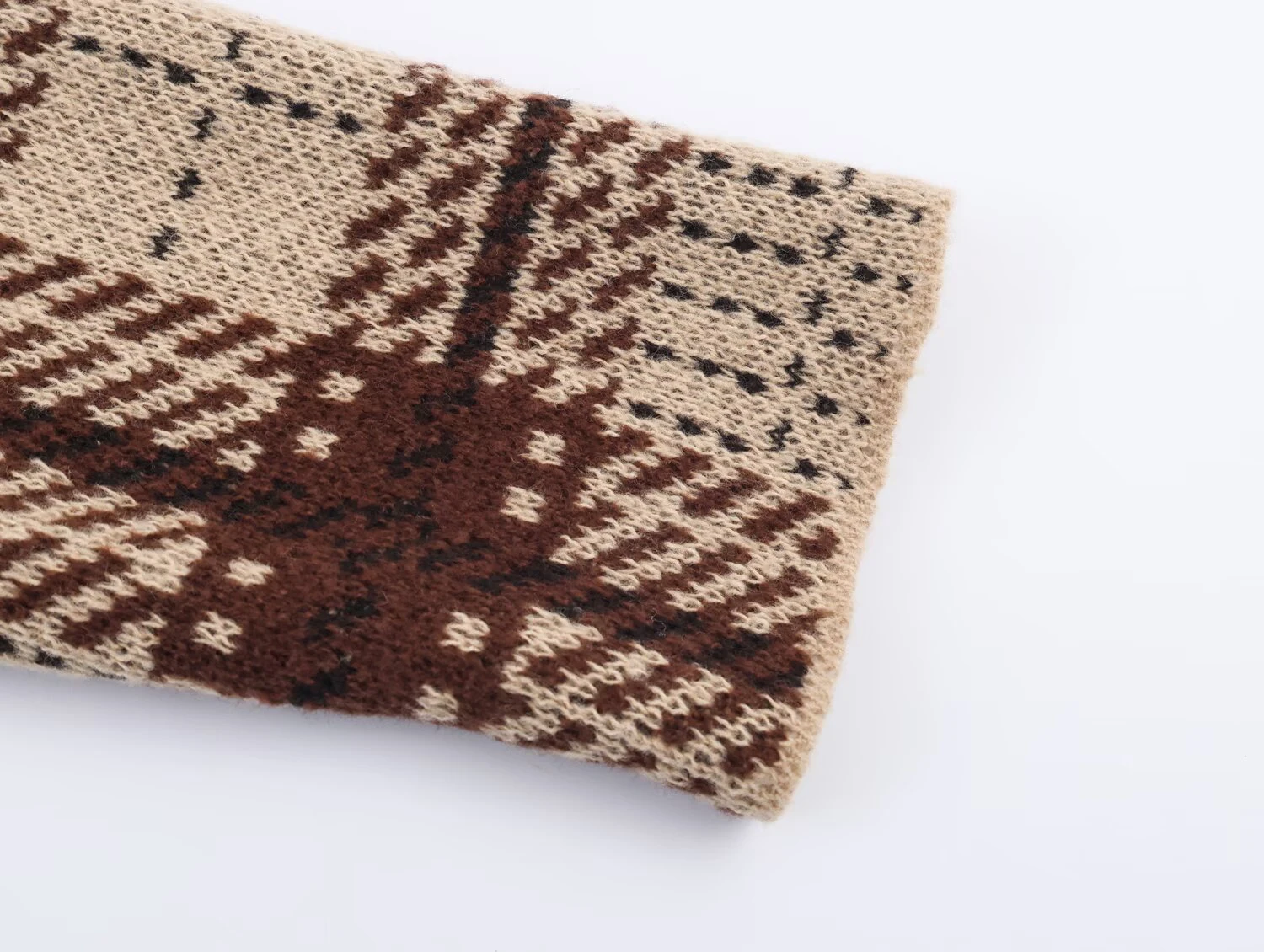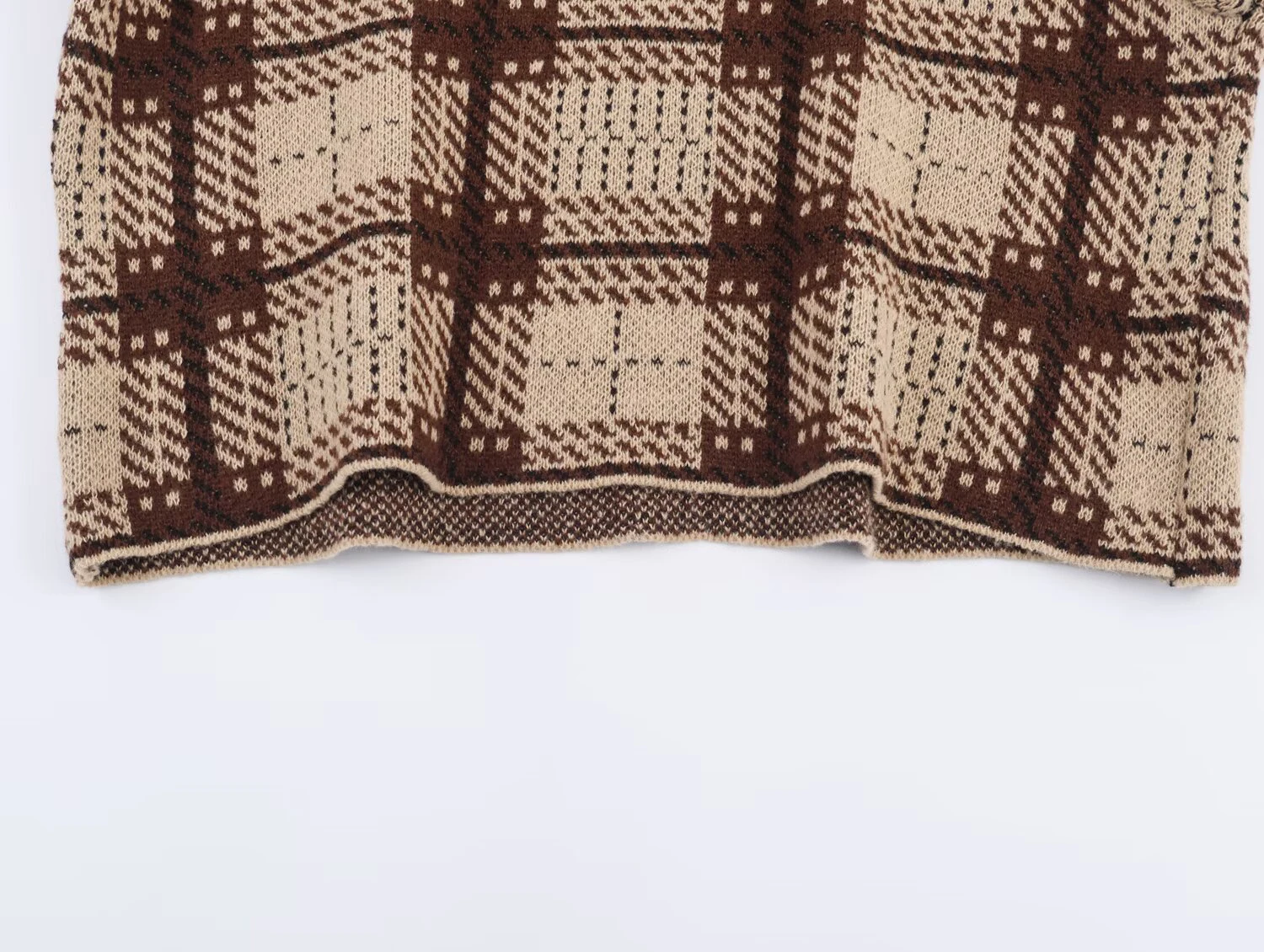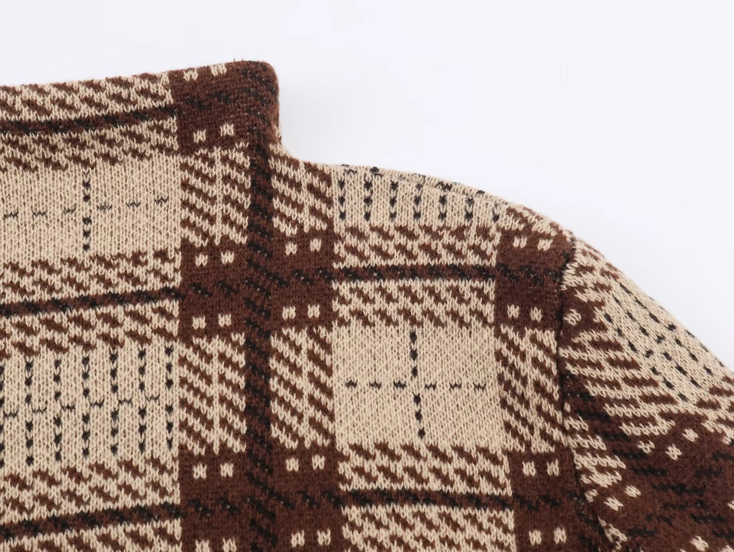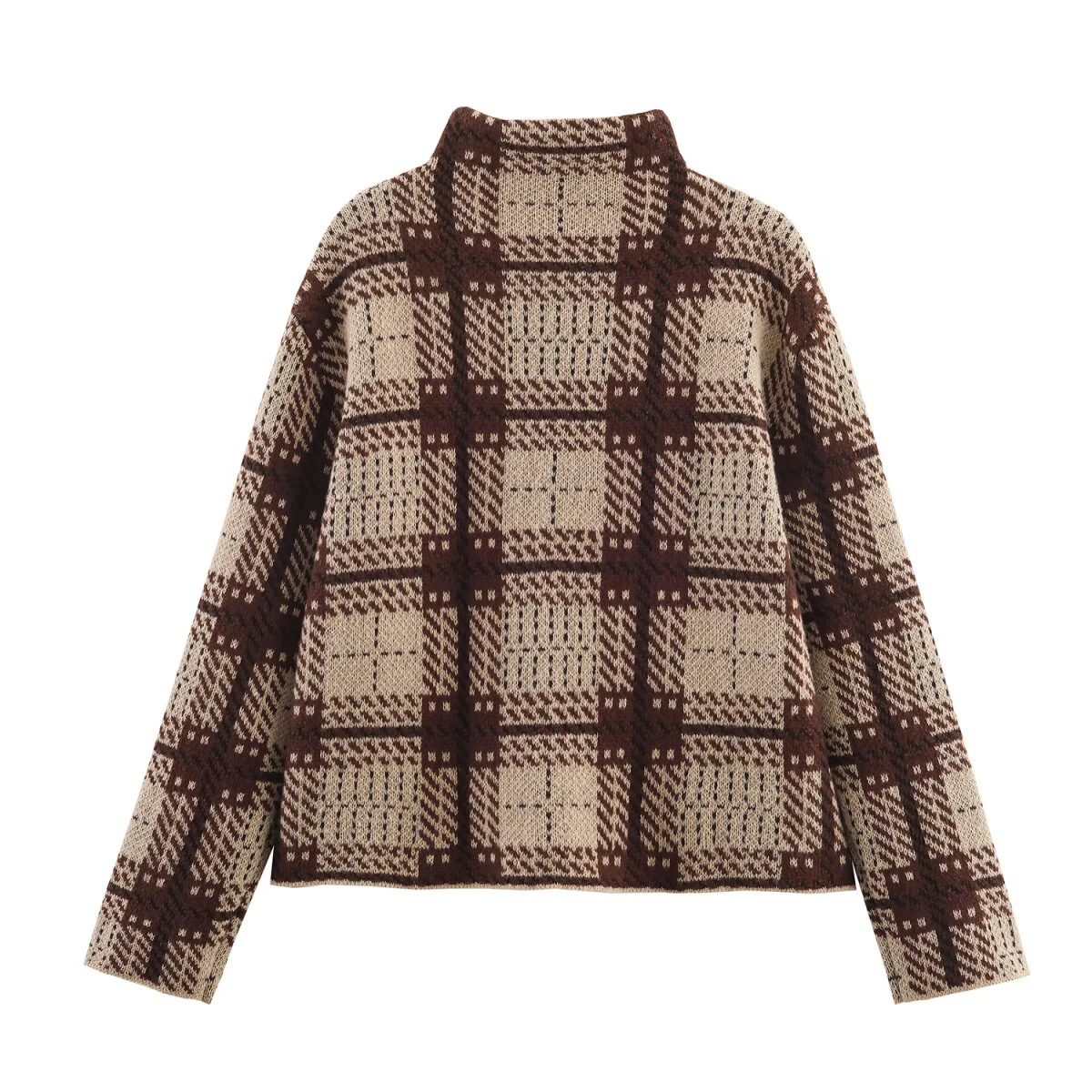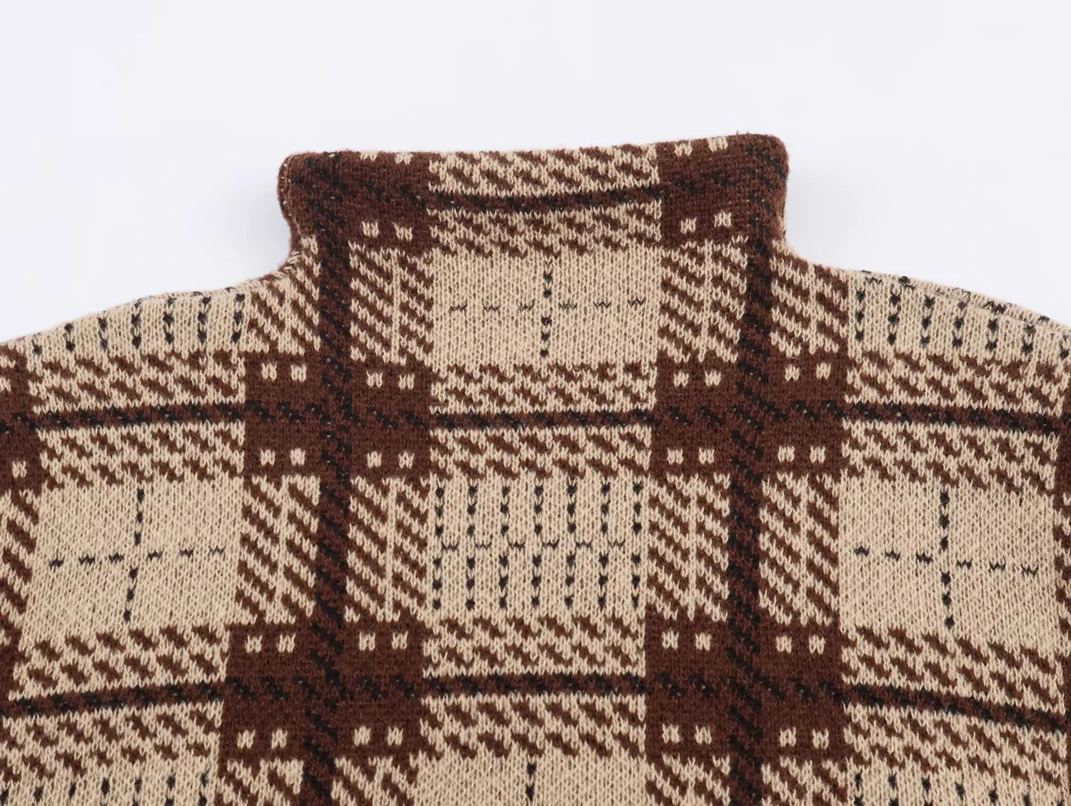 2025 Winter Half-High Neck Plaid Knit Sweater