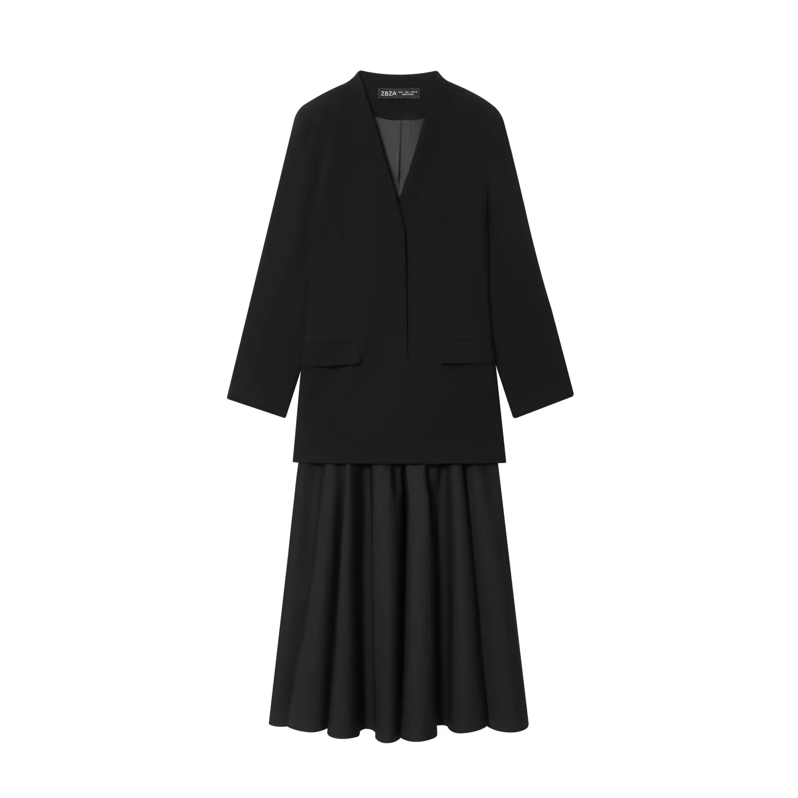 2025 Winter Simple Patchwork V-Neck Suit Dress