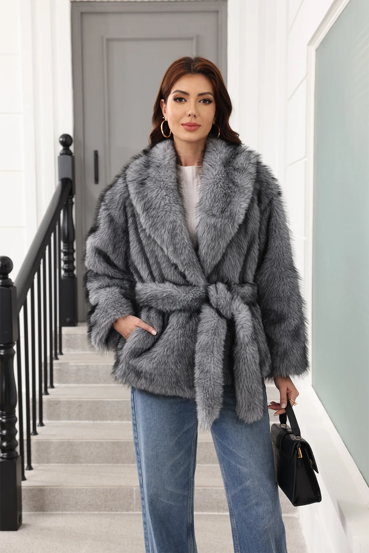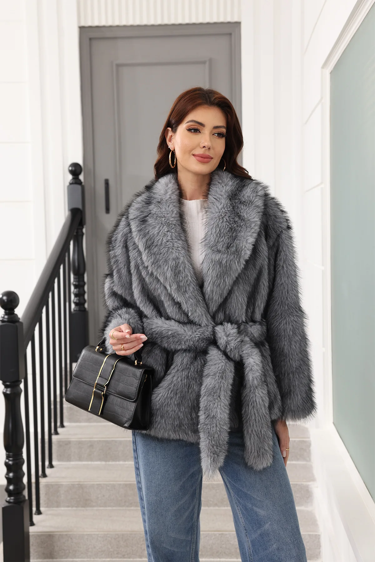 2025 Women’s Belted Faux Fur Coat