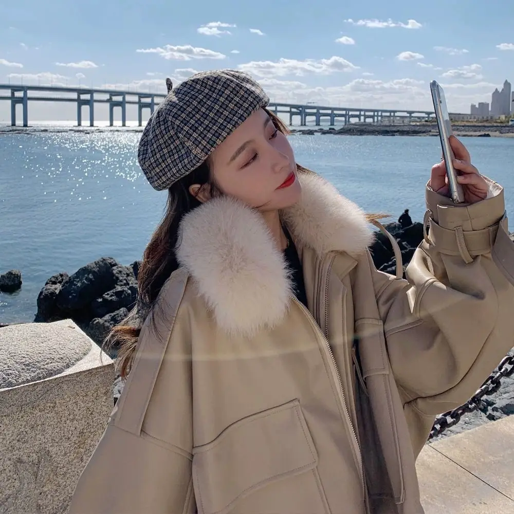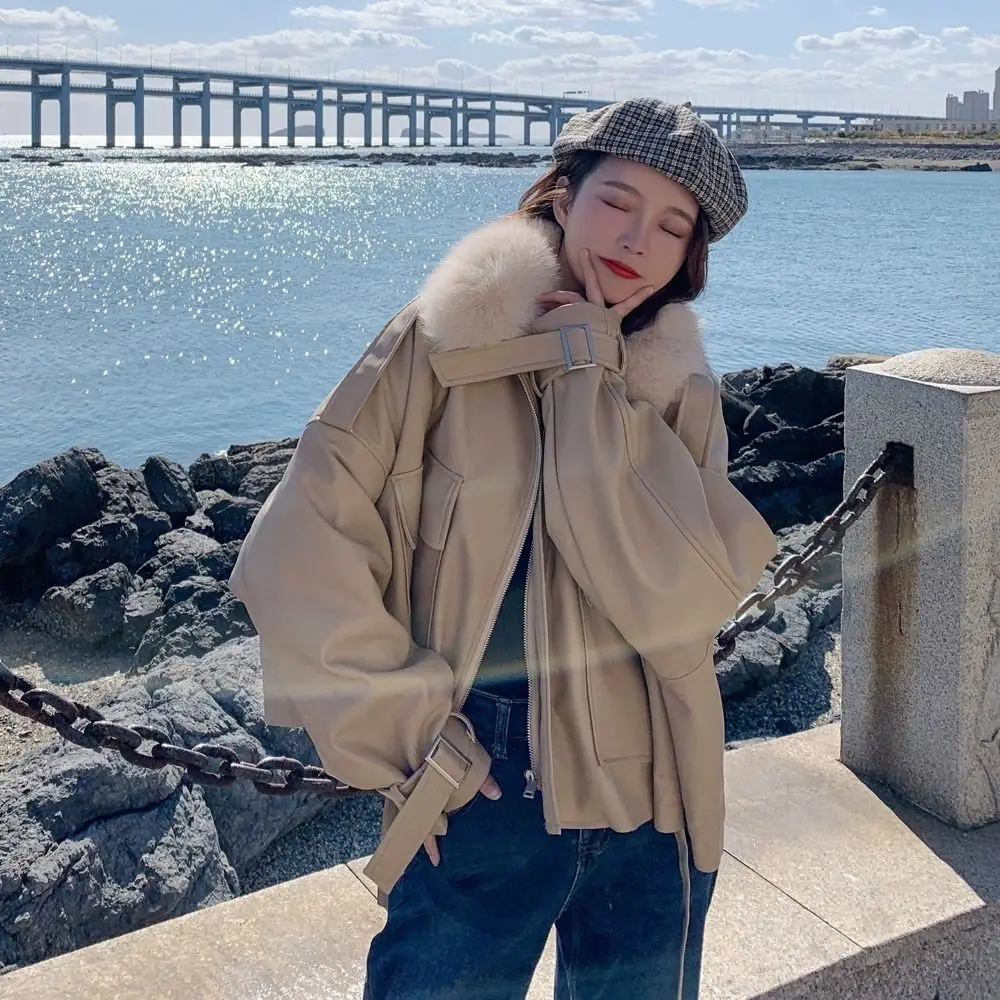 2025 Women’s Winter Leather Puffer Jacket Plus Size