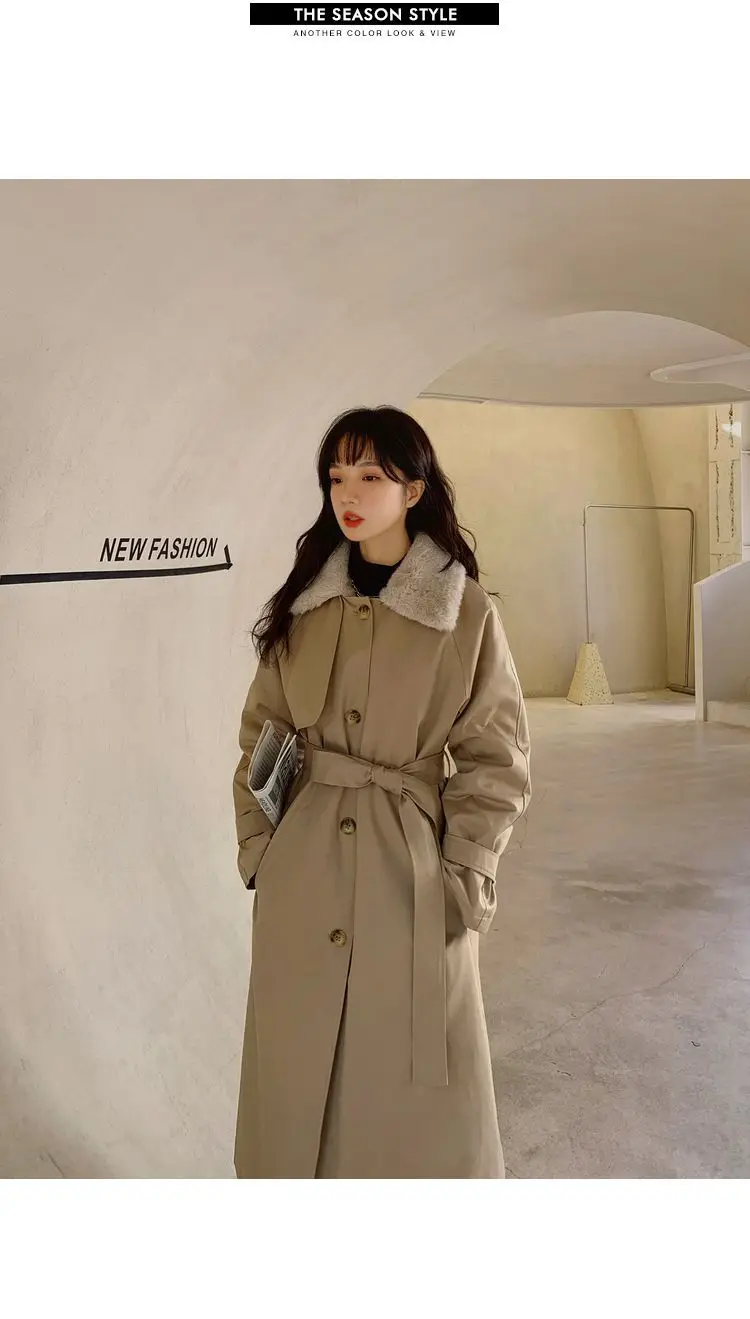 2025 Women’s Winter Long Fleece Lined Trench Coat