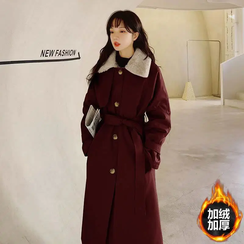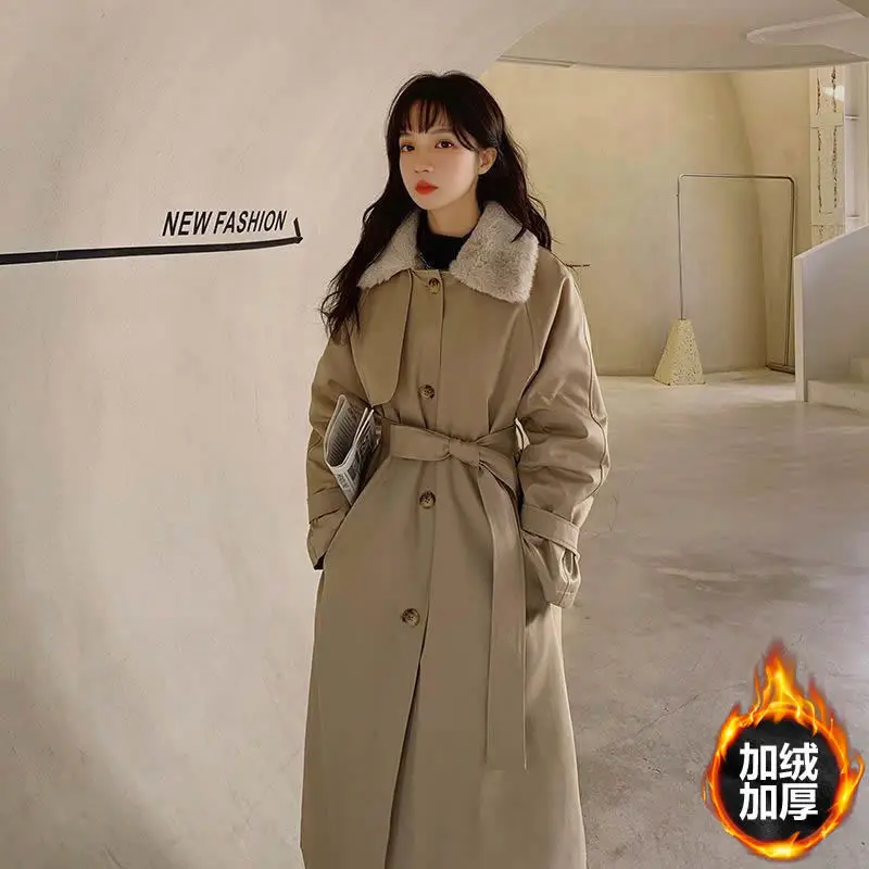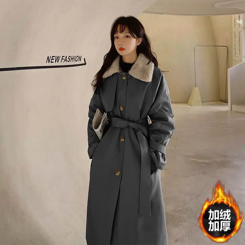 2025 Women’s Winter Long Fleece Lined Trench Coat