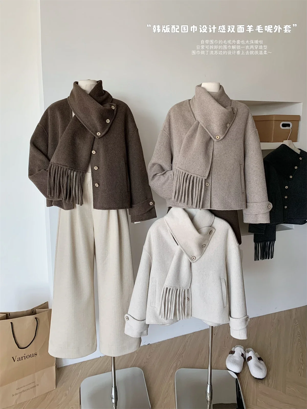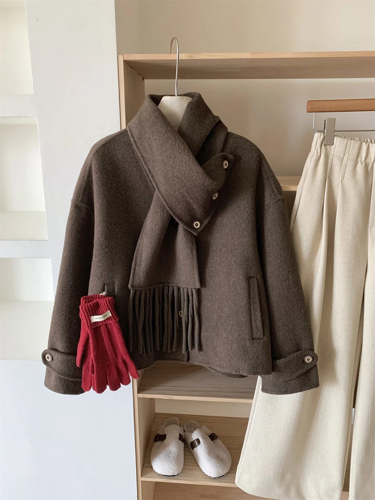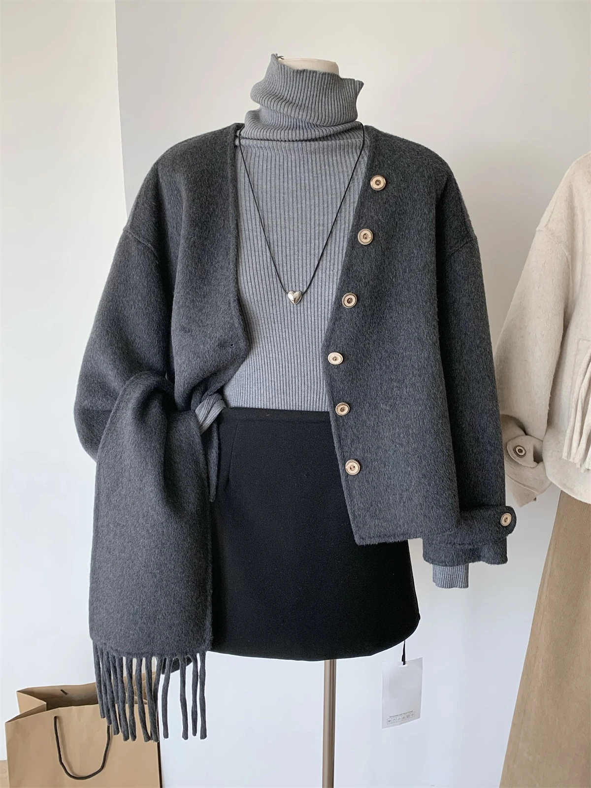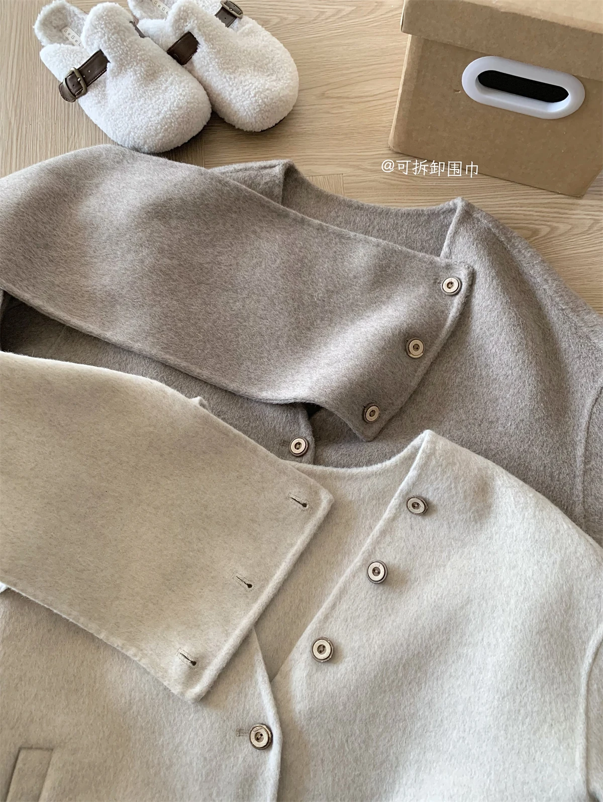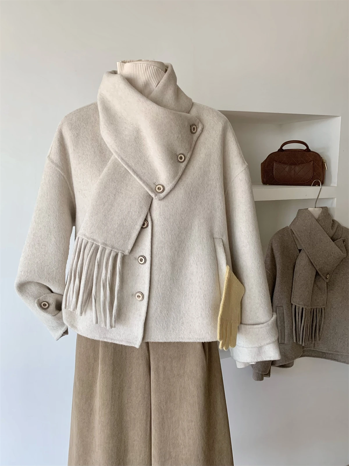 2025 Wool-Blend V-Neck Coat Set with Scarf