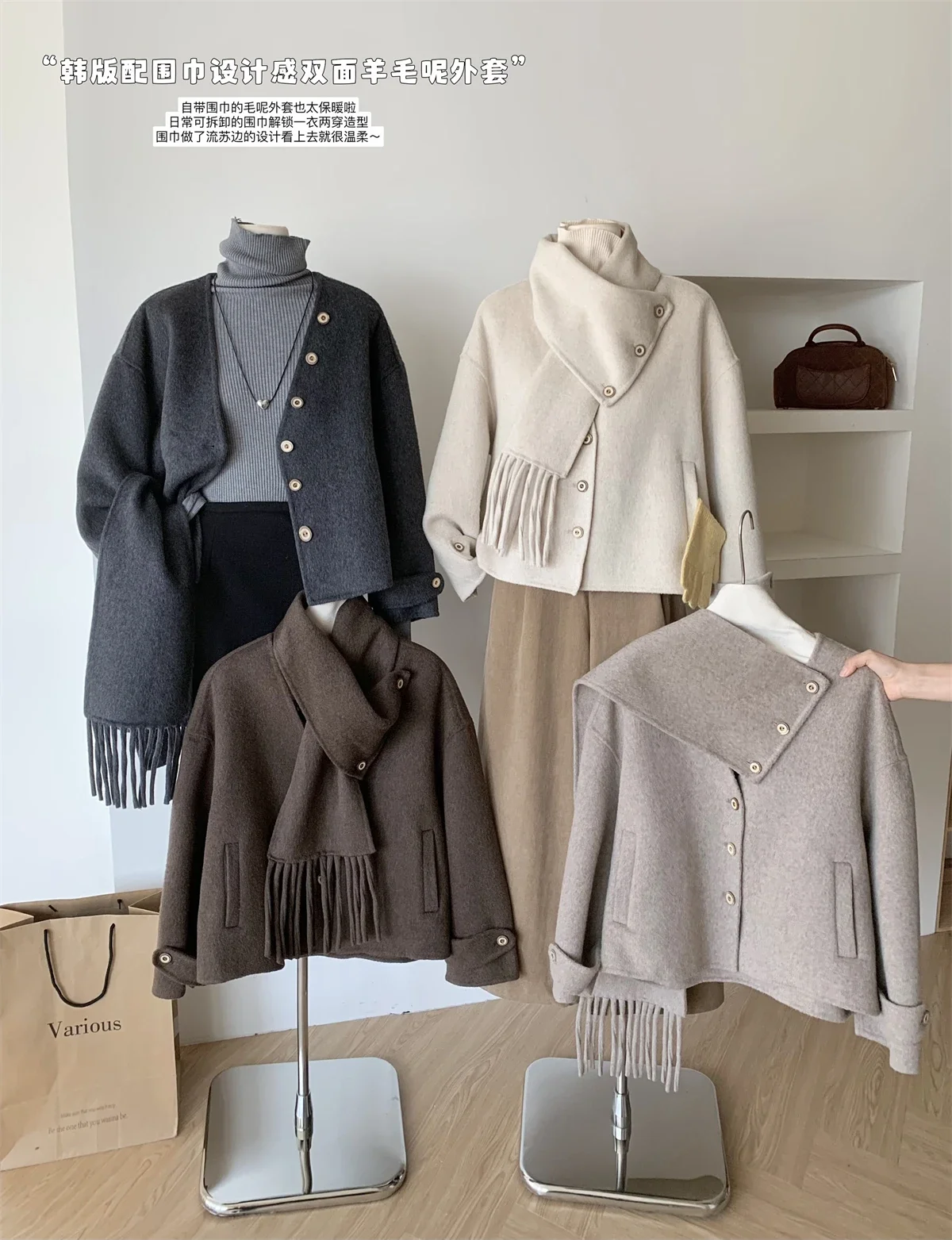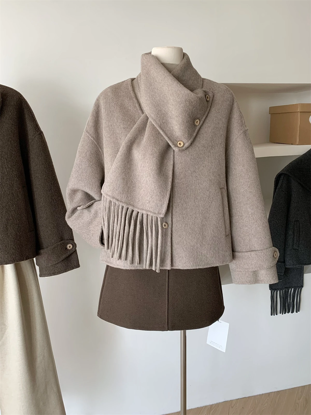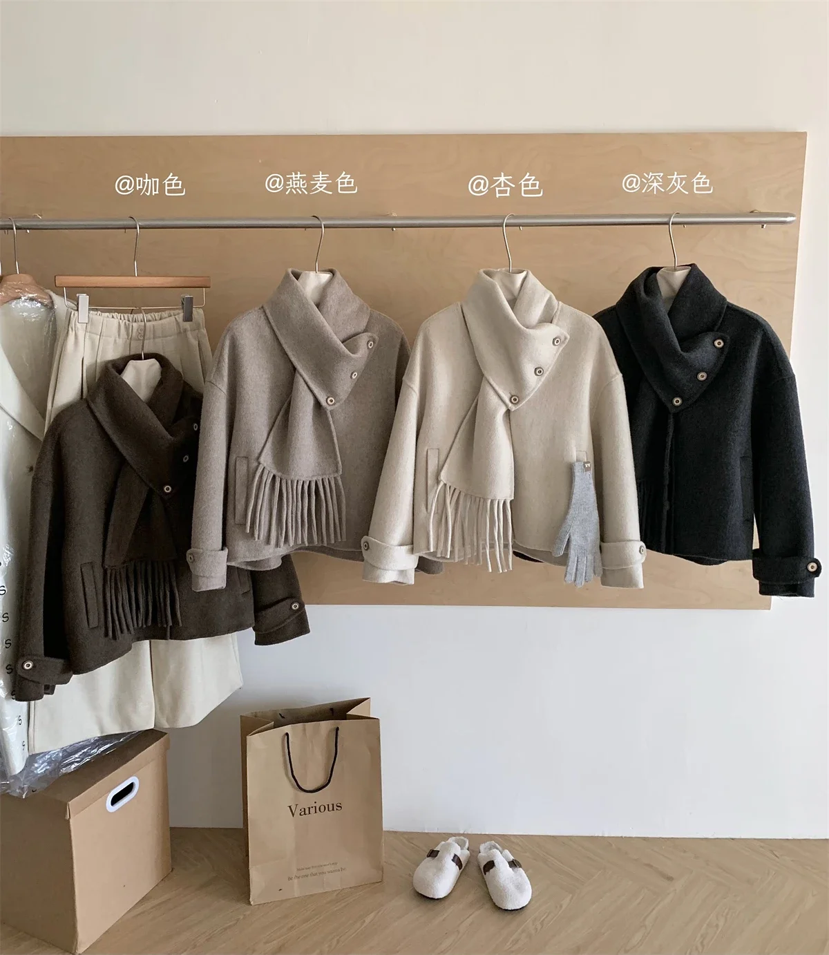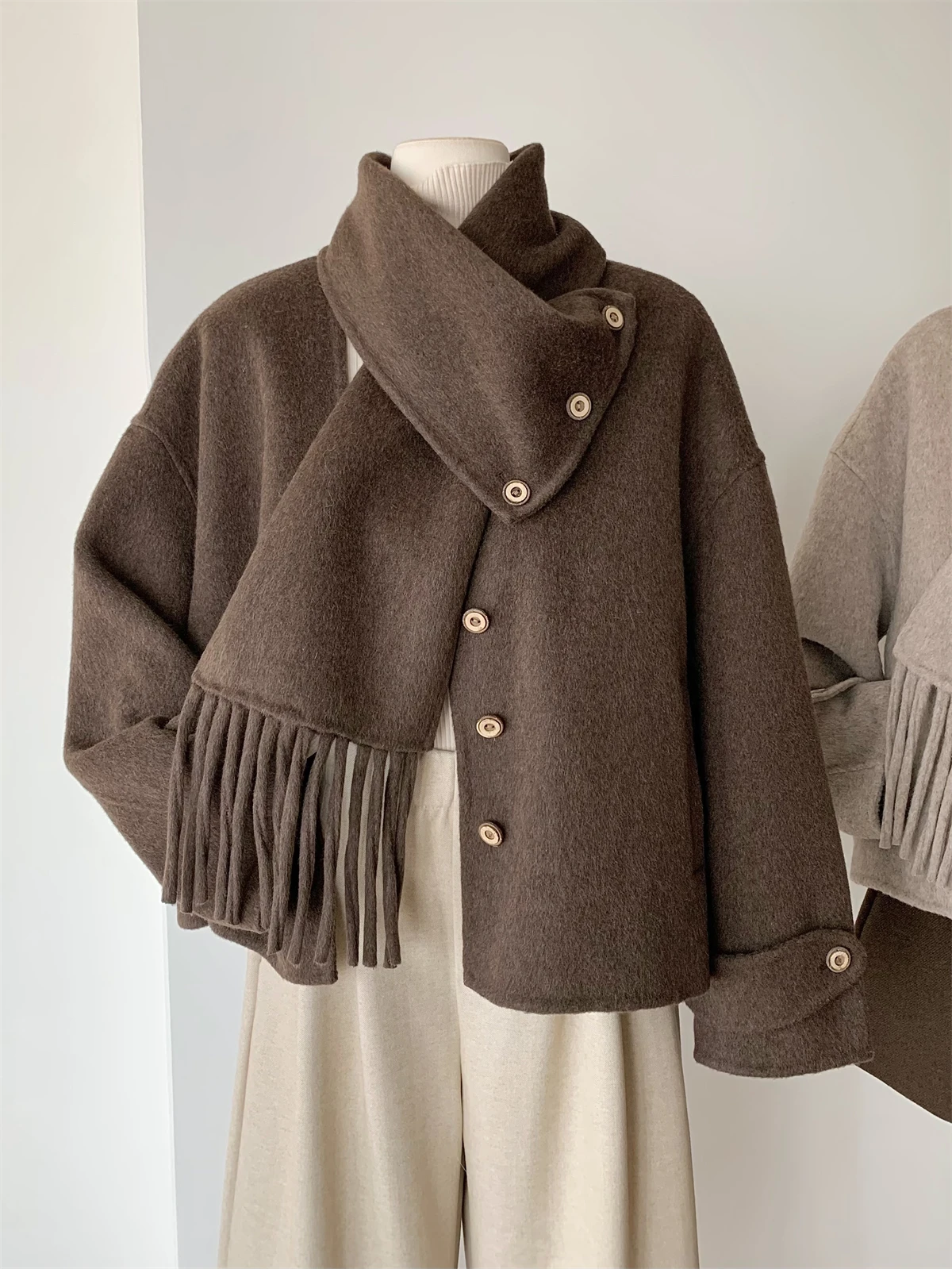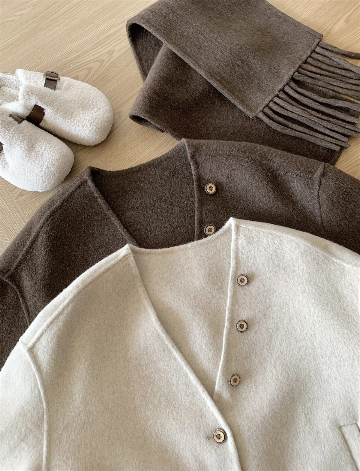 2025 Wool-Blend V-Neck Coat Set with Scarf