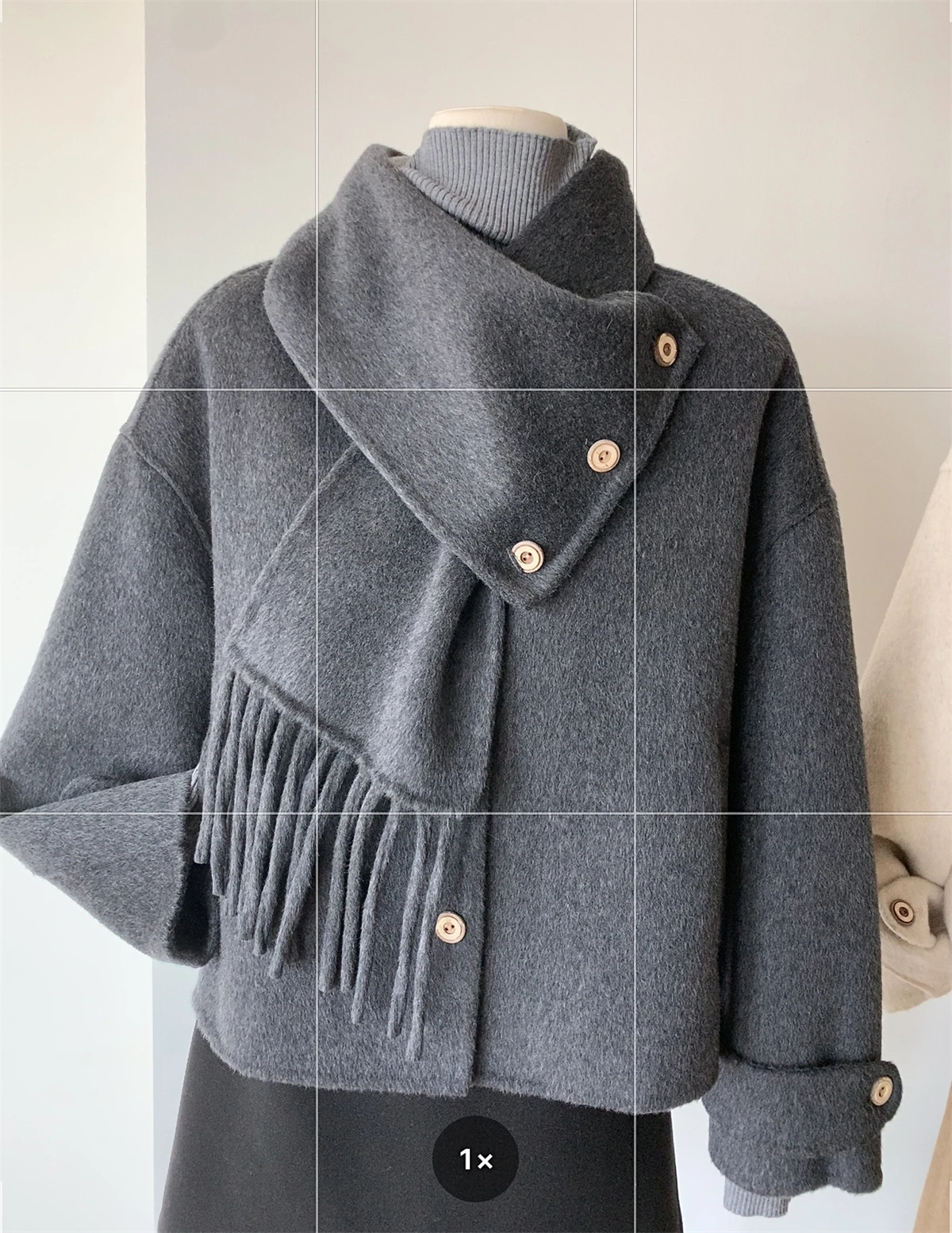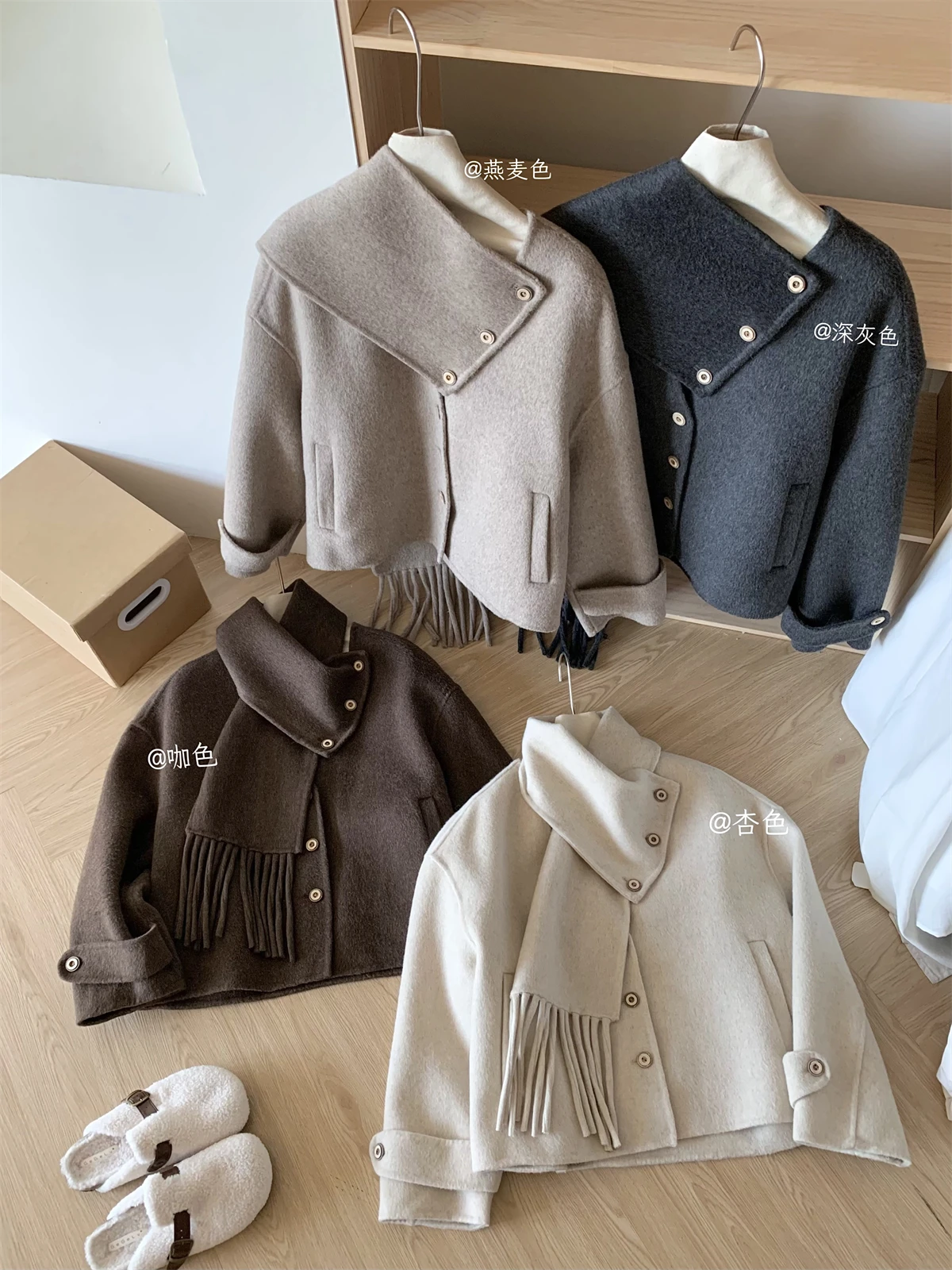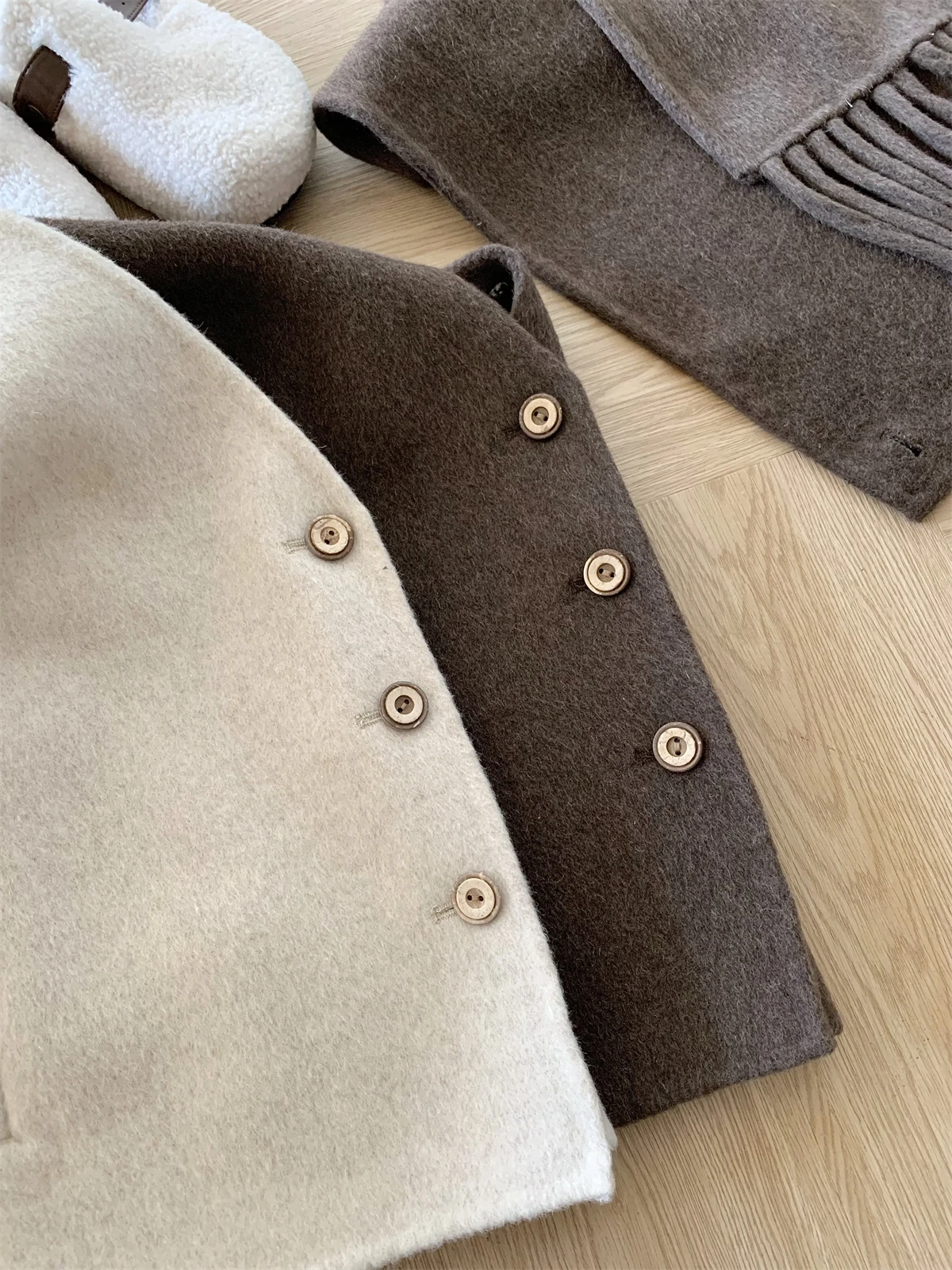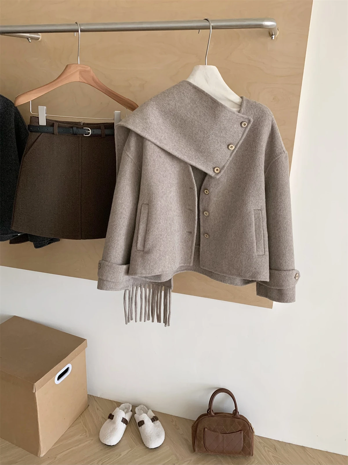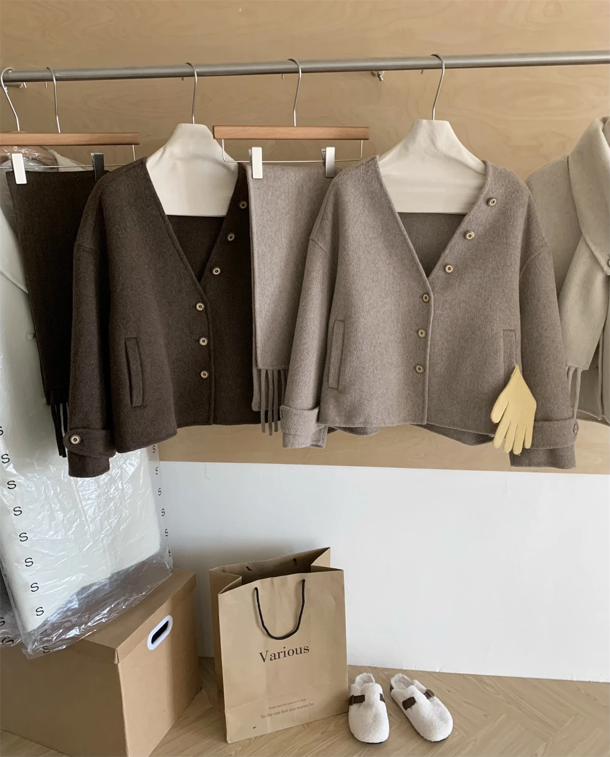 2025 Wool-Blend V-Neck Coat Set with Scarf