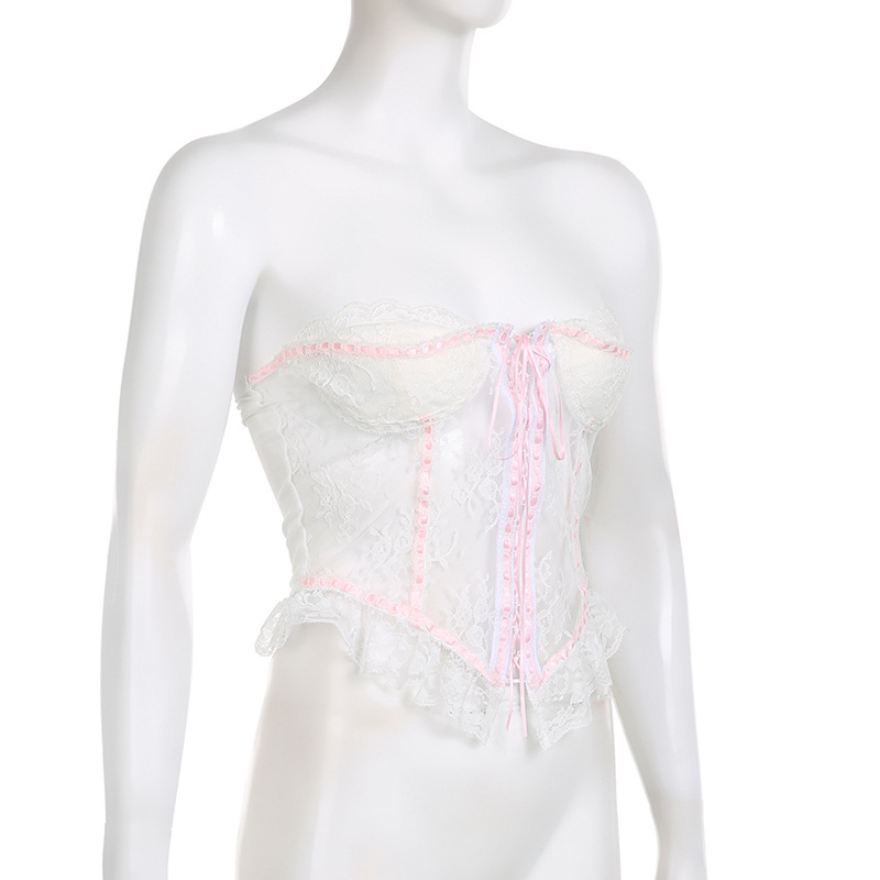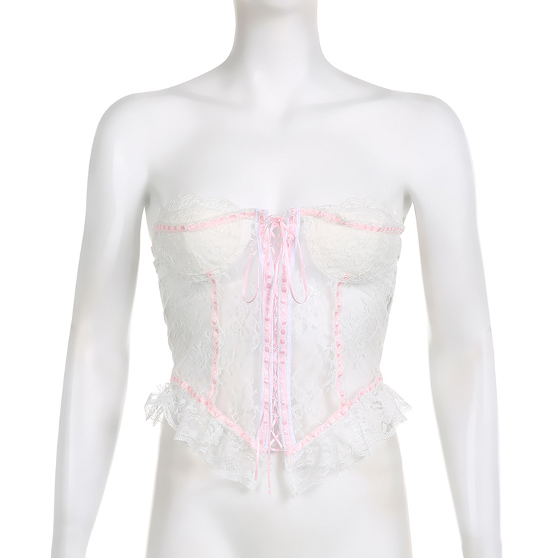 Element: Lace/Tulle/Fishnet,Boning,Lace up,Ruffle