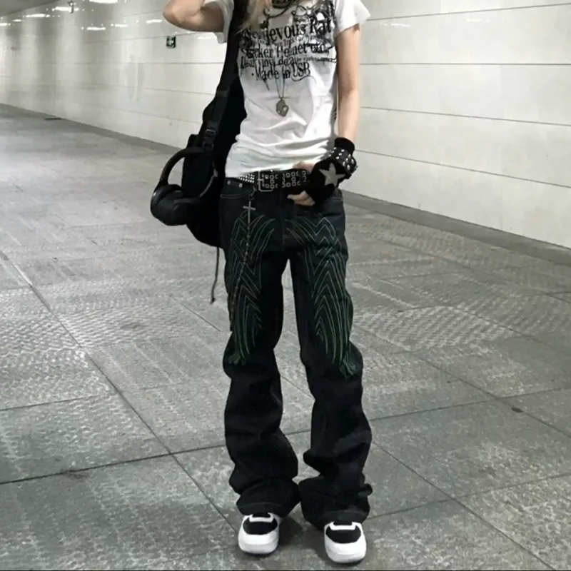 American High Street Embroidered High-Waist Straight Jeans