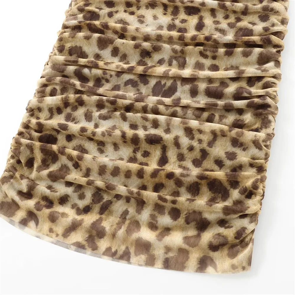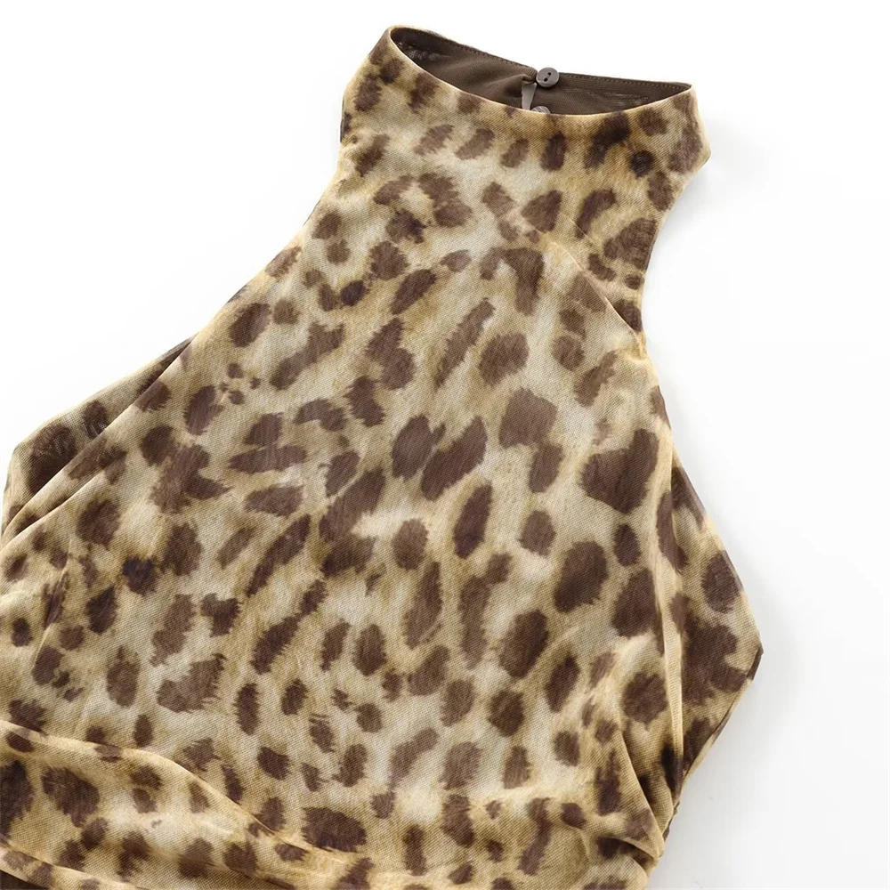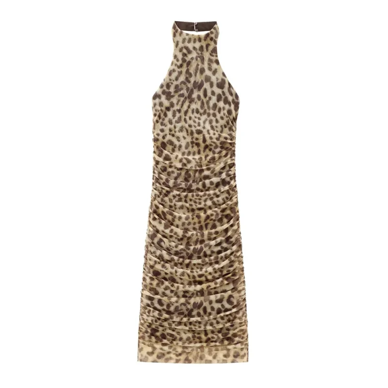 Autumn Animal Print Backless Slim-Fit Mesh Dress