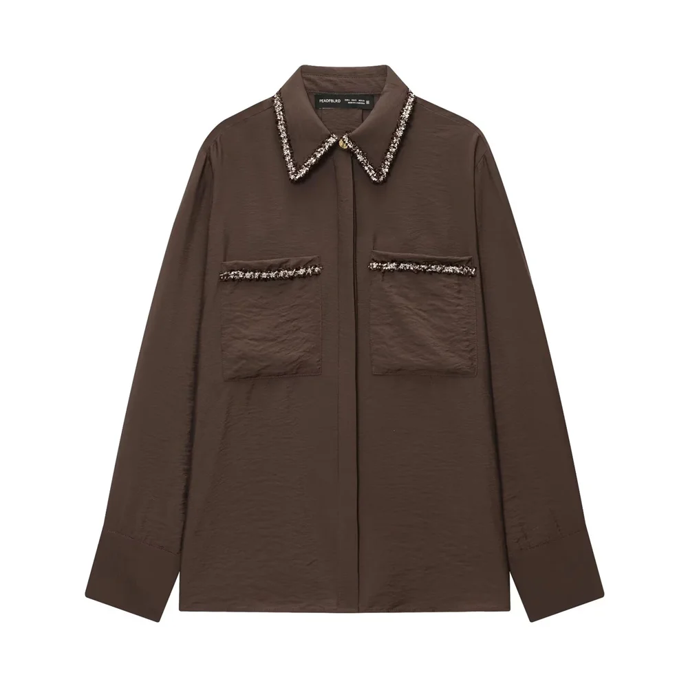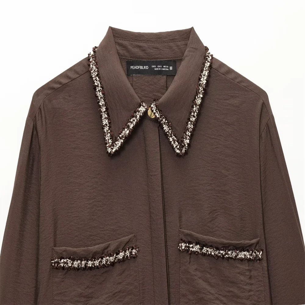 Autumn Collared Long Sleeve Shirt with Decorative Edges