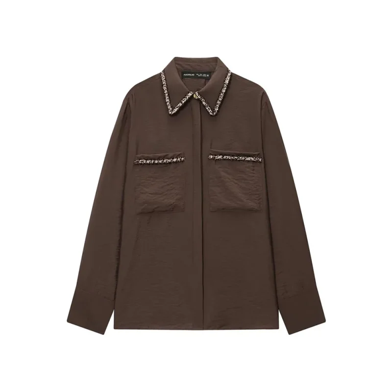 Autumn Collared Long Sleeve Shirt with Decorative Edges