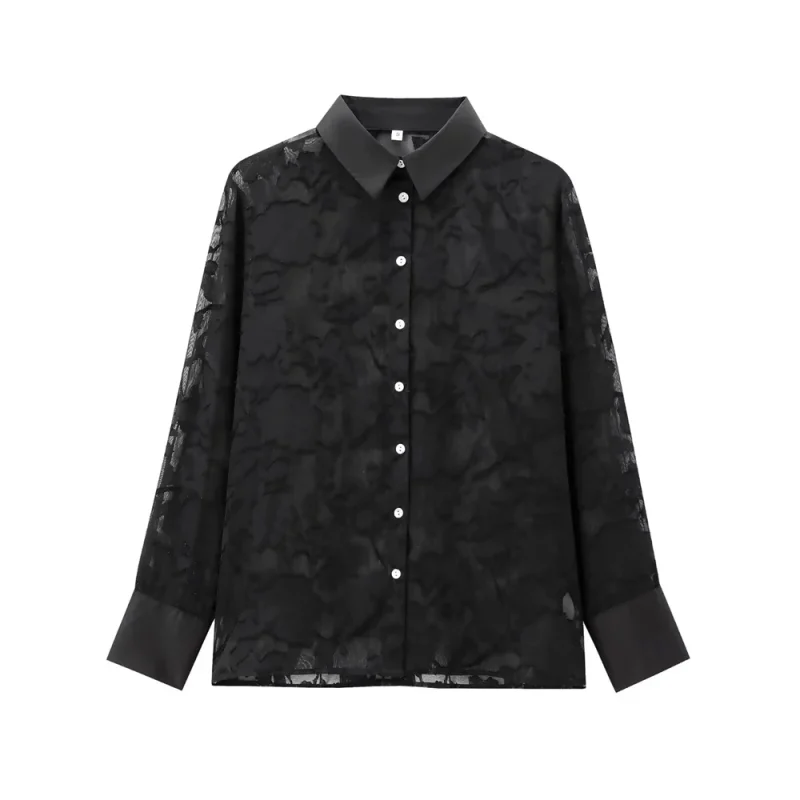 Autumn European-Style Printed Sheer Long-Sleeve Shirt
