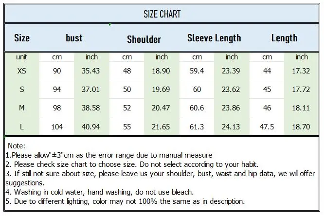 US Size Bust (cm) Shoulder (cm) Sleeve Length (cm)