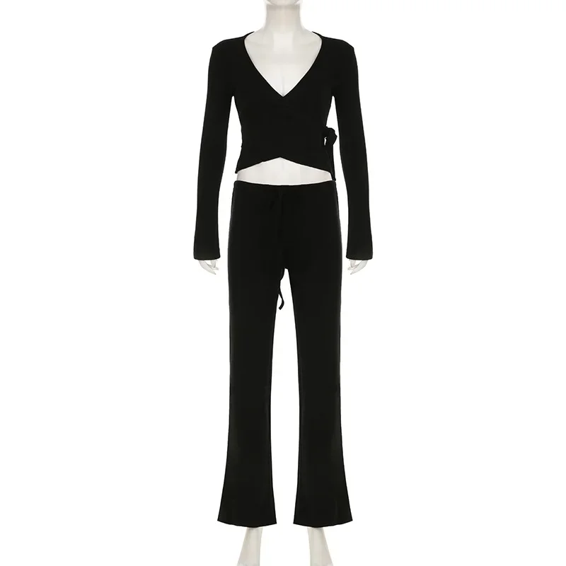 Autumn Flannel Lined V-Neck Top & Pants Set Women