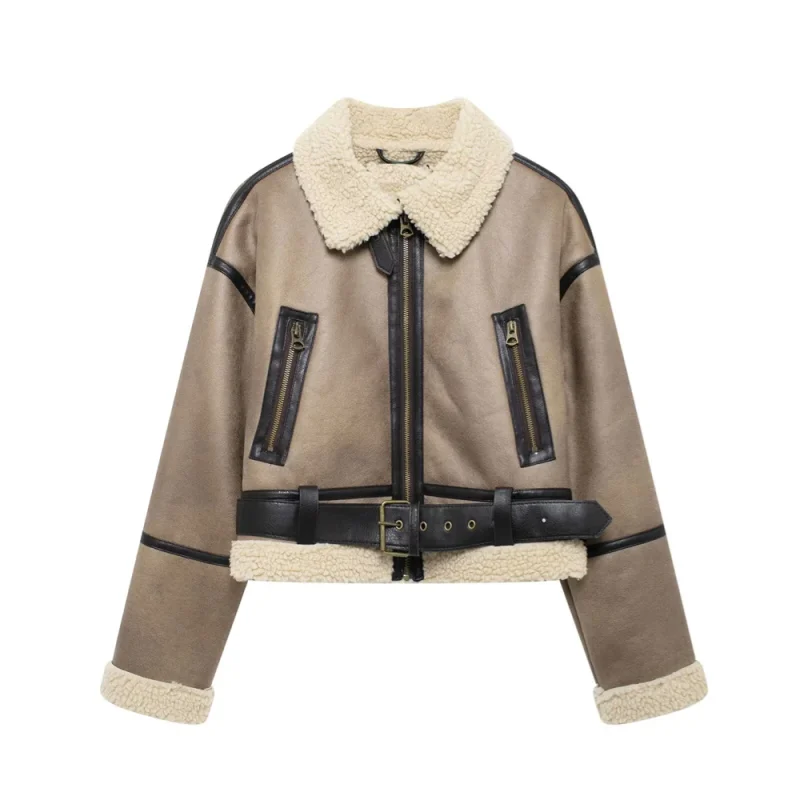 Autumn Fleece-Lined Belted Double-Sided Jacket