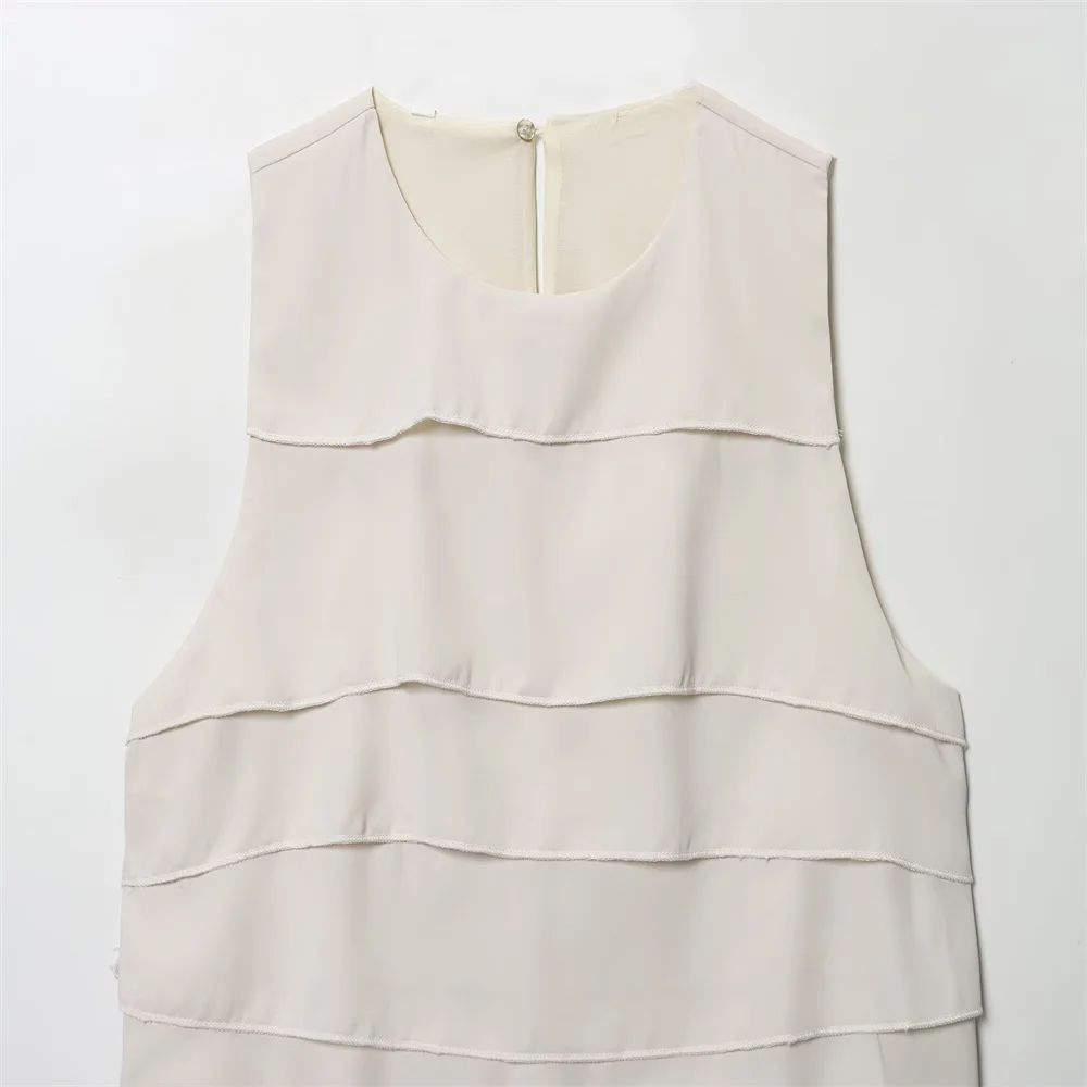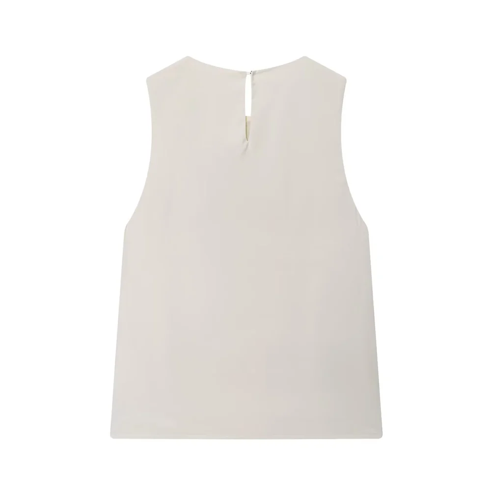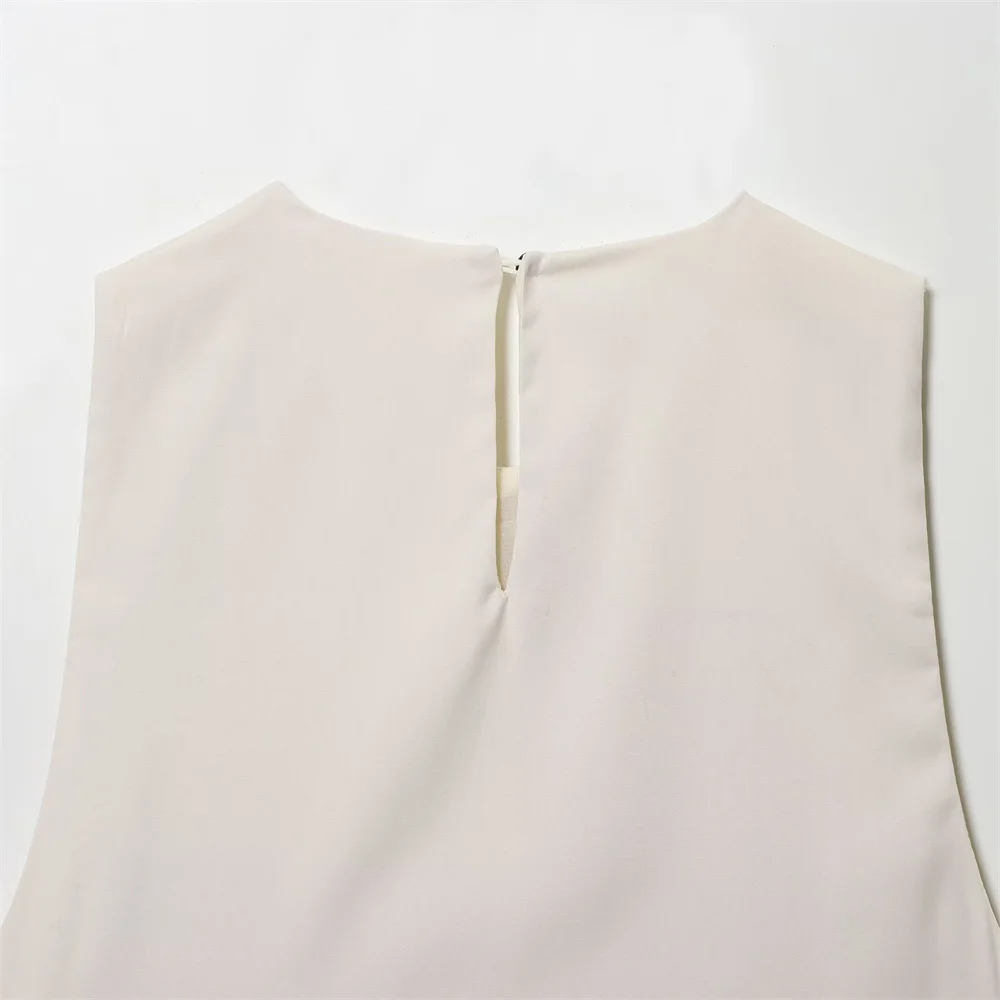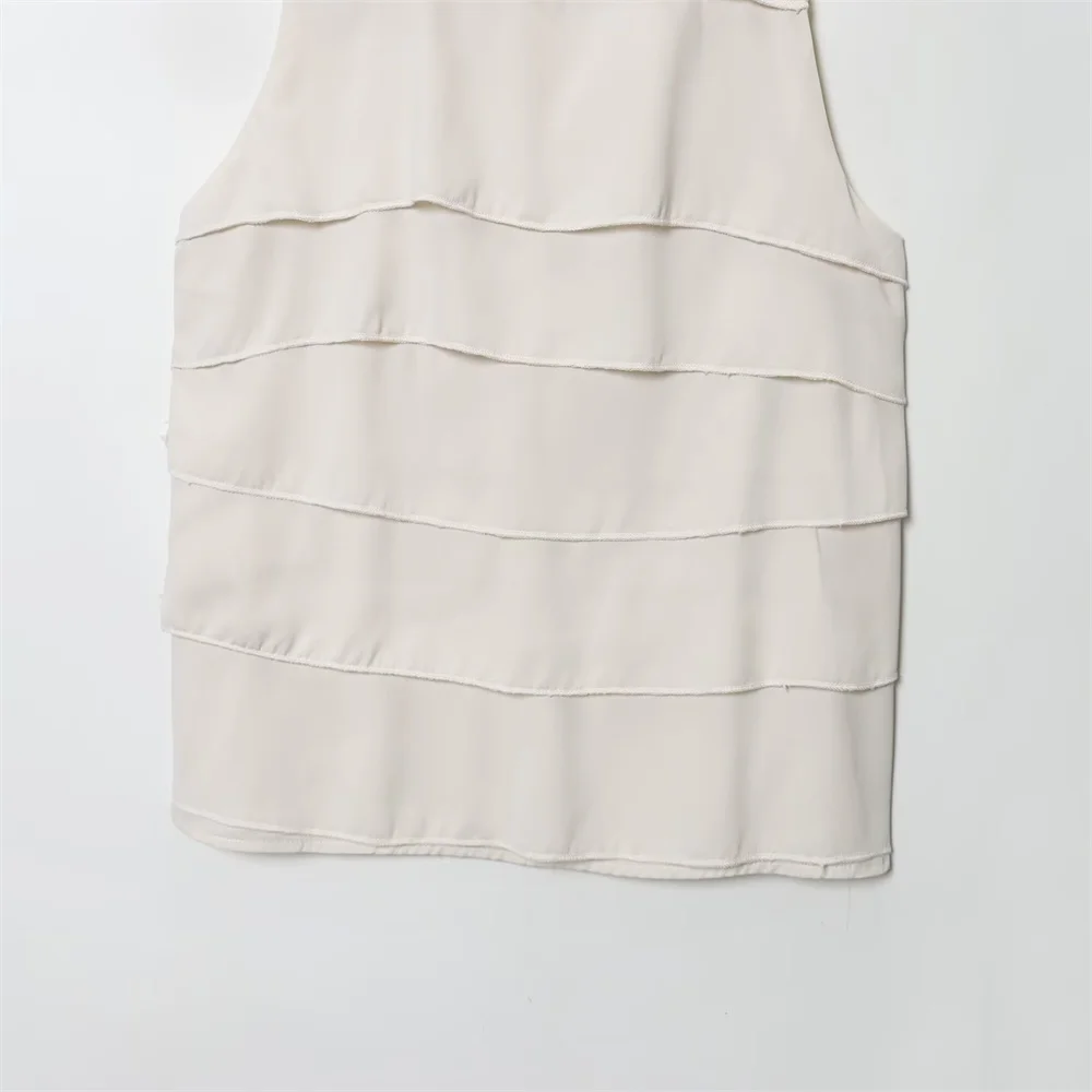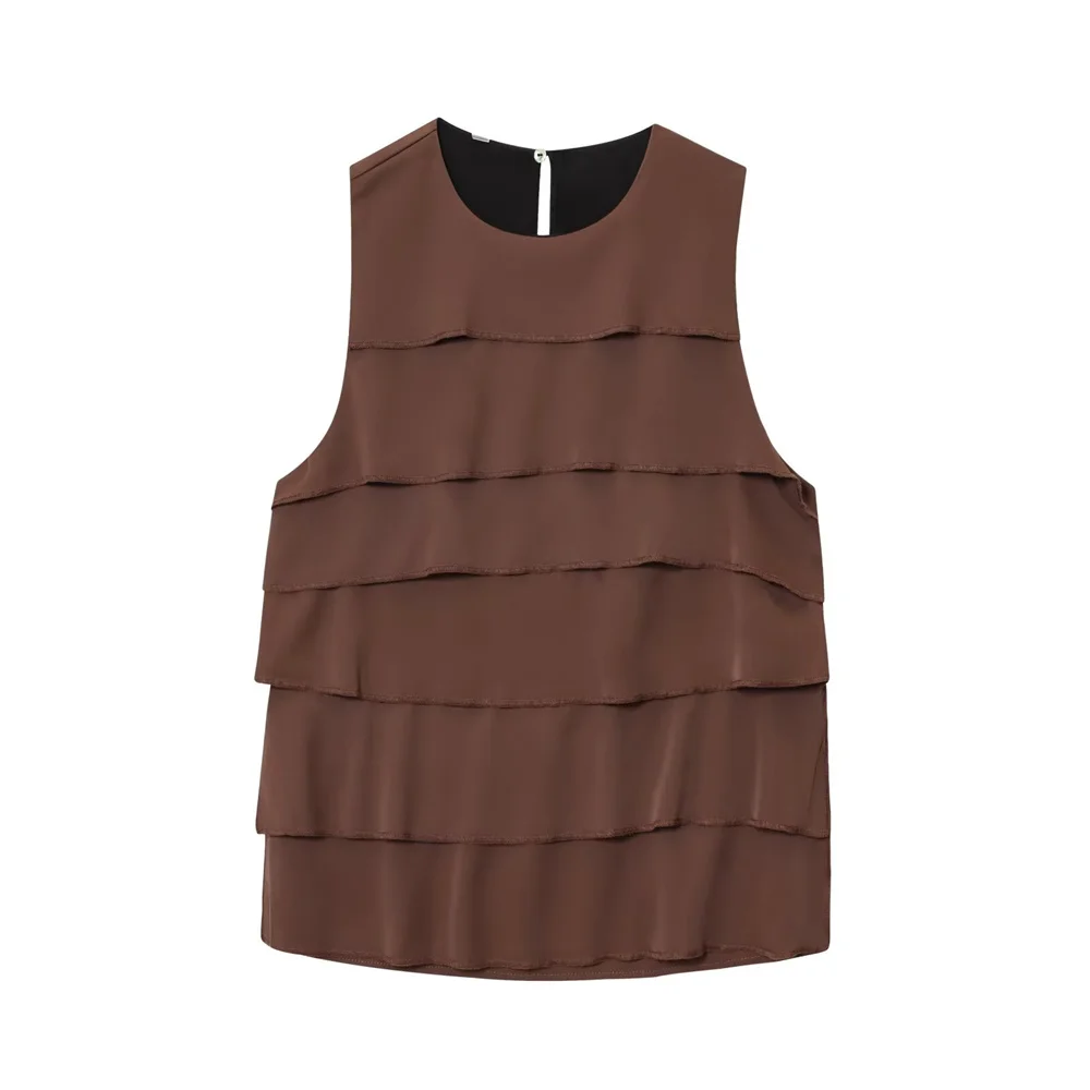 Autumn French Minimalist Sleeveless Satin Ruffle Top