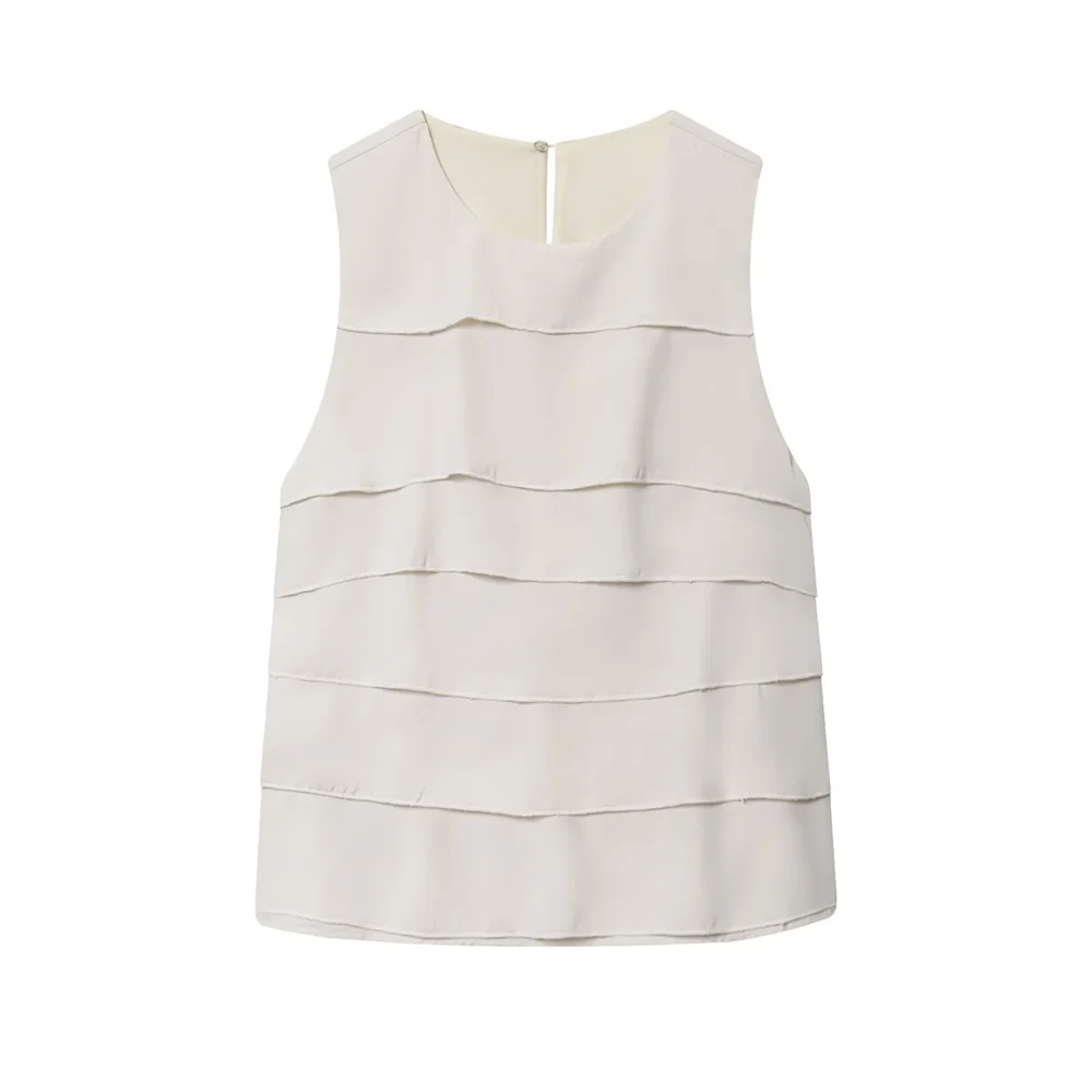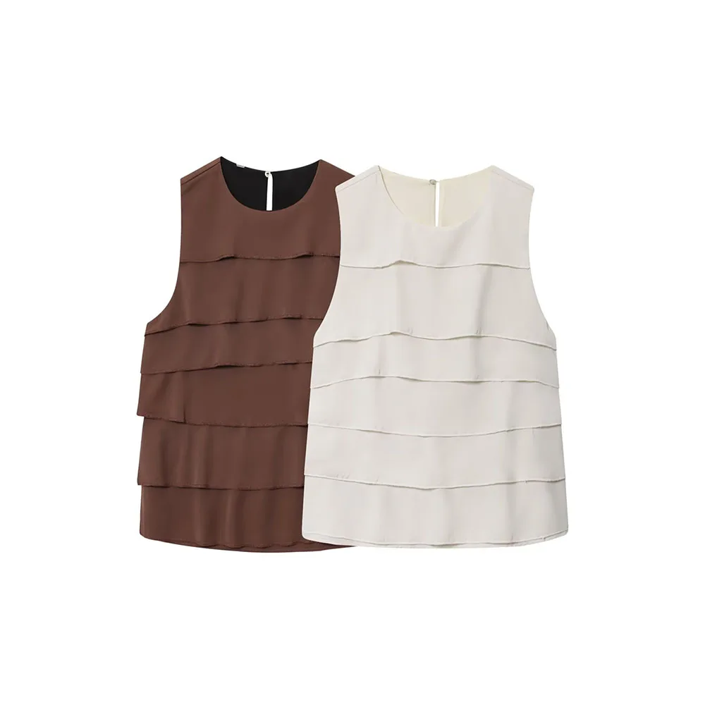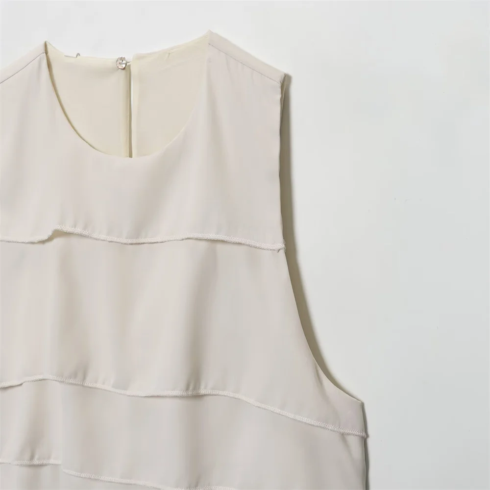Autumn French Minimalist Sleeveless Satin Ruffle Top