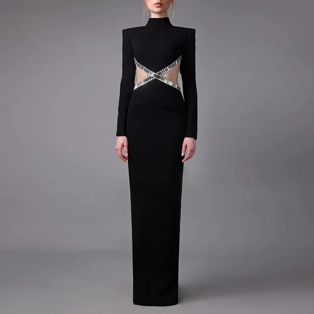 Autumn Hollow Out Rhinestone Slim Fit Dress