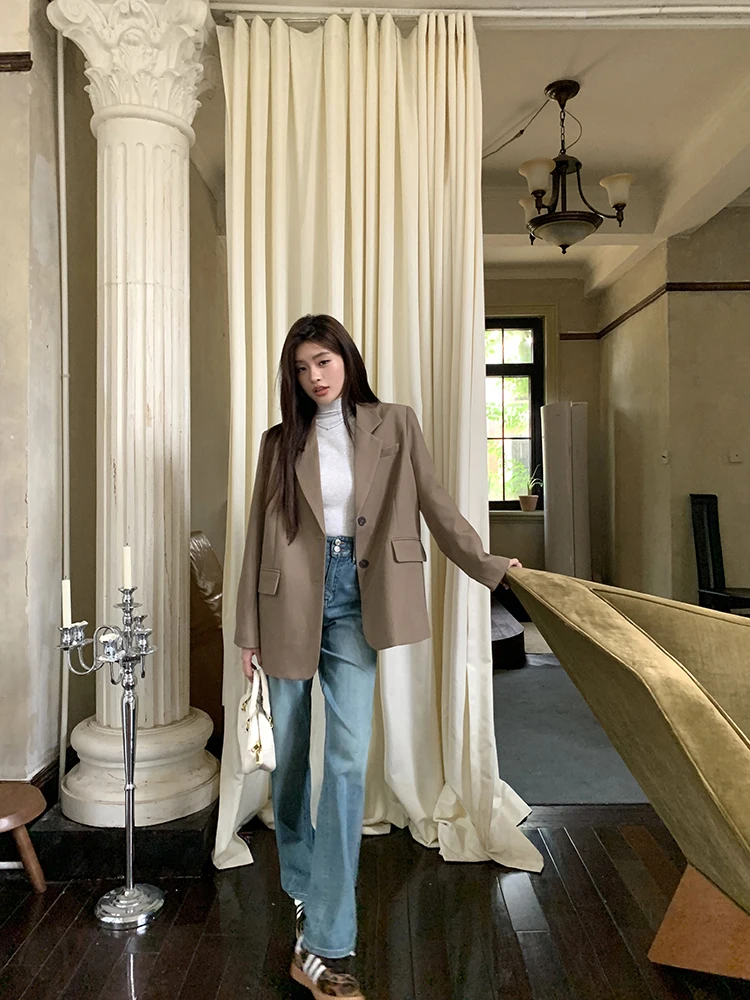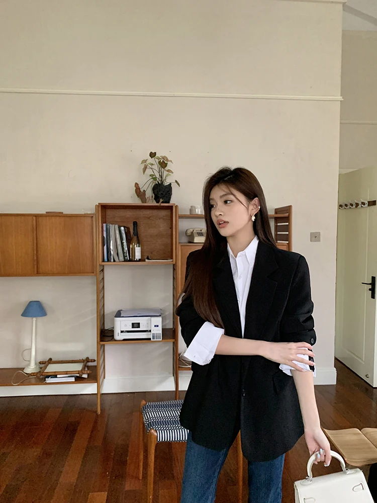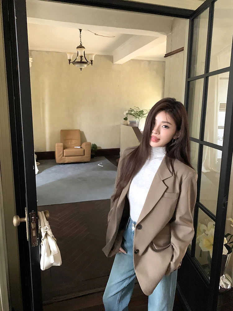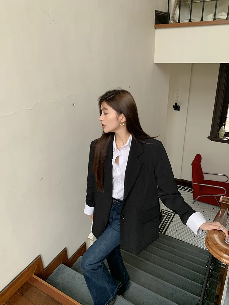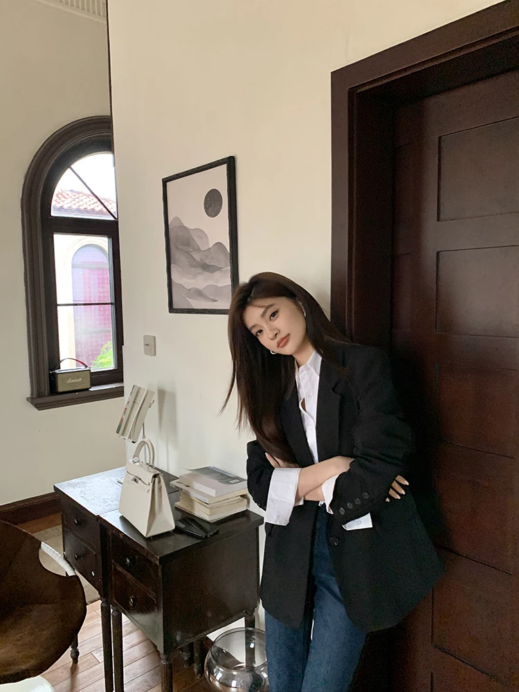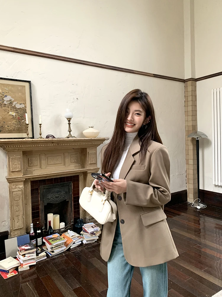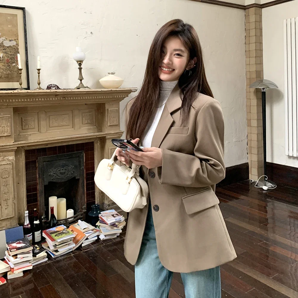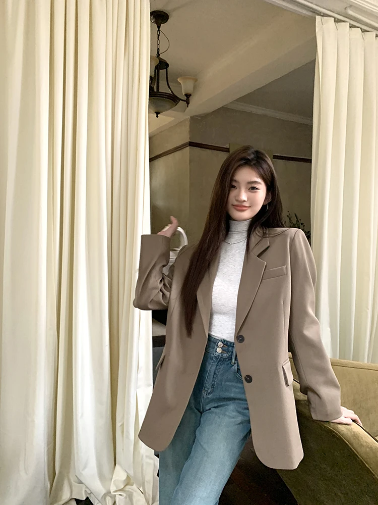 Autumn Korean Style Elegant Long Sleeve Blazer Coat for Women