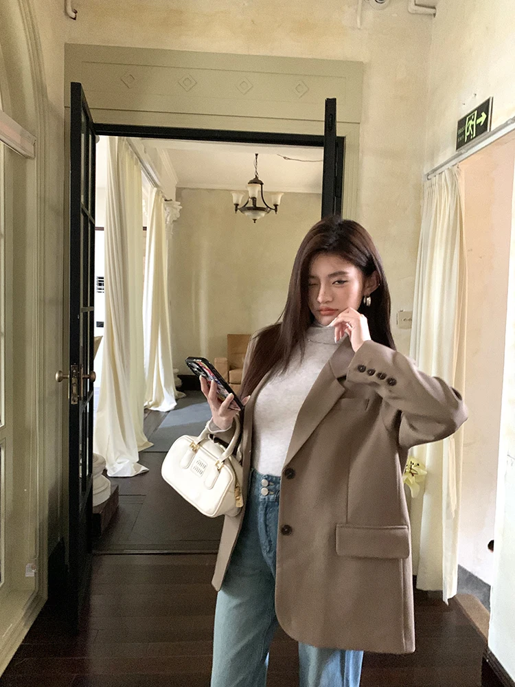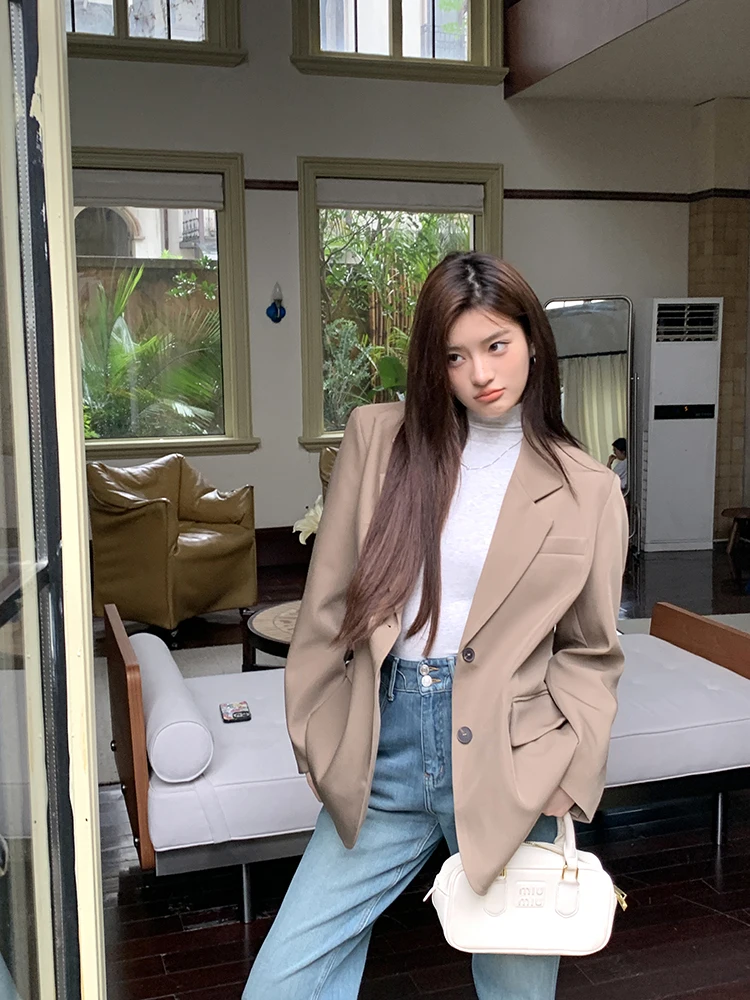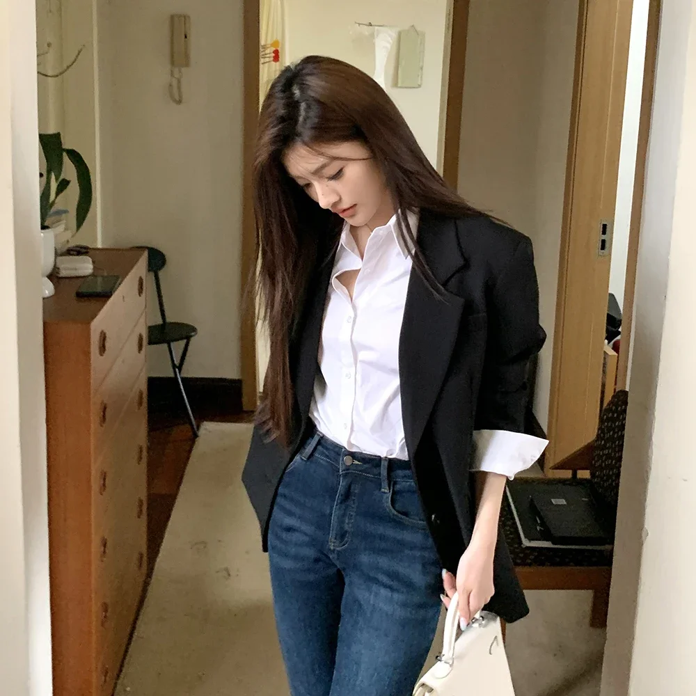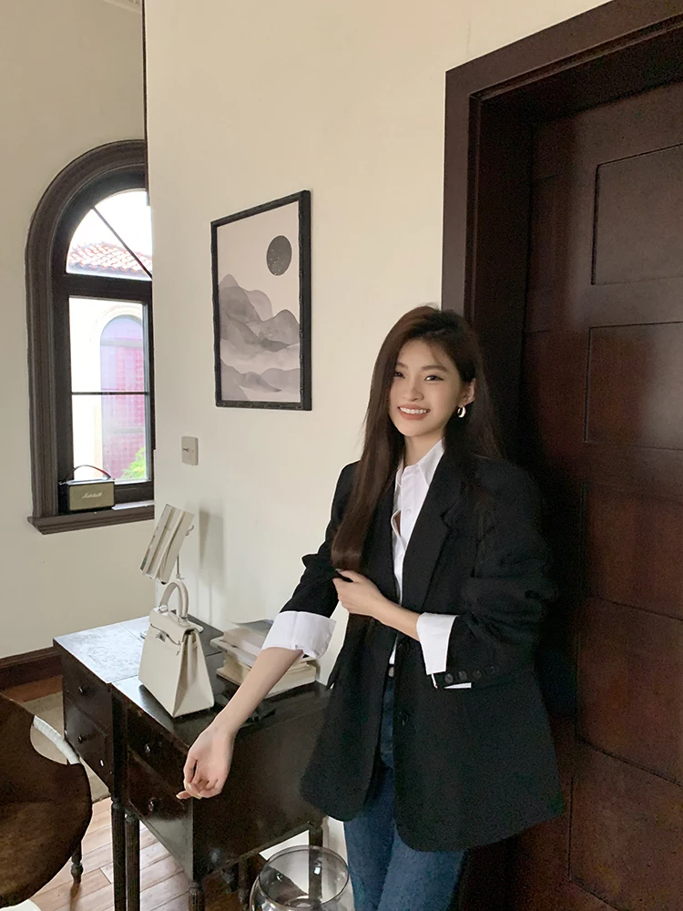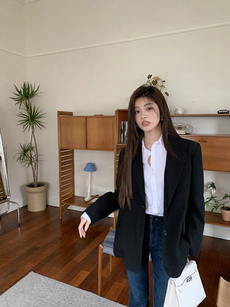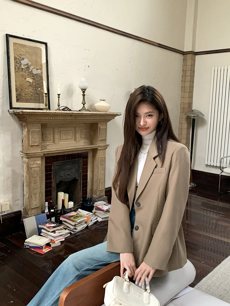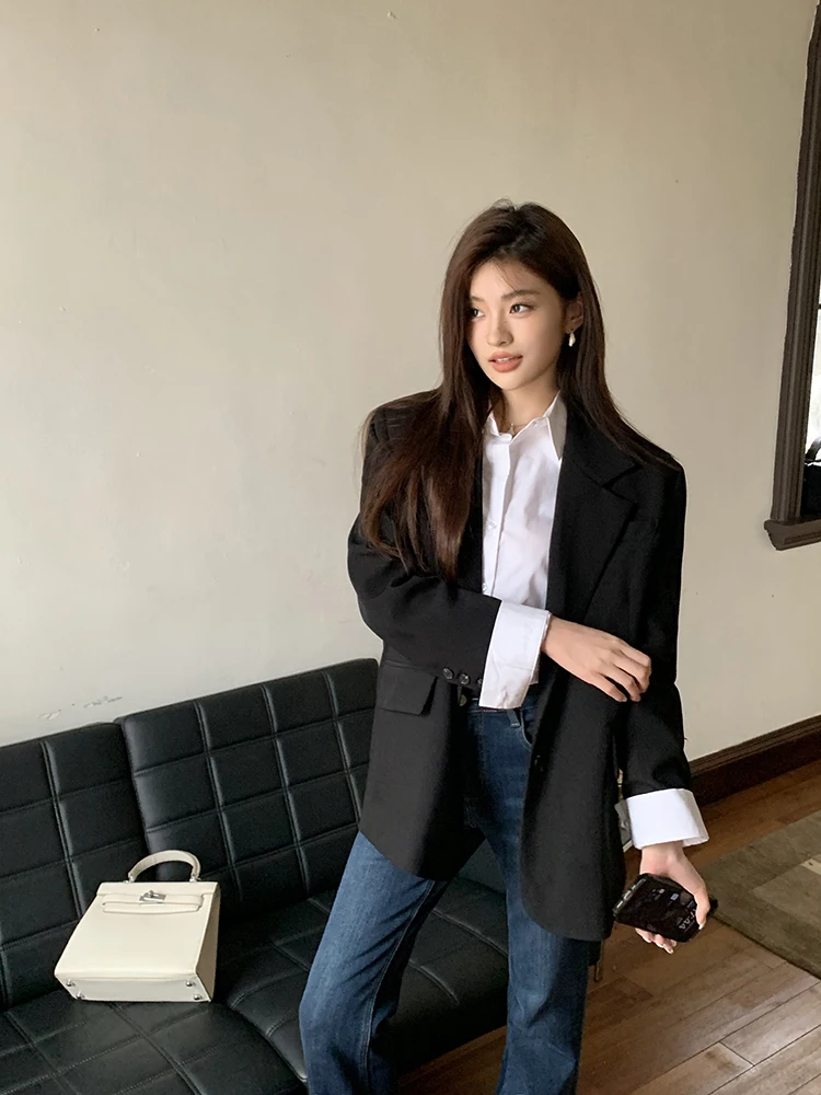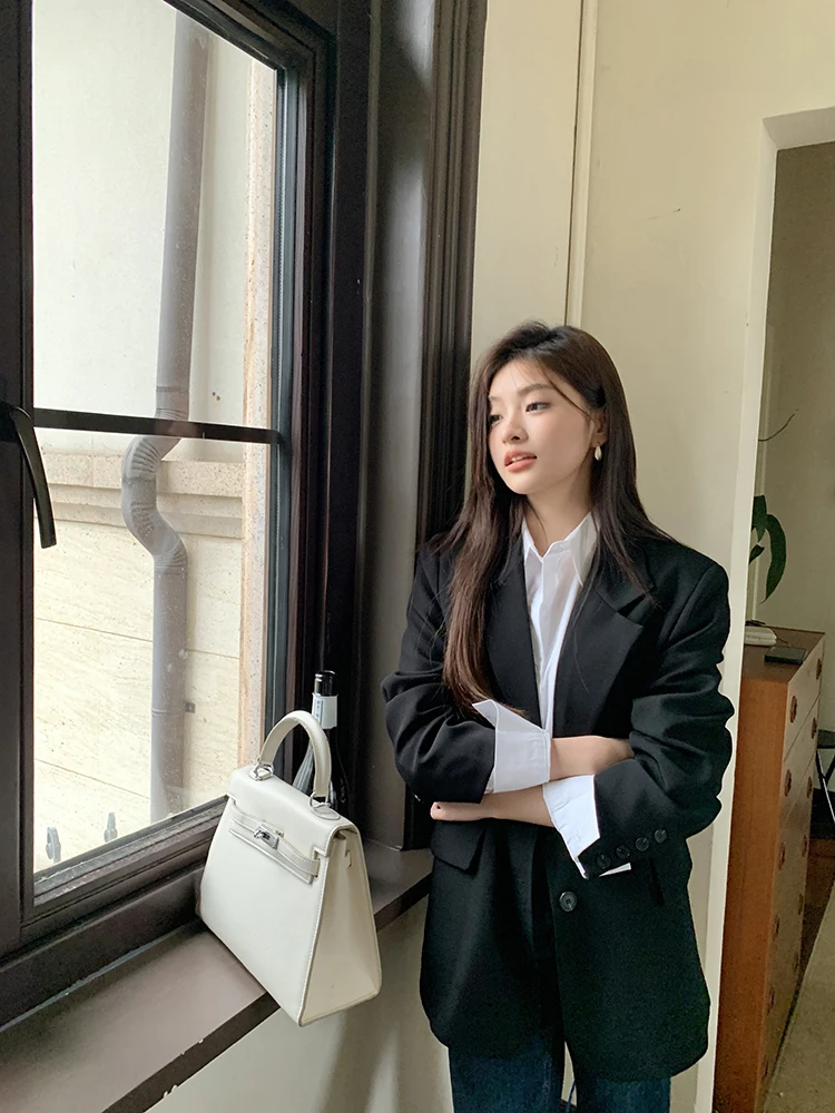 Autumn Korean Style Elegant Long Sleeve Blazer Coat for Women