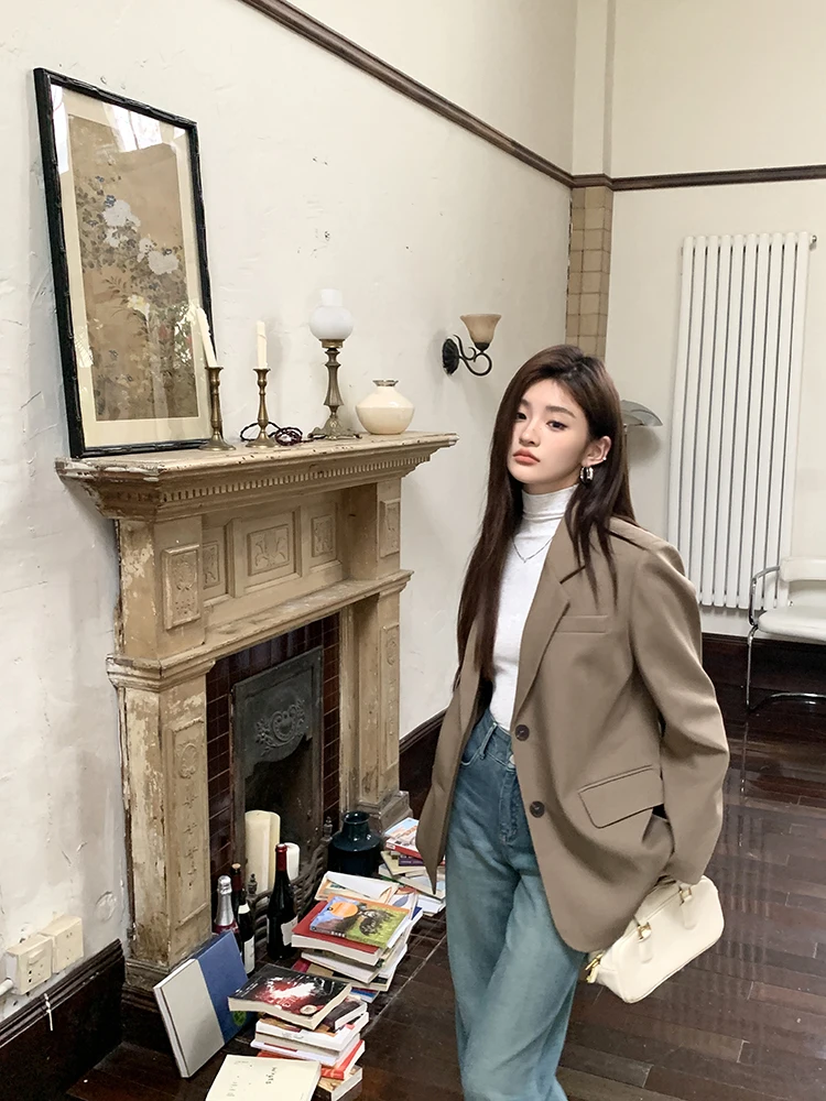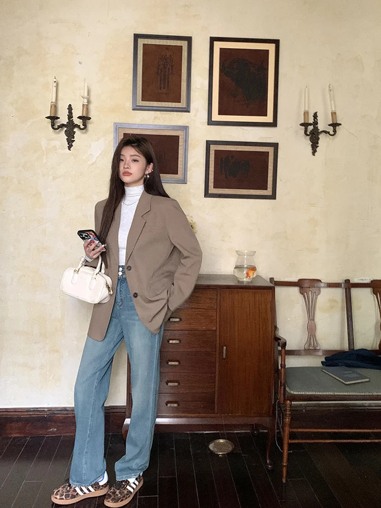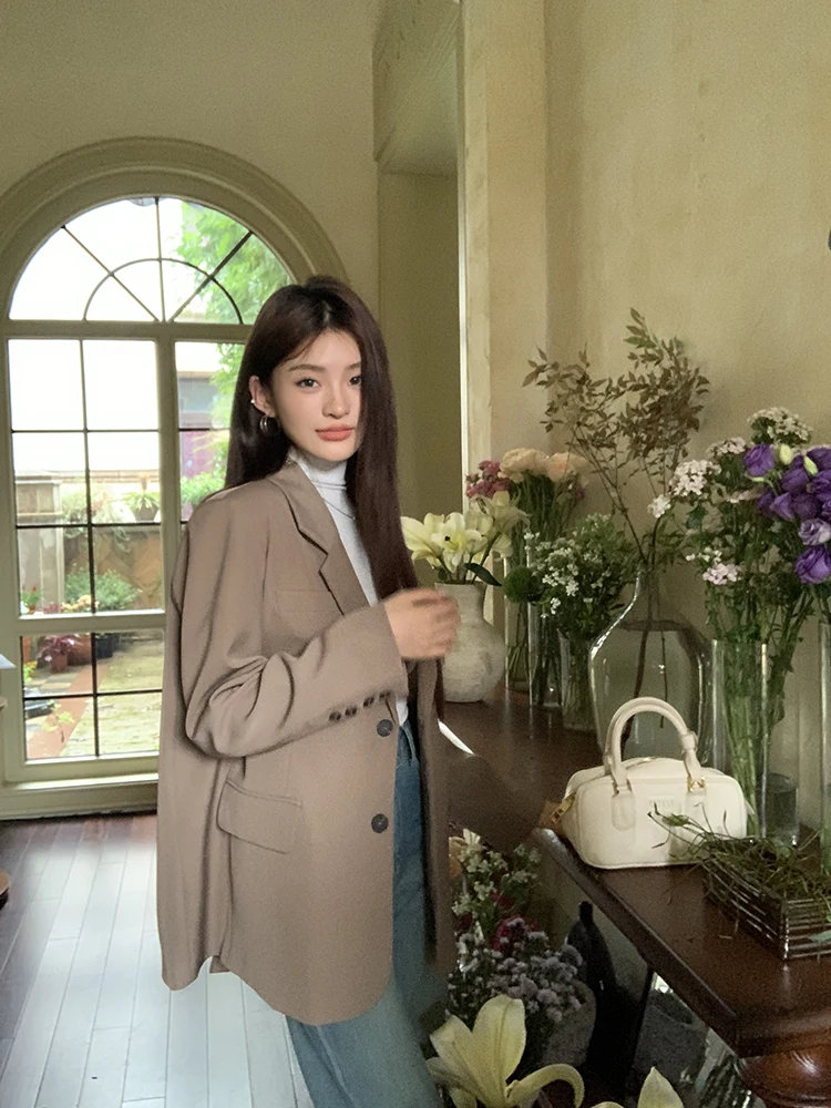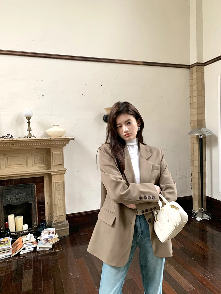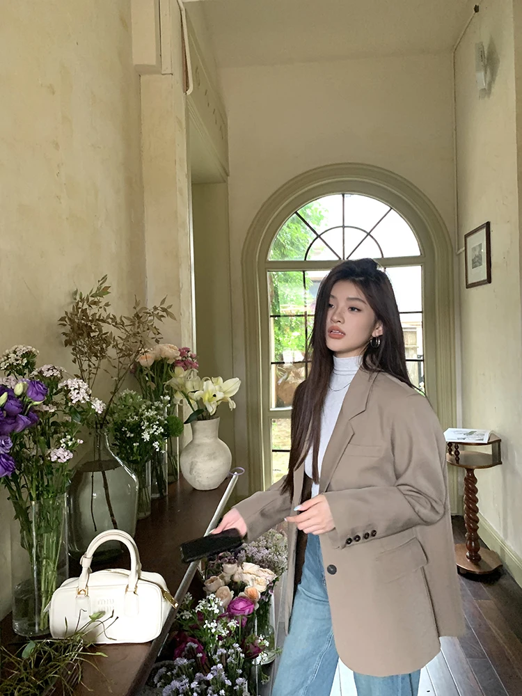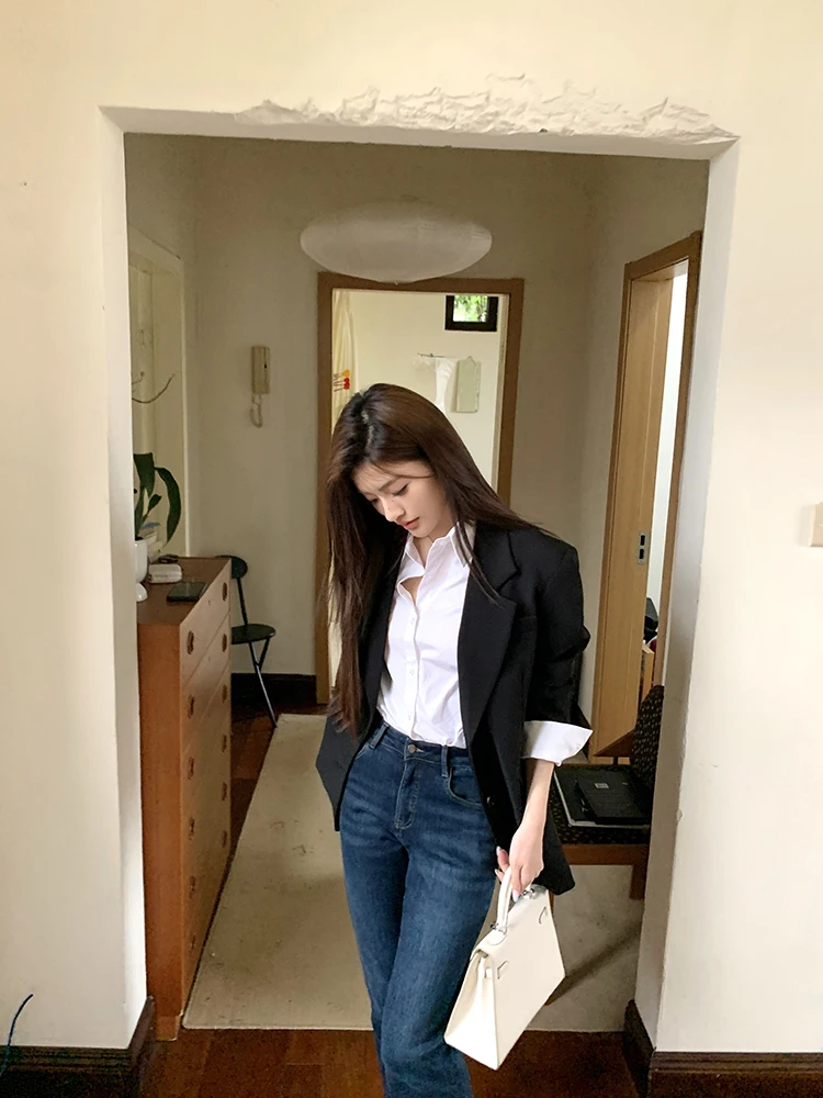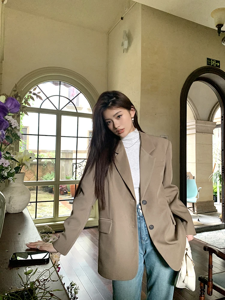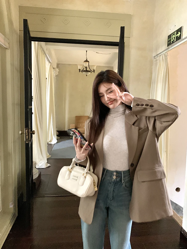 Autumn Korean Style Elegant Long Sleeve Blazer Coat for Women