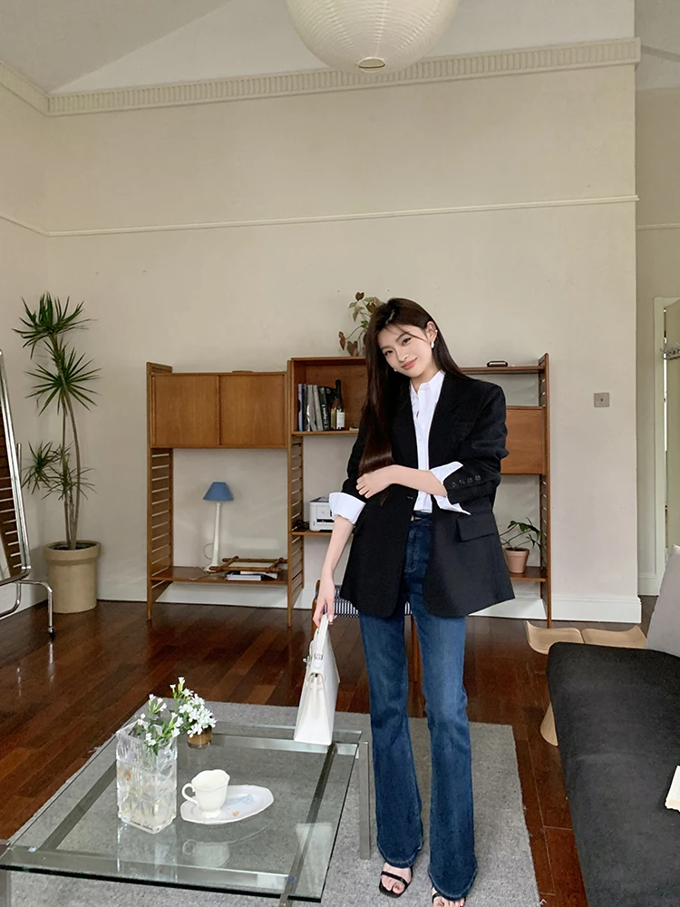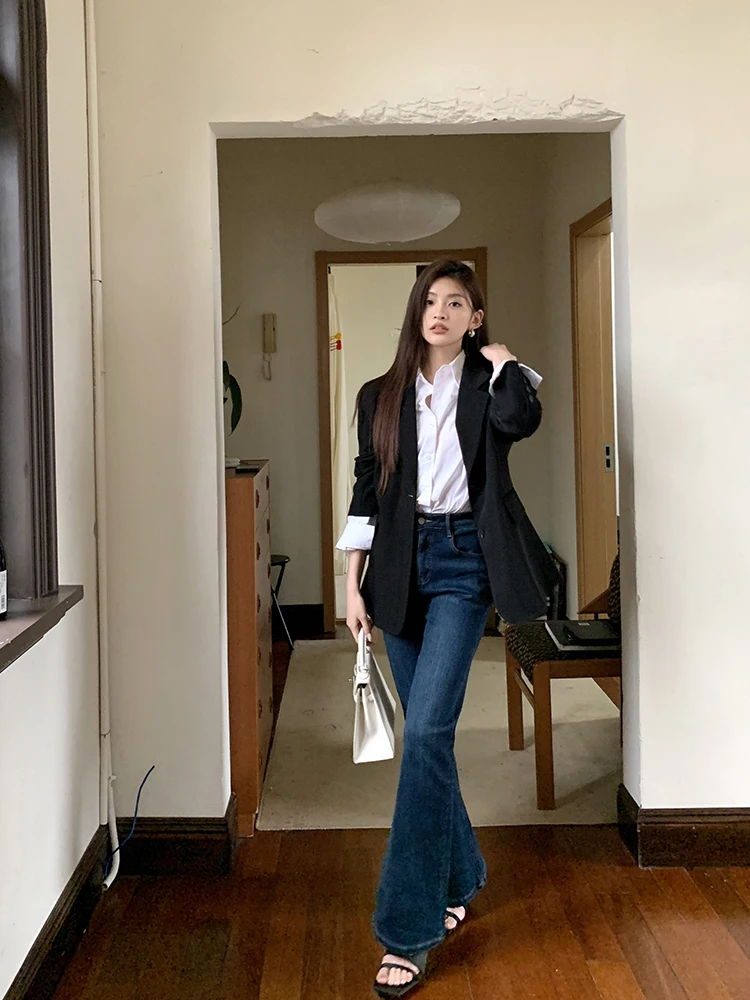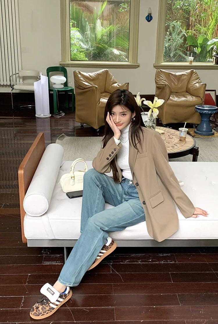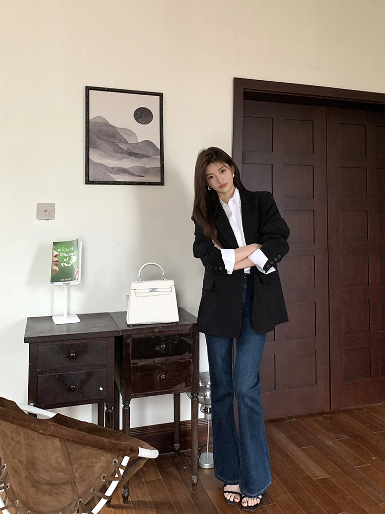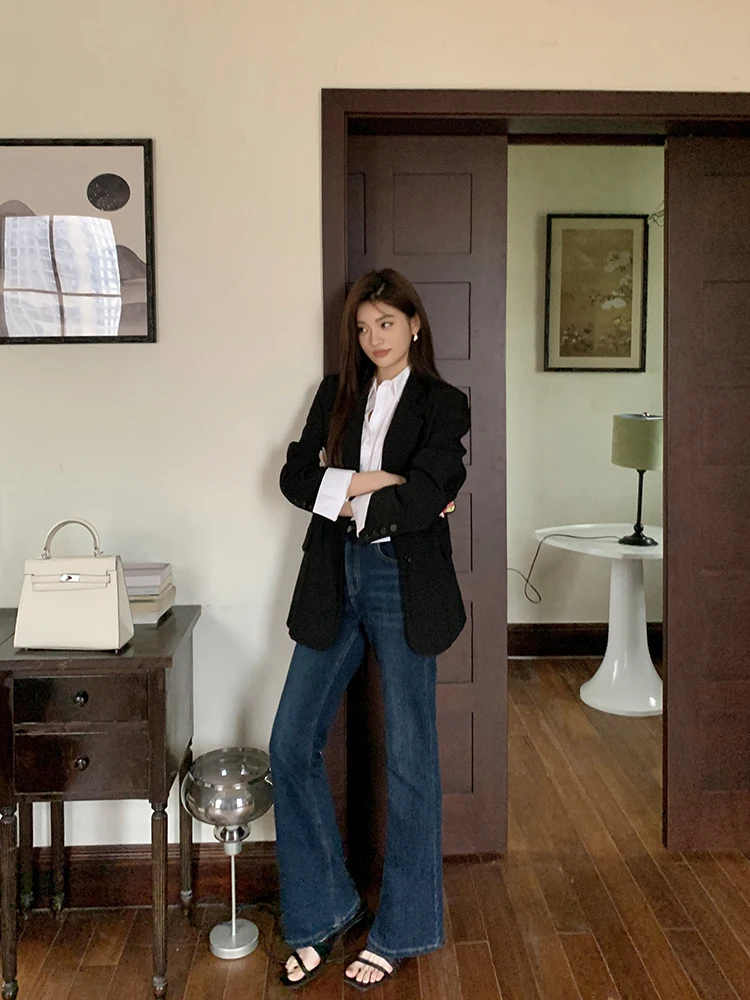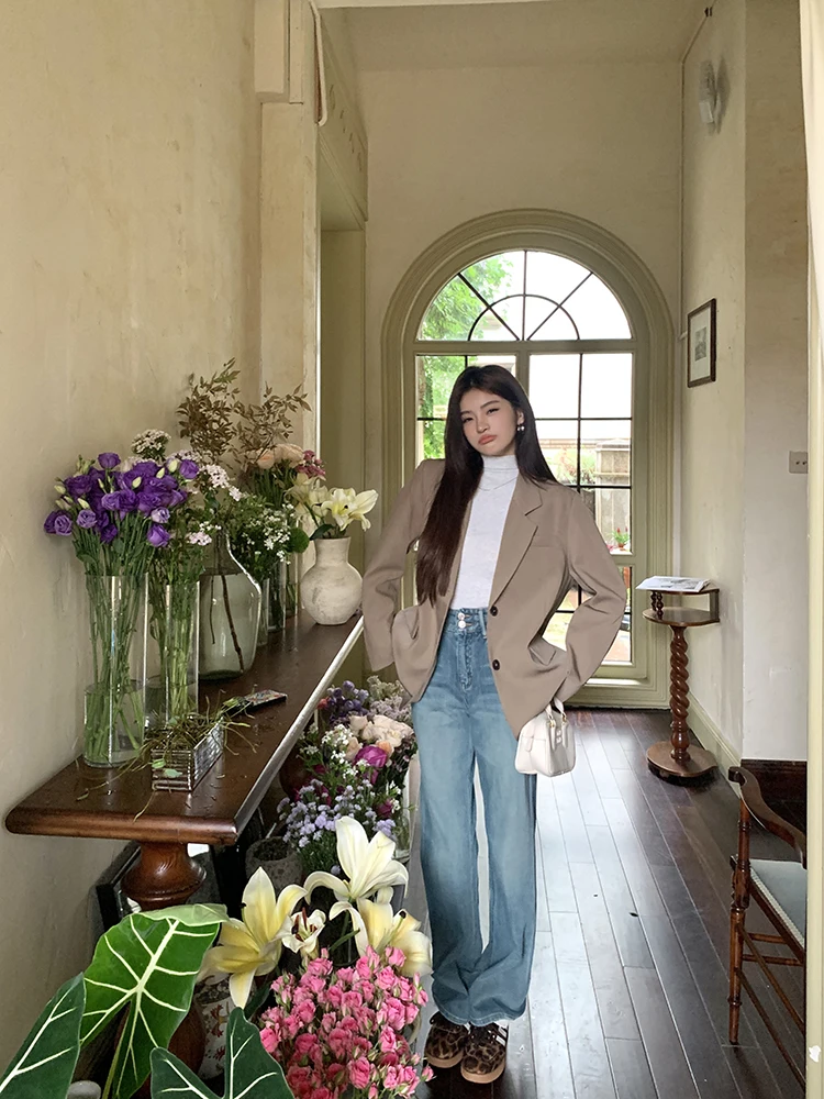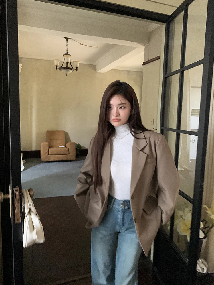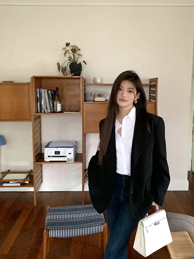 Autumn Korean Style Elegant Long Sleeve Blazer Coat for Women