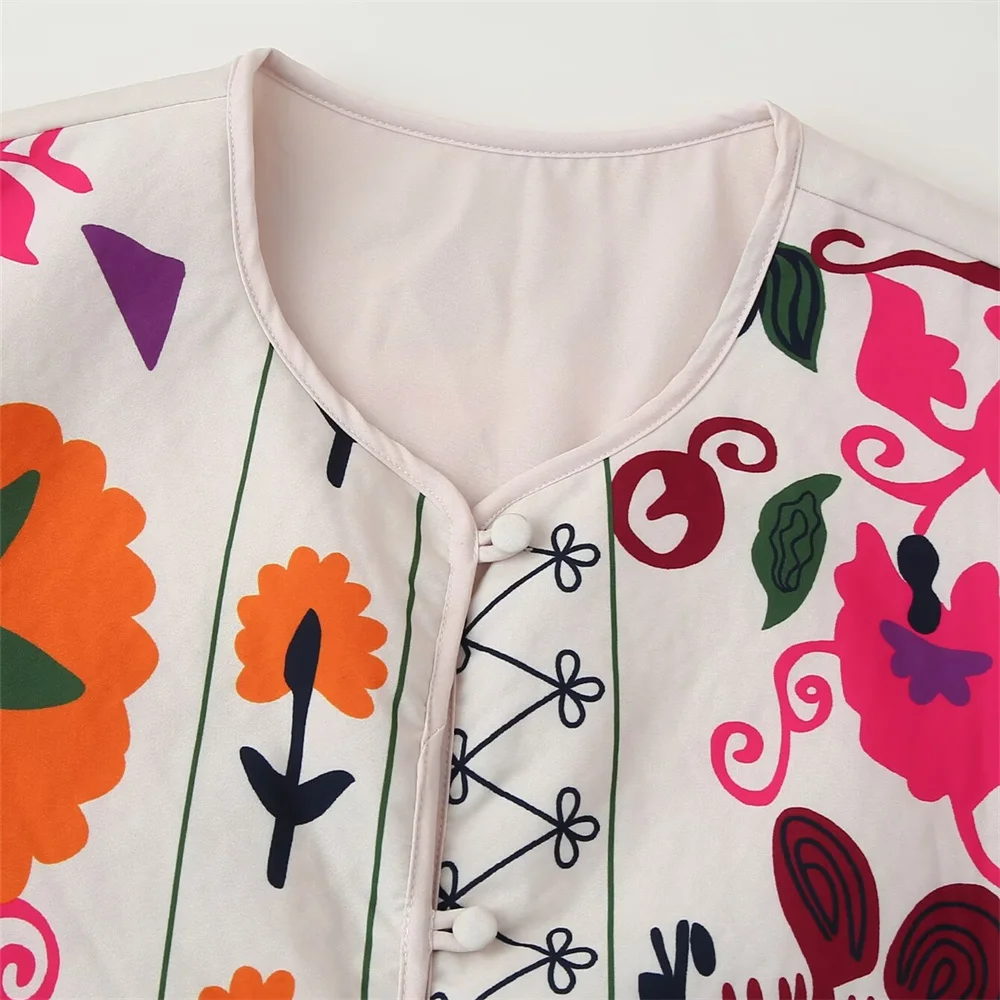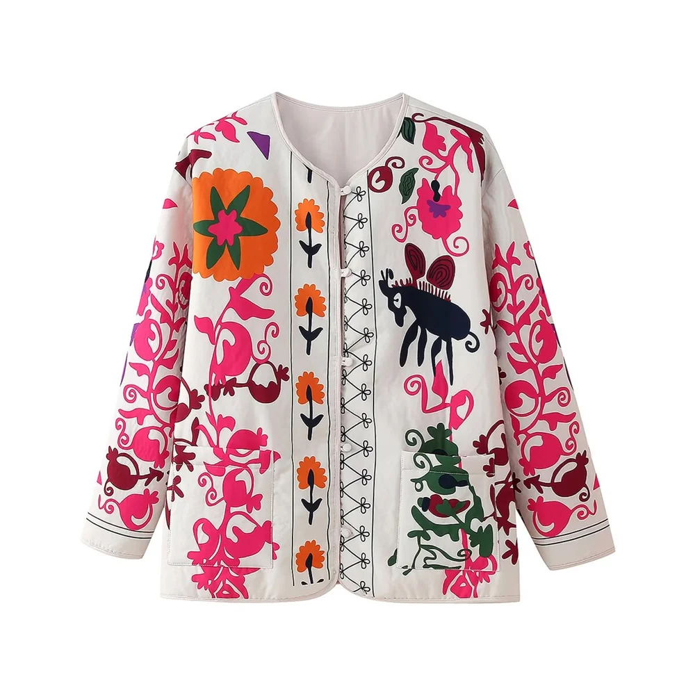 Autumn Printed Cotton Loose Pocket Jacket