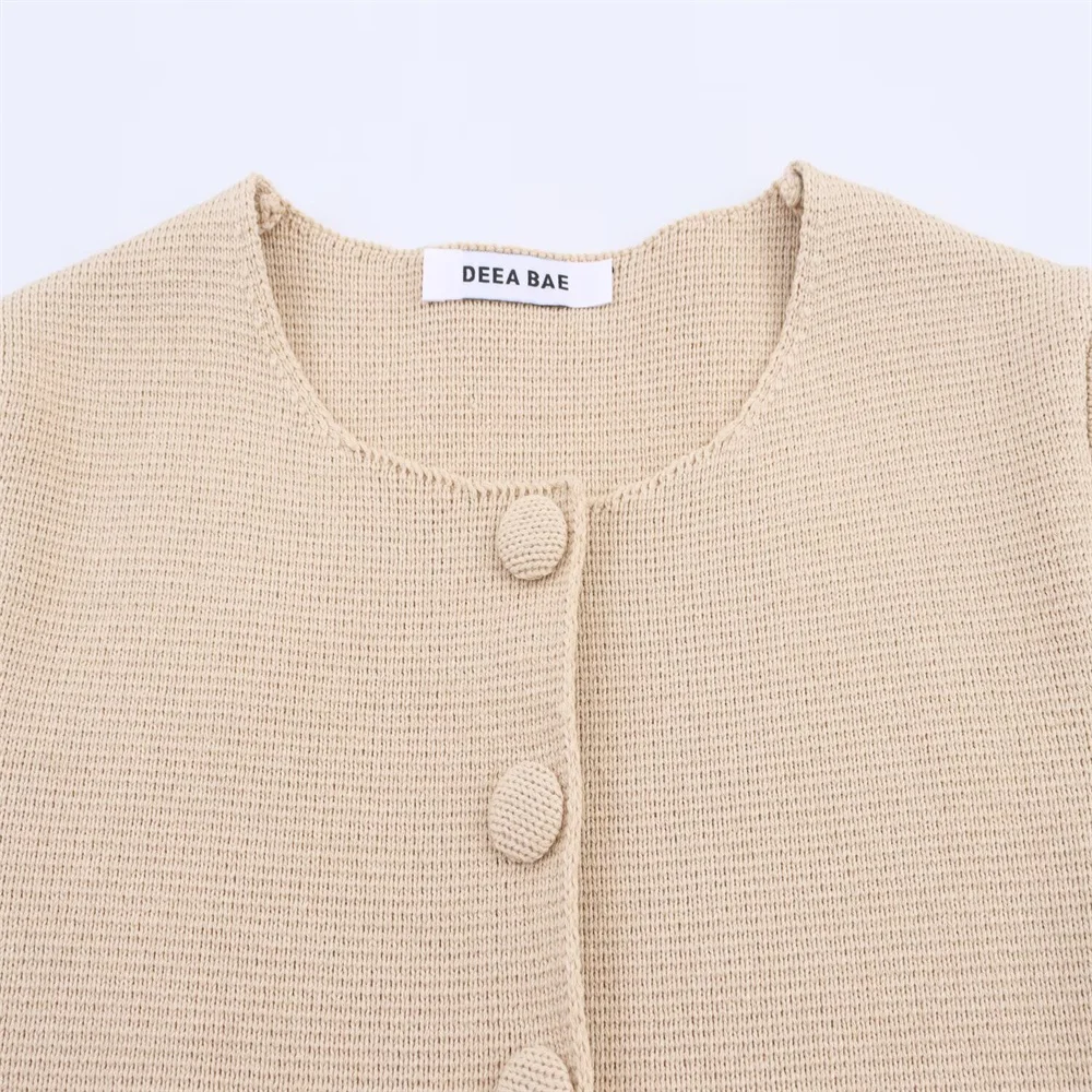 Autumn Round Neck Button Knit Jacket & Skirt Set