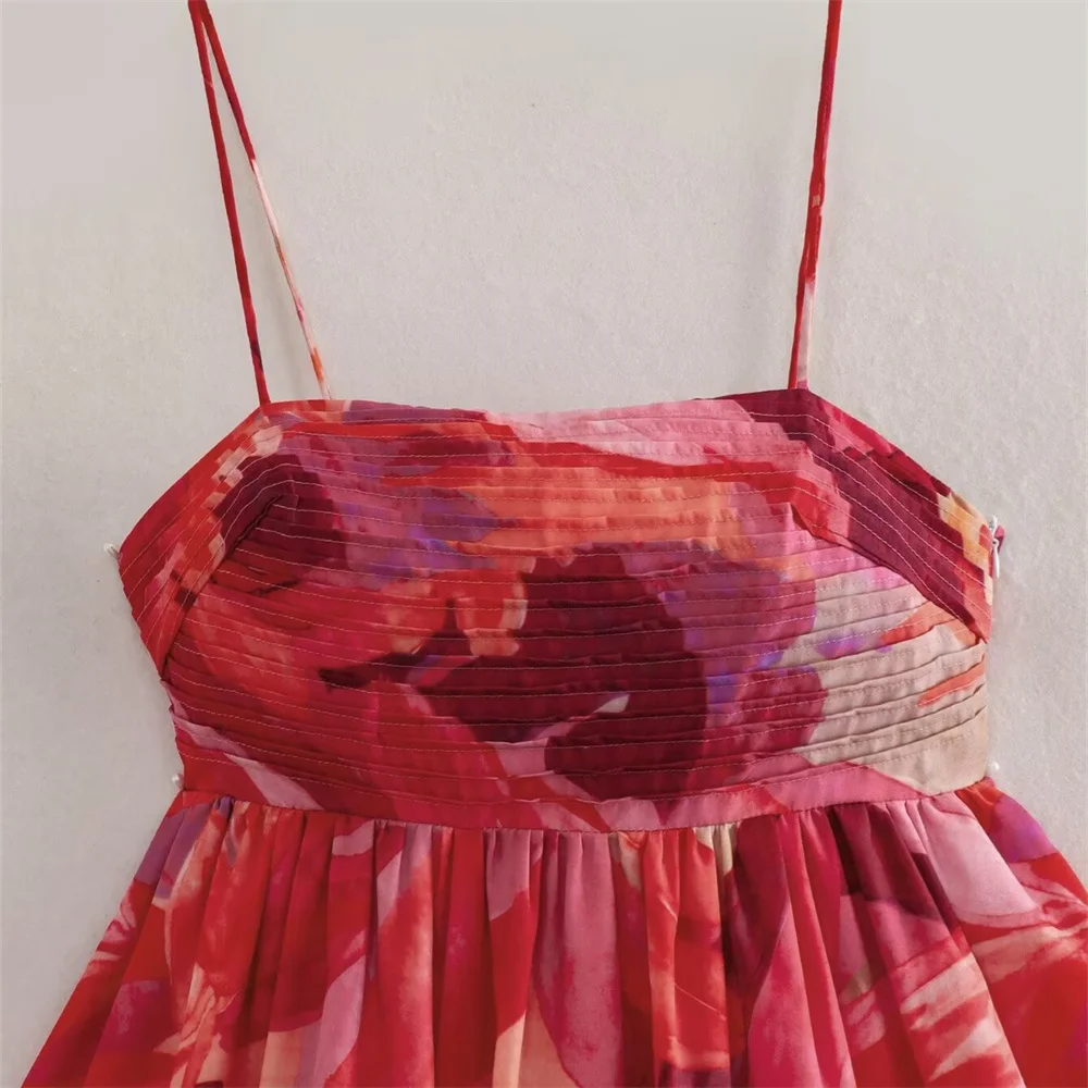 Autumn Small-Pleat Floral Camisole Skirt