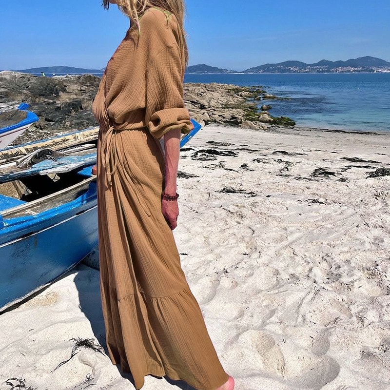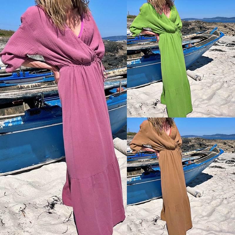 Autumn V Neck Long Sleeve Waist Midi Dress