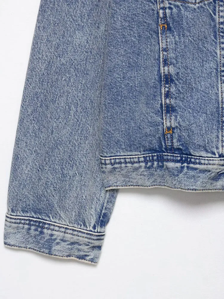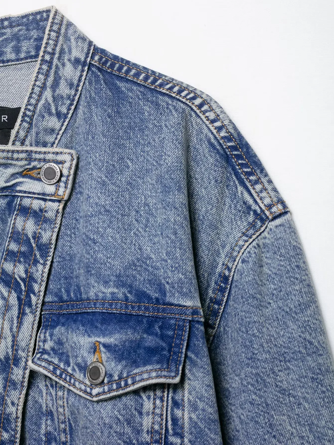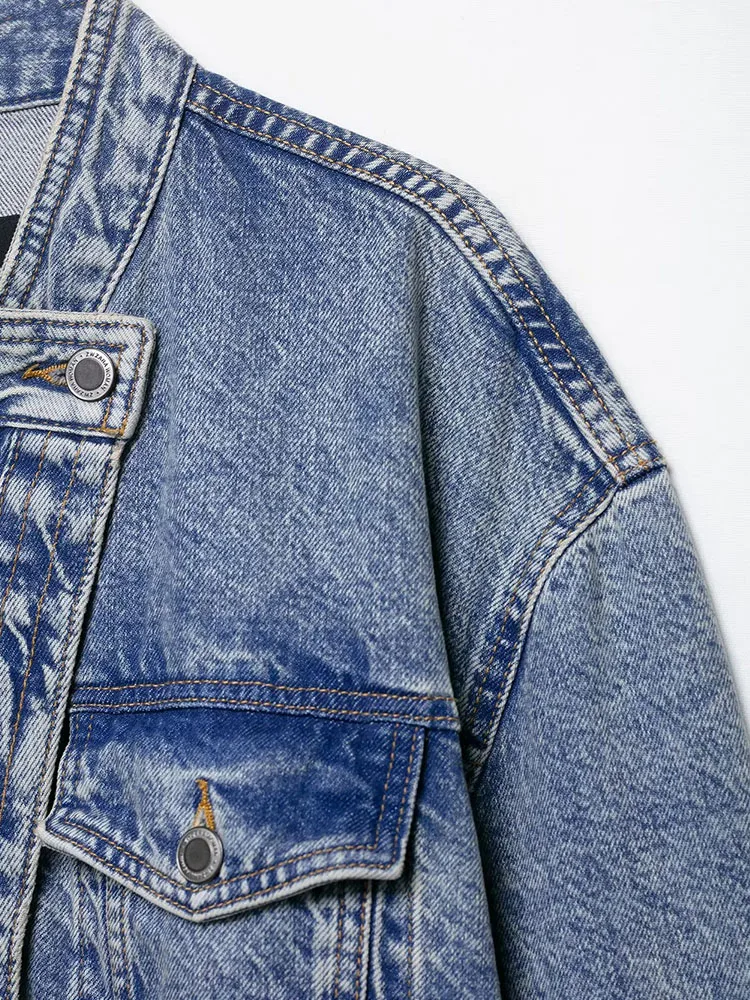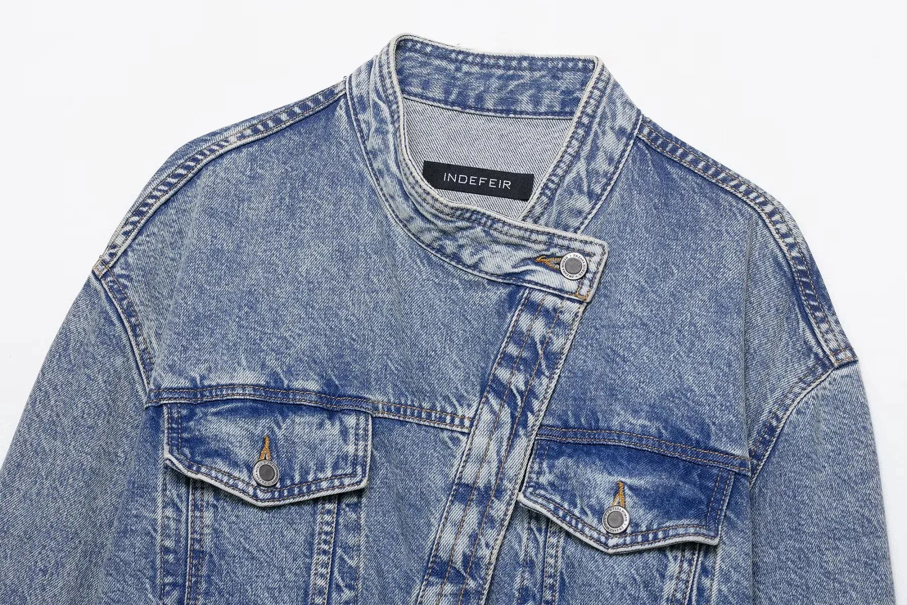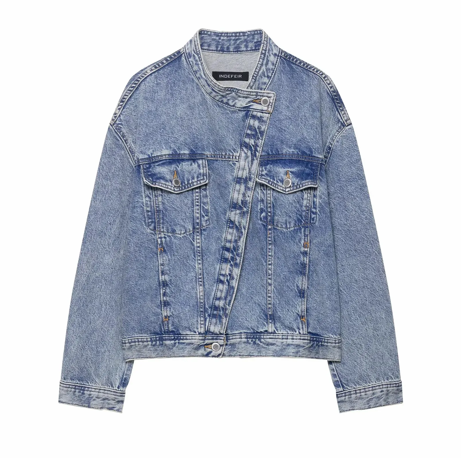 Autumn Vintage Denim Jacket Round Neck Button Up Loose Fit Streetwear