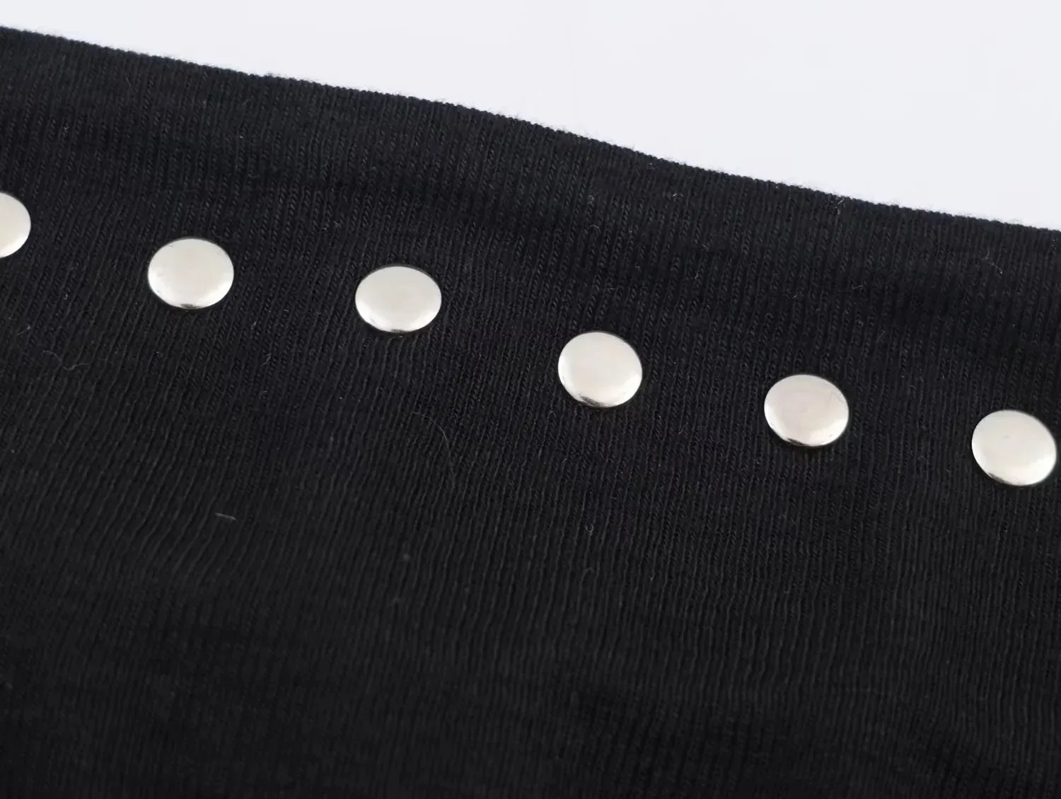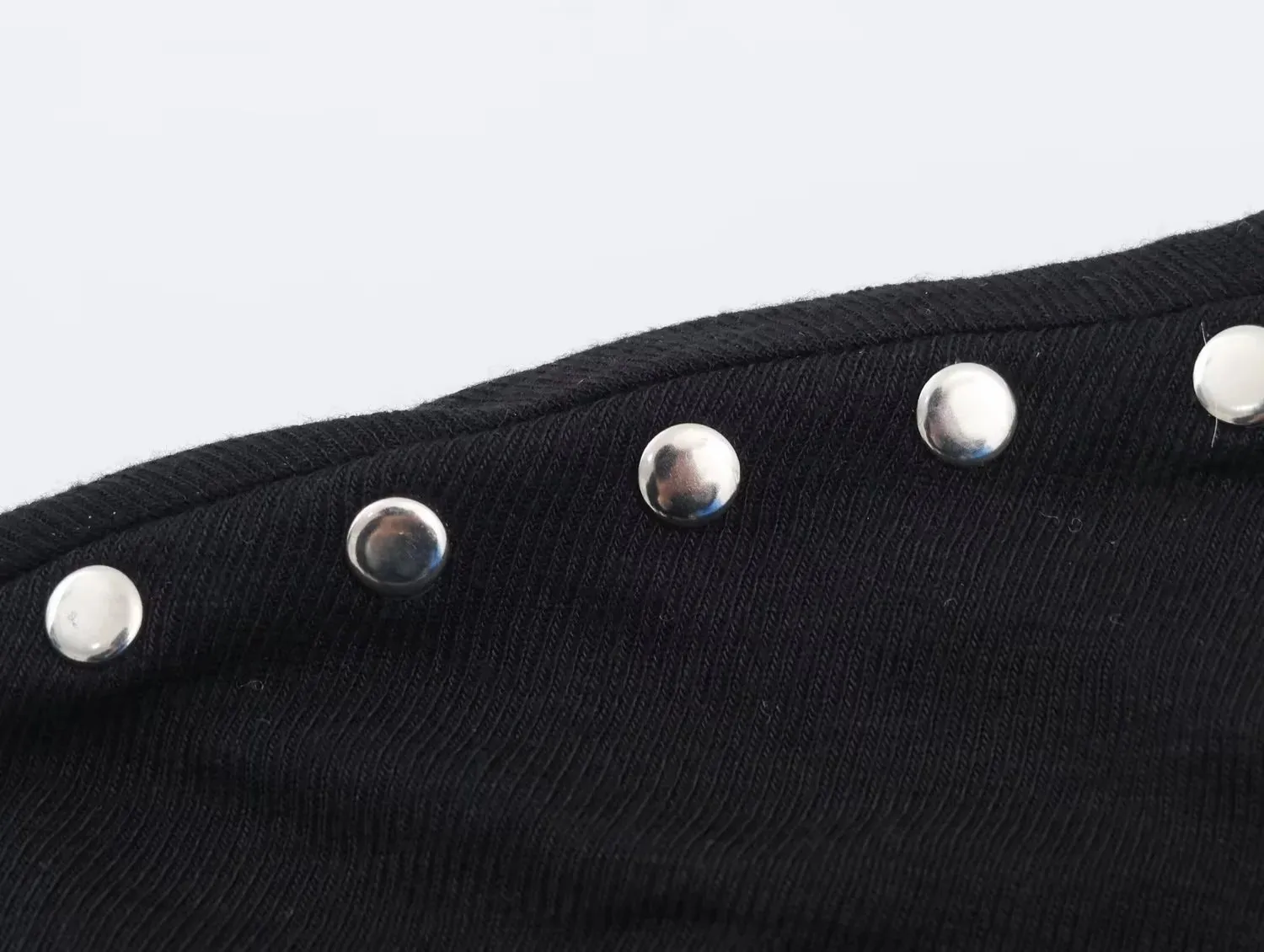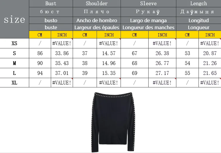 Autumn Winter Black Off Shoulder Rivet T Shirt for Women