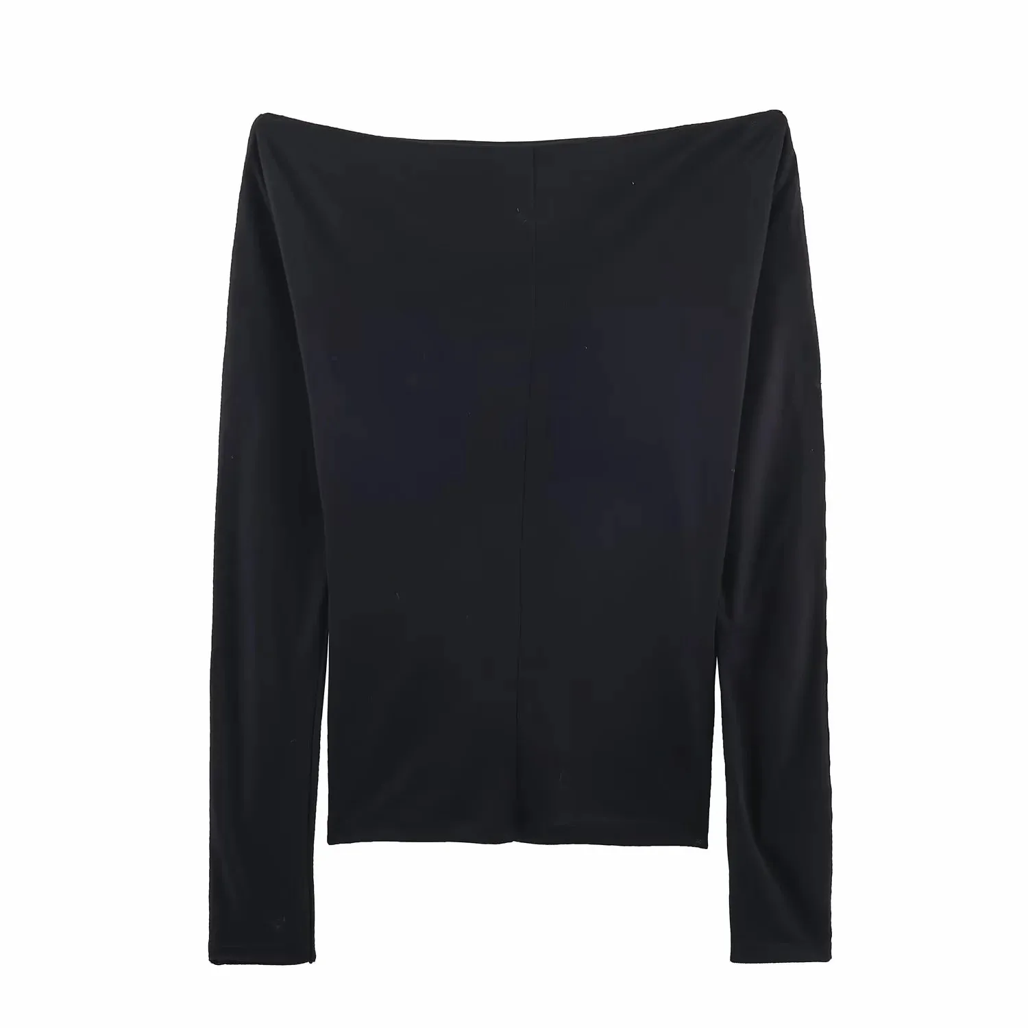 Be the first to review “Autumn Winter Black Off Shoulder Rivet T Shirt for Women”