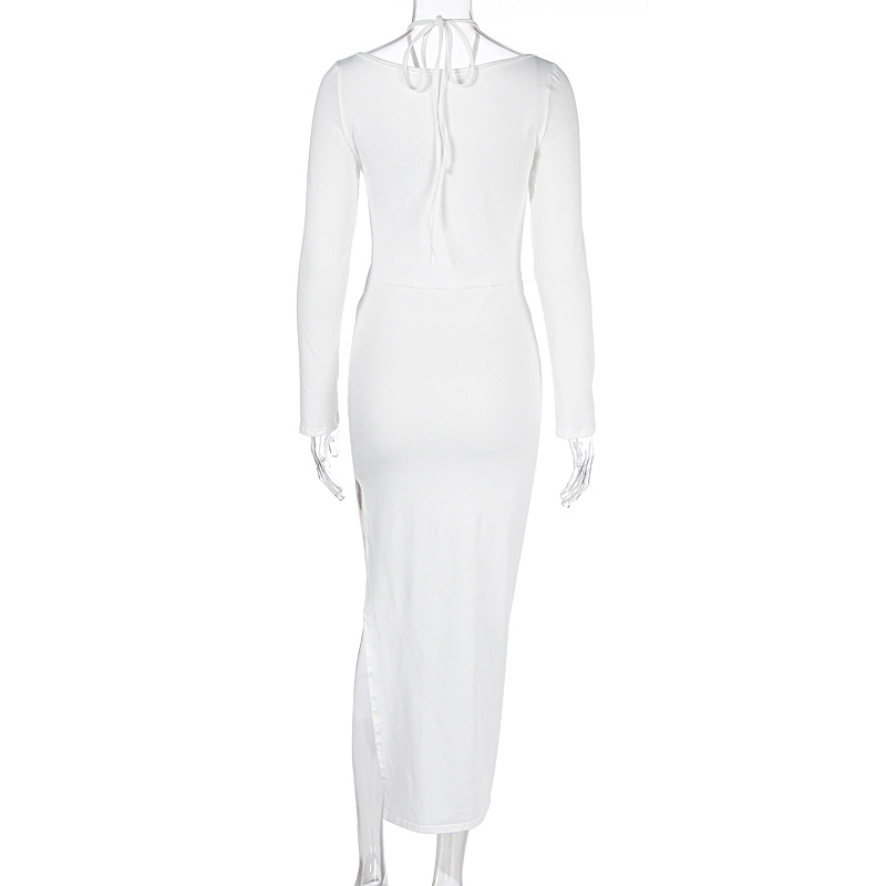 Autumn Winter Cutout Halter Neck Slim Fit Dress