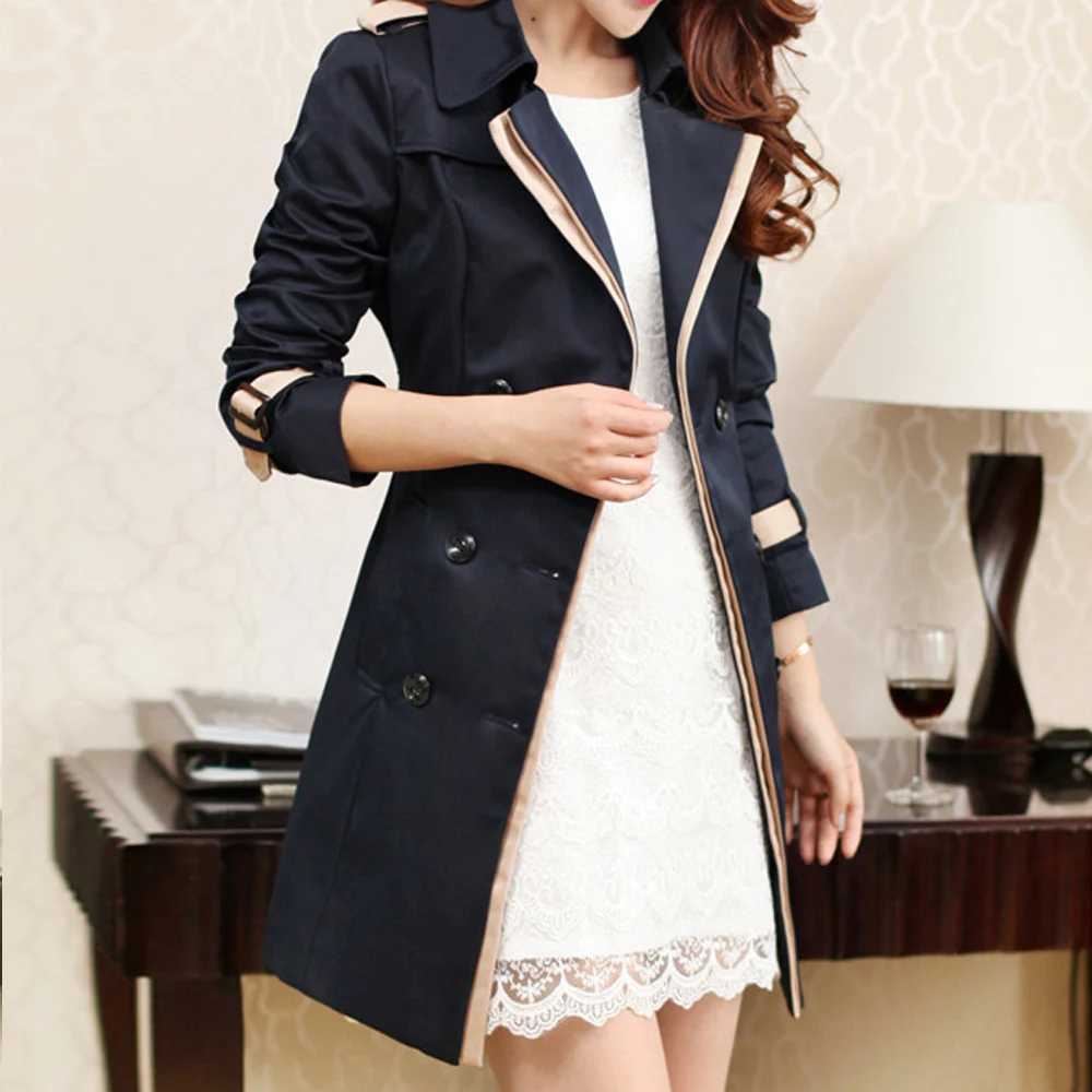 Autumn Winter Double-Breasted Long Trench Coat for Women
