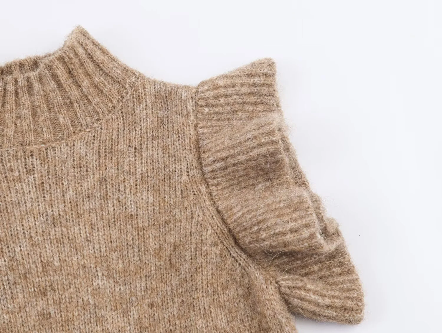 2025 Winter Casual High Neck Wide Sleeve Knit Top
