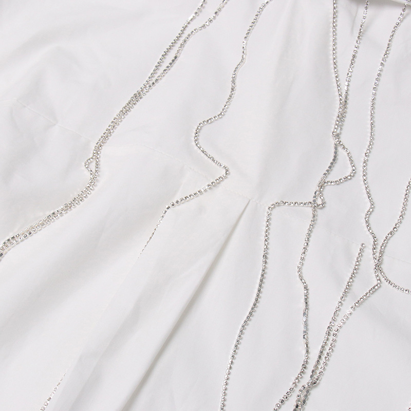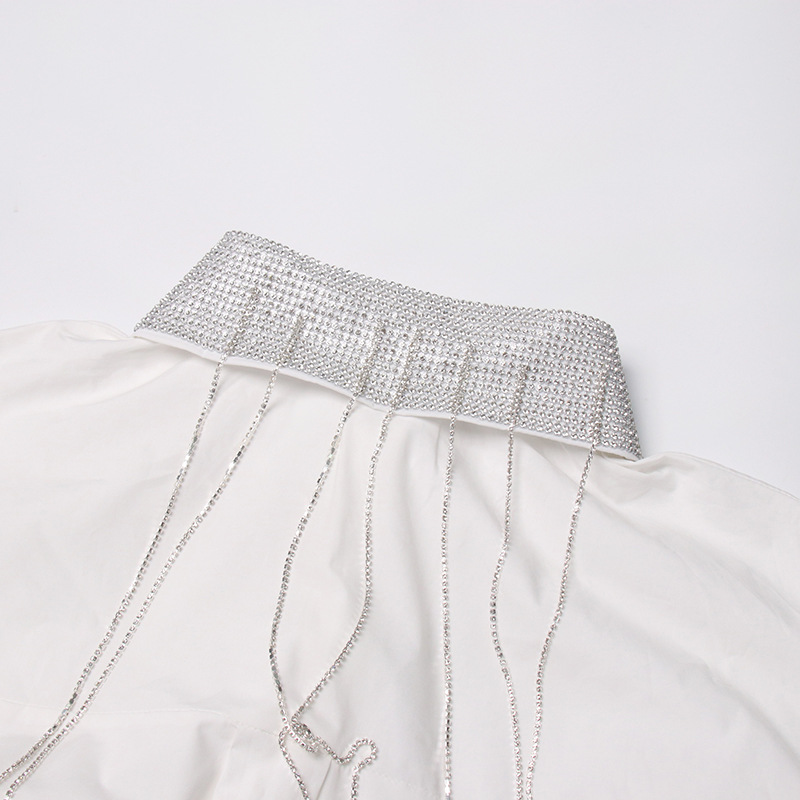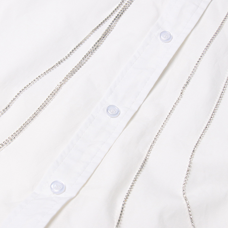 Autumn Winter Korean Collared Casual Diamond Tassel Stitching Loose Single Breasted Stylish Shirt