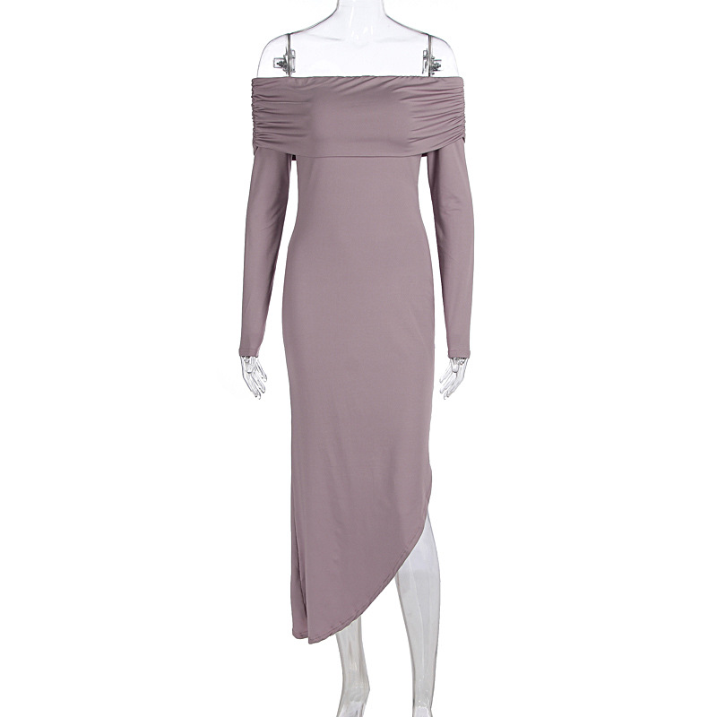 Autumn Winter Off-Shoulder Asymmetric Slim Dress