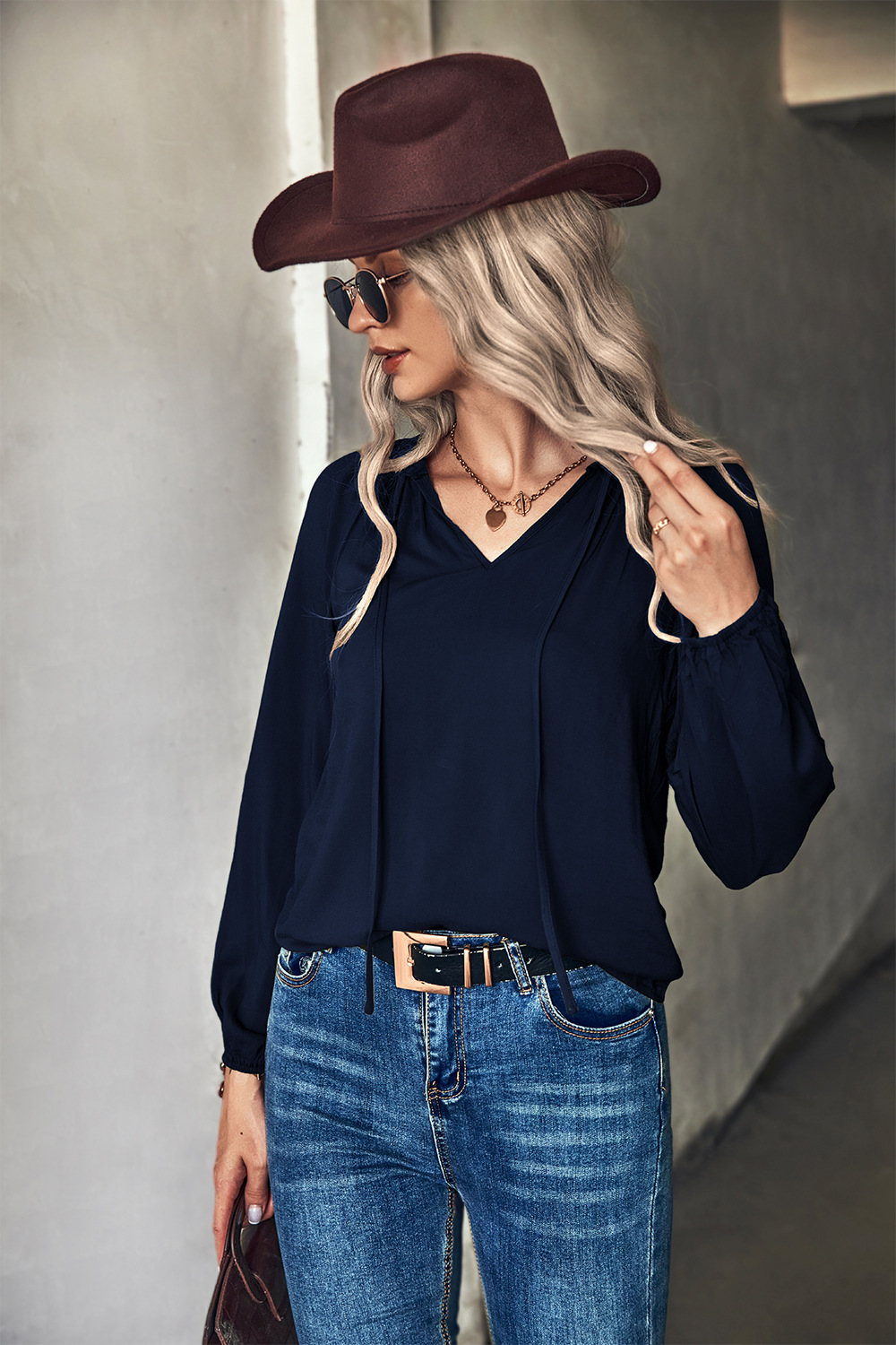 Autumn Winter Solid Color V neck Long Sleeve Top