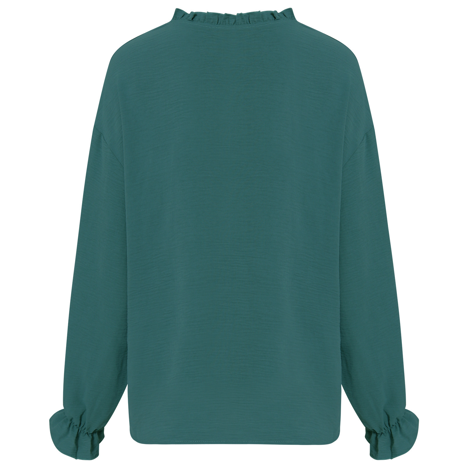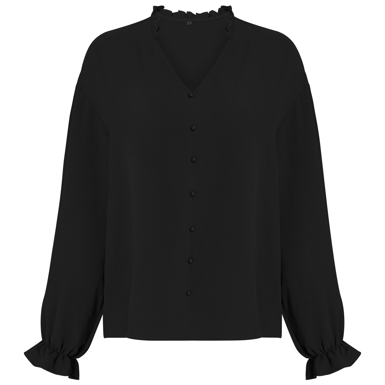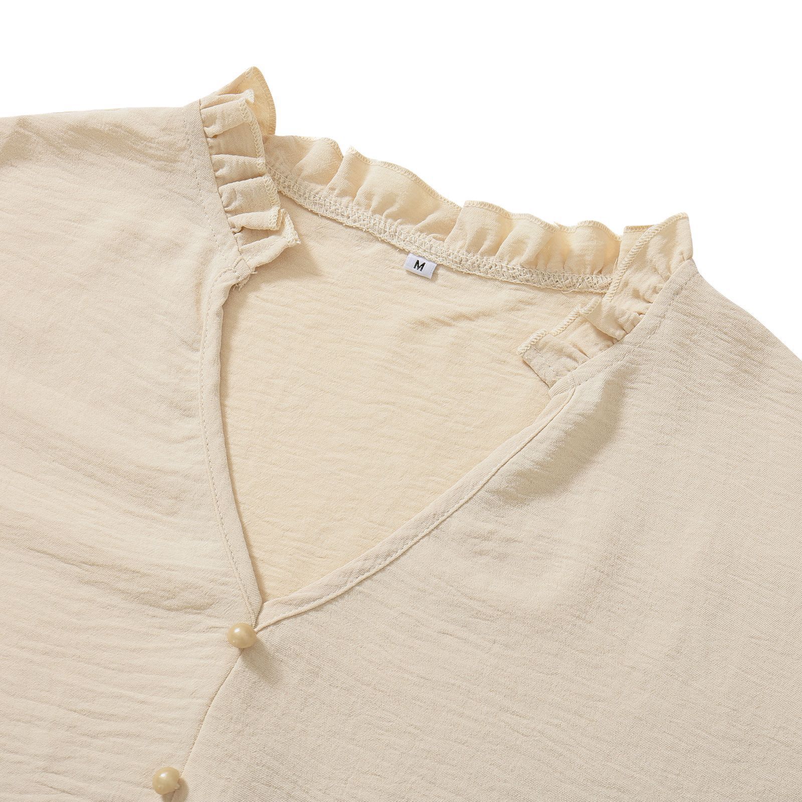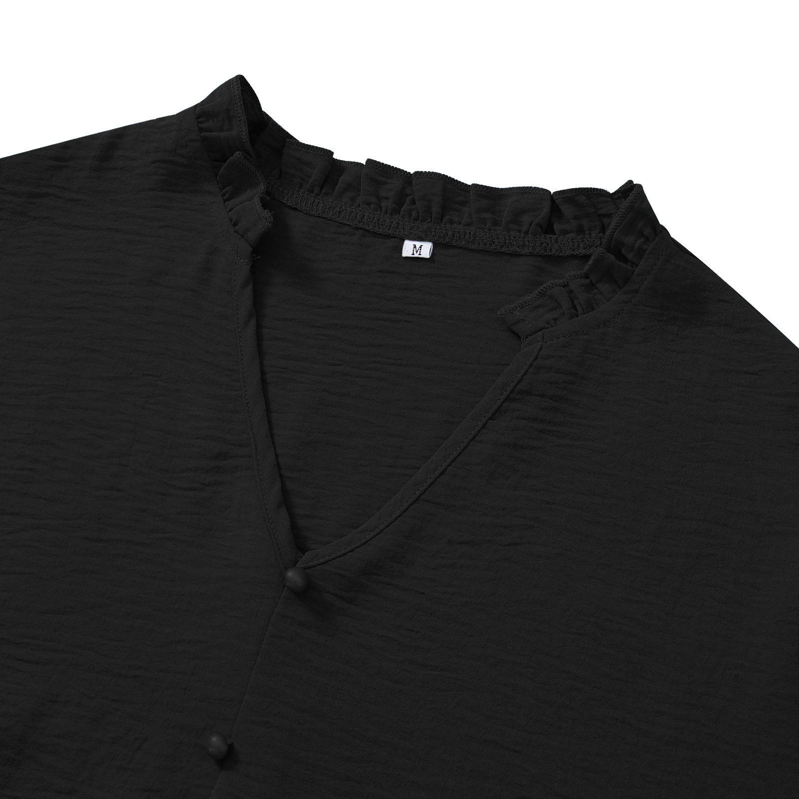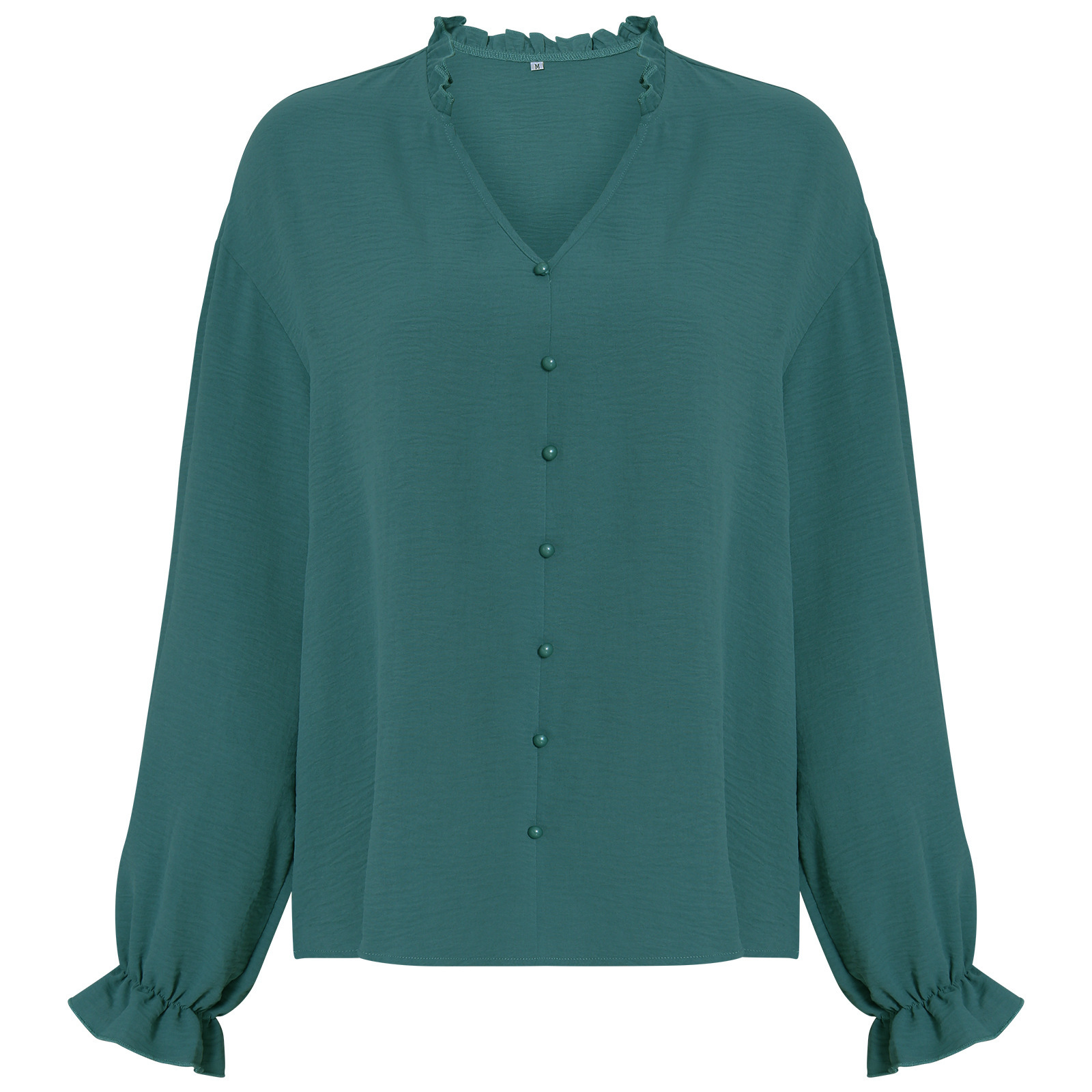 Be the first to review “Autumn Winter V-neck Top Women Fastener Decoration Solid Color Shirt”