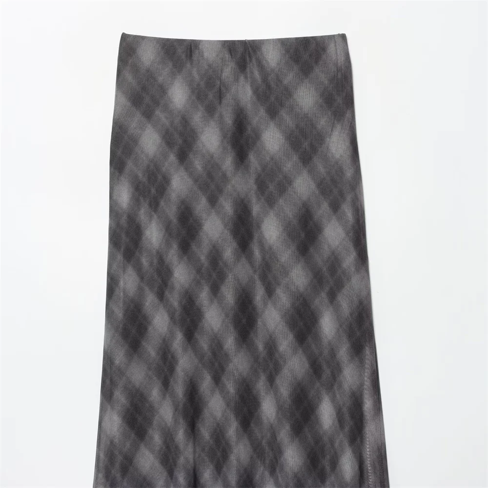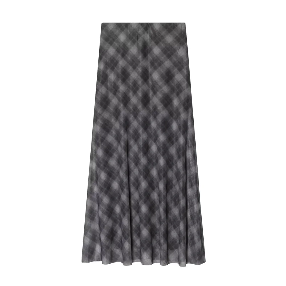 Autumn Women’s Elastic Waist Plaid Maxi Skirt