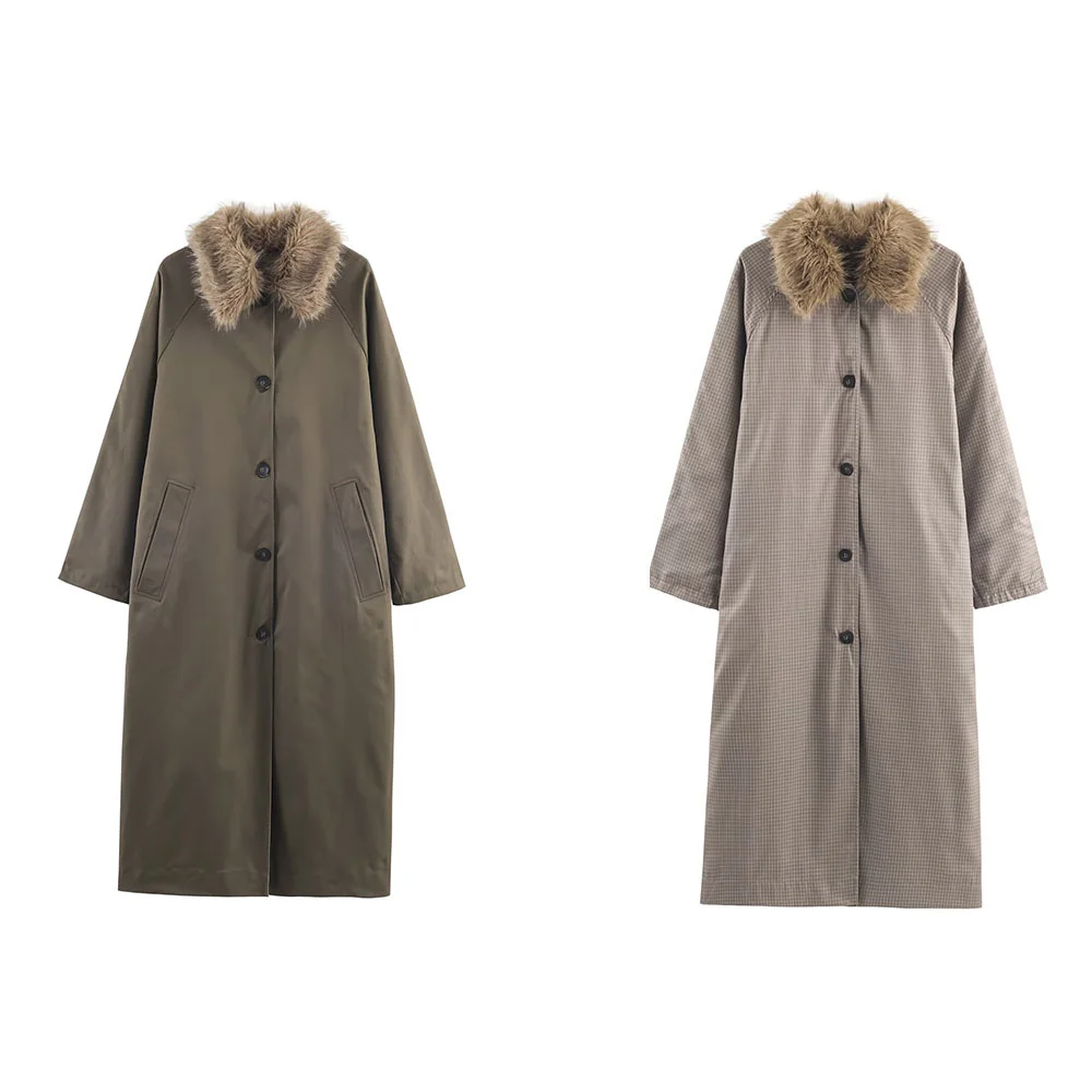 Autumn Women’s Faux Fur Collar Reversible Windbreaker