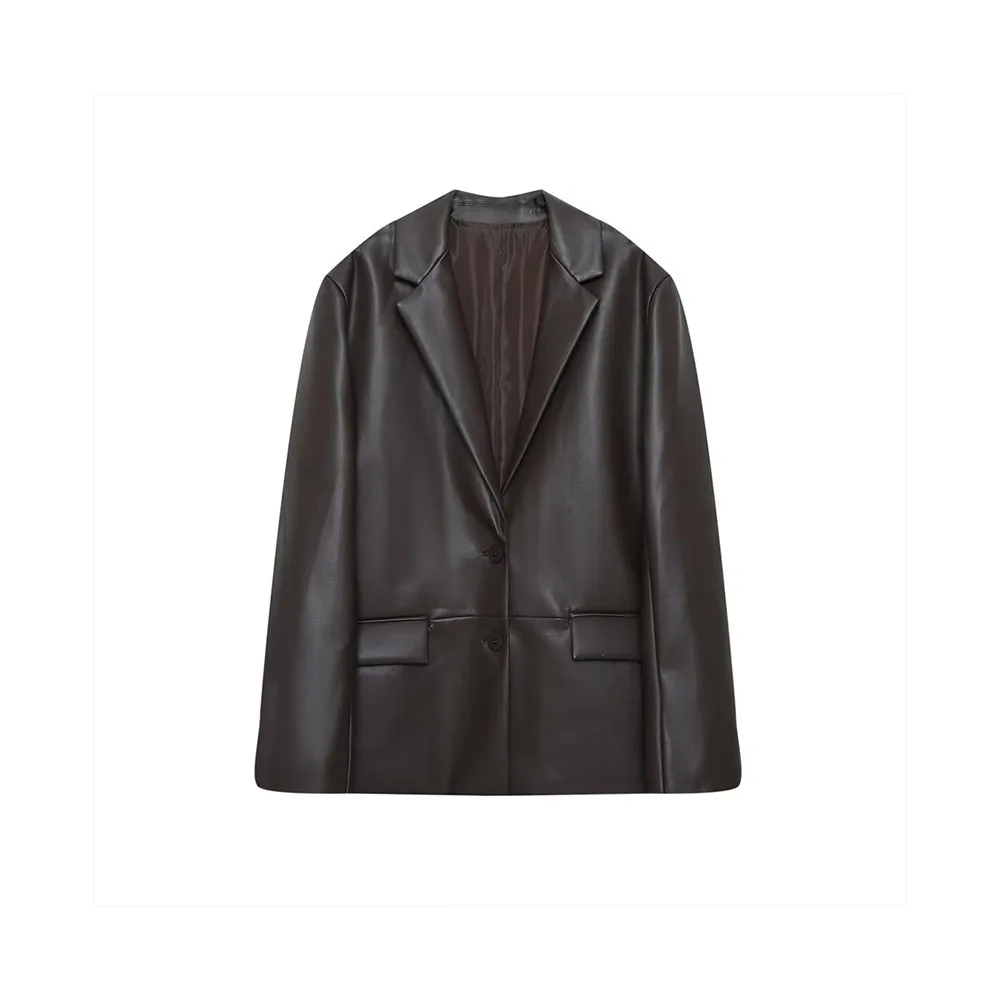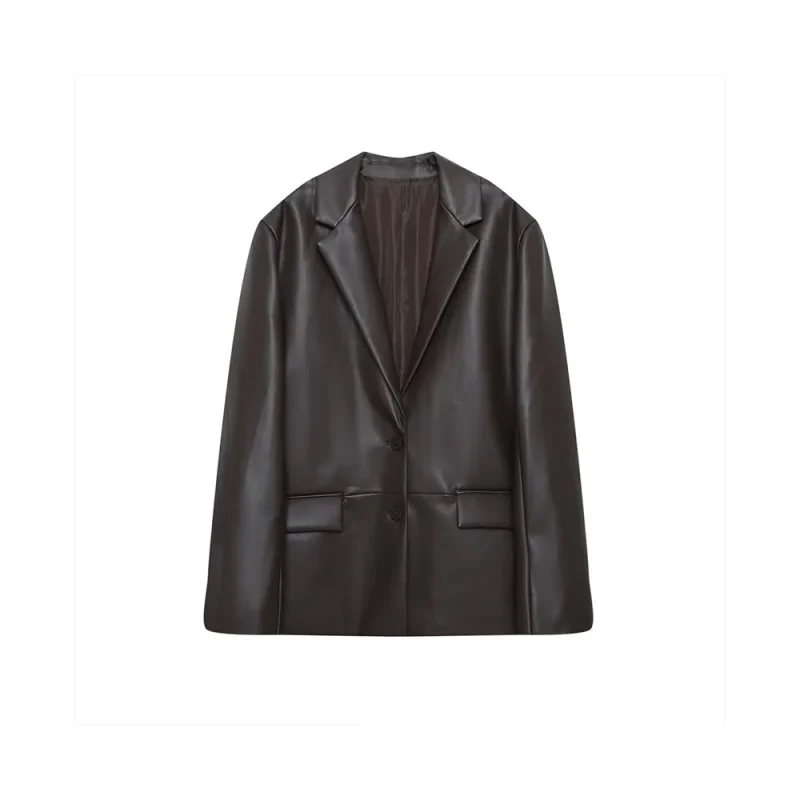 Autumn Women’s Leather-Effect Straight Casual Jacket