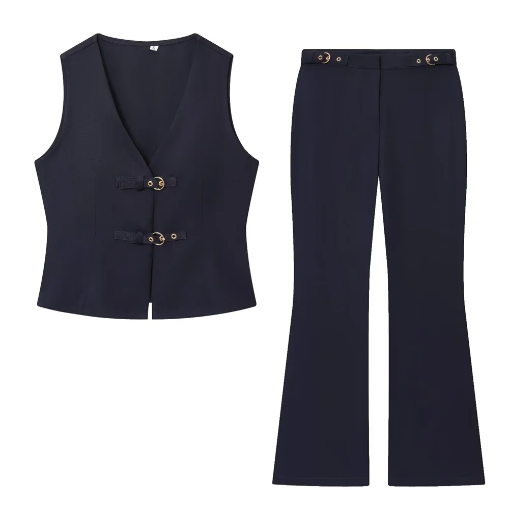 Autumn Women’s V-Neck Vest & Flared Pants Set
