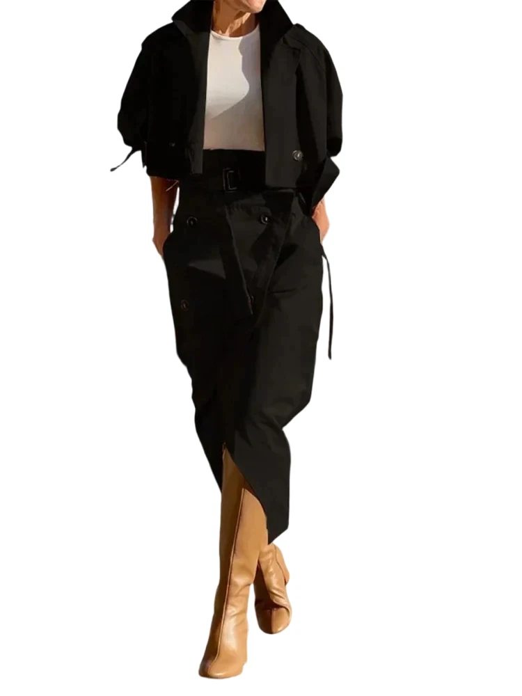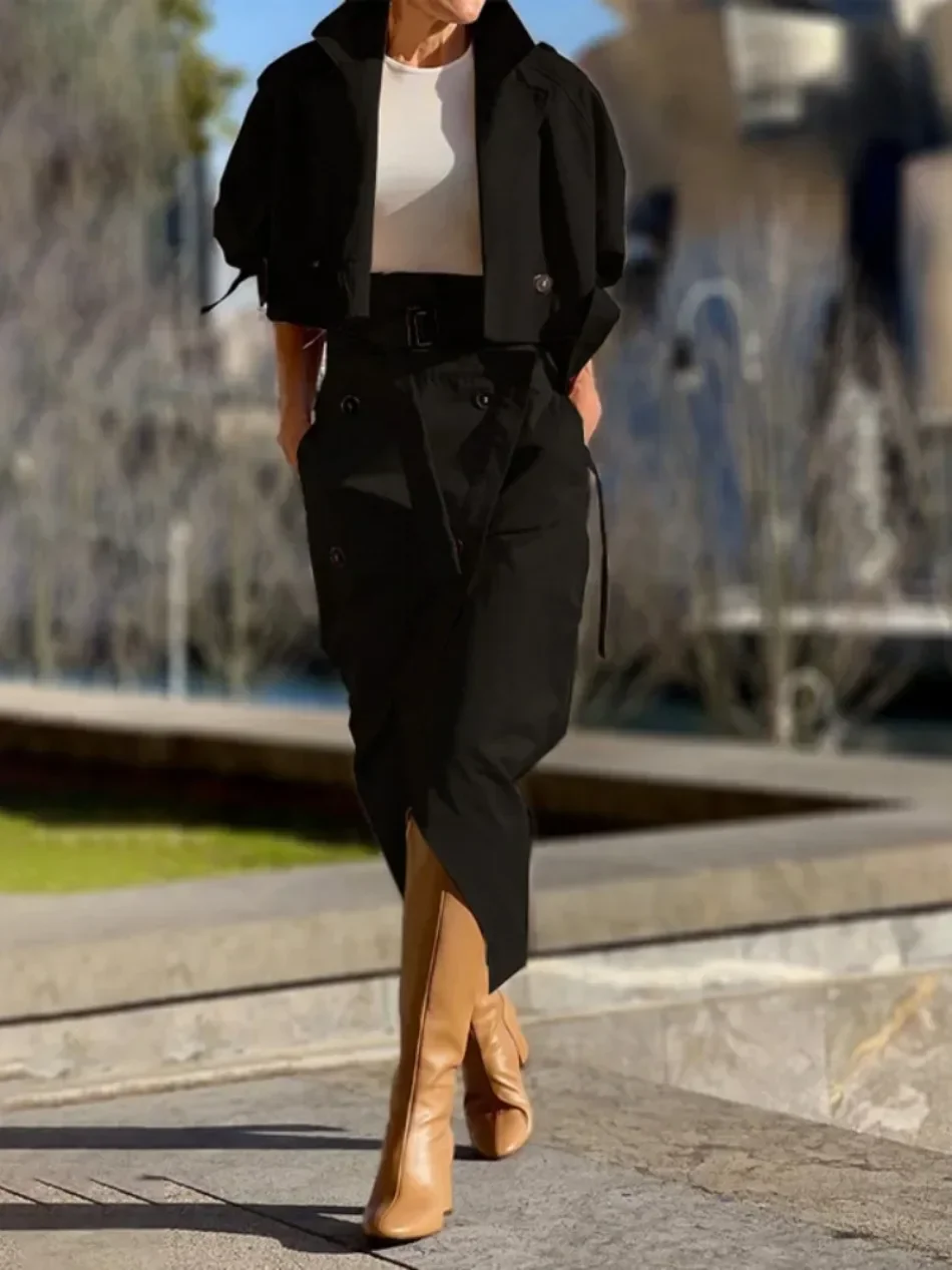 Autumn Workwear Style Belted Skirt Set